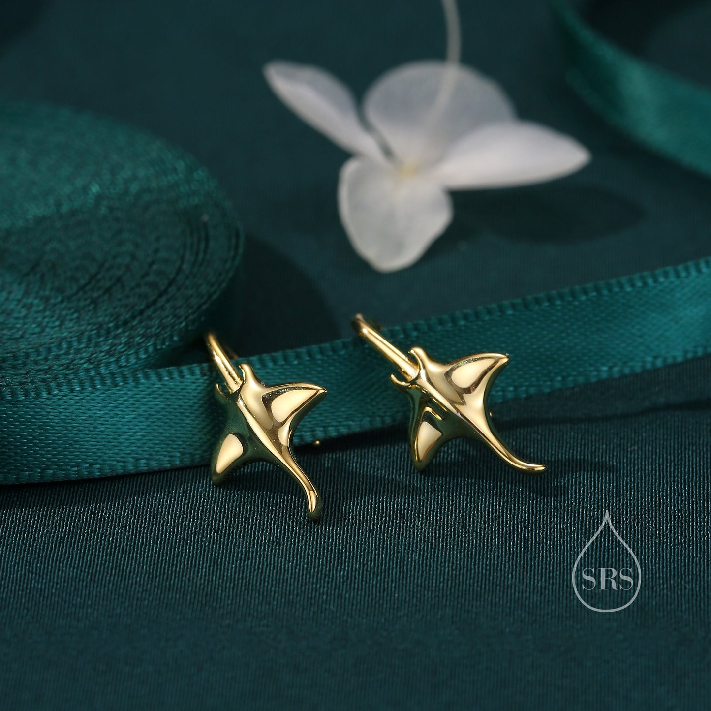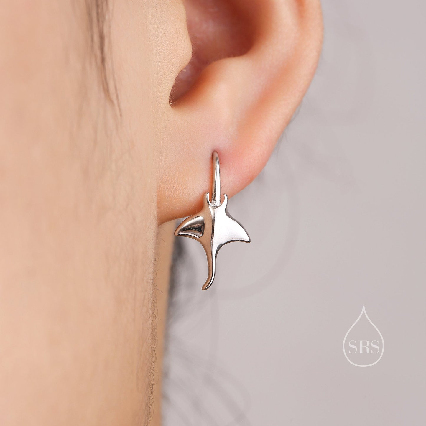 Sterling Silver Manta Ray Fish Drop Hook Earrings, Stingray Dangle Hoop Earrings, Dainty Fish Dangle Earrings