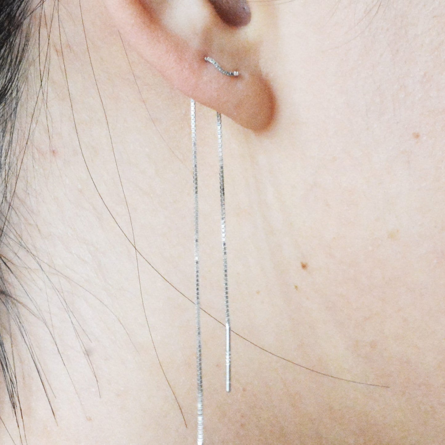 Sterling Silver Minimalist Long Ear Threader - Double Ear Threader - Ear Wire C38