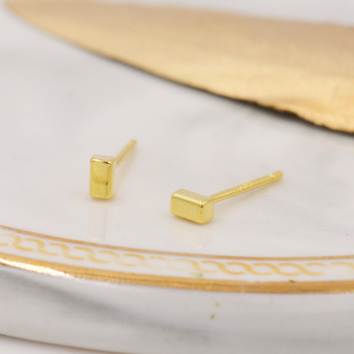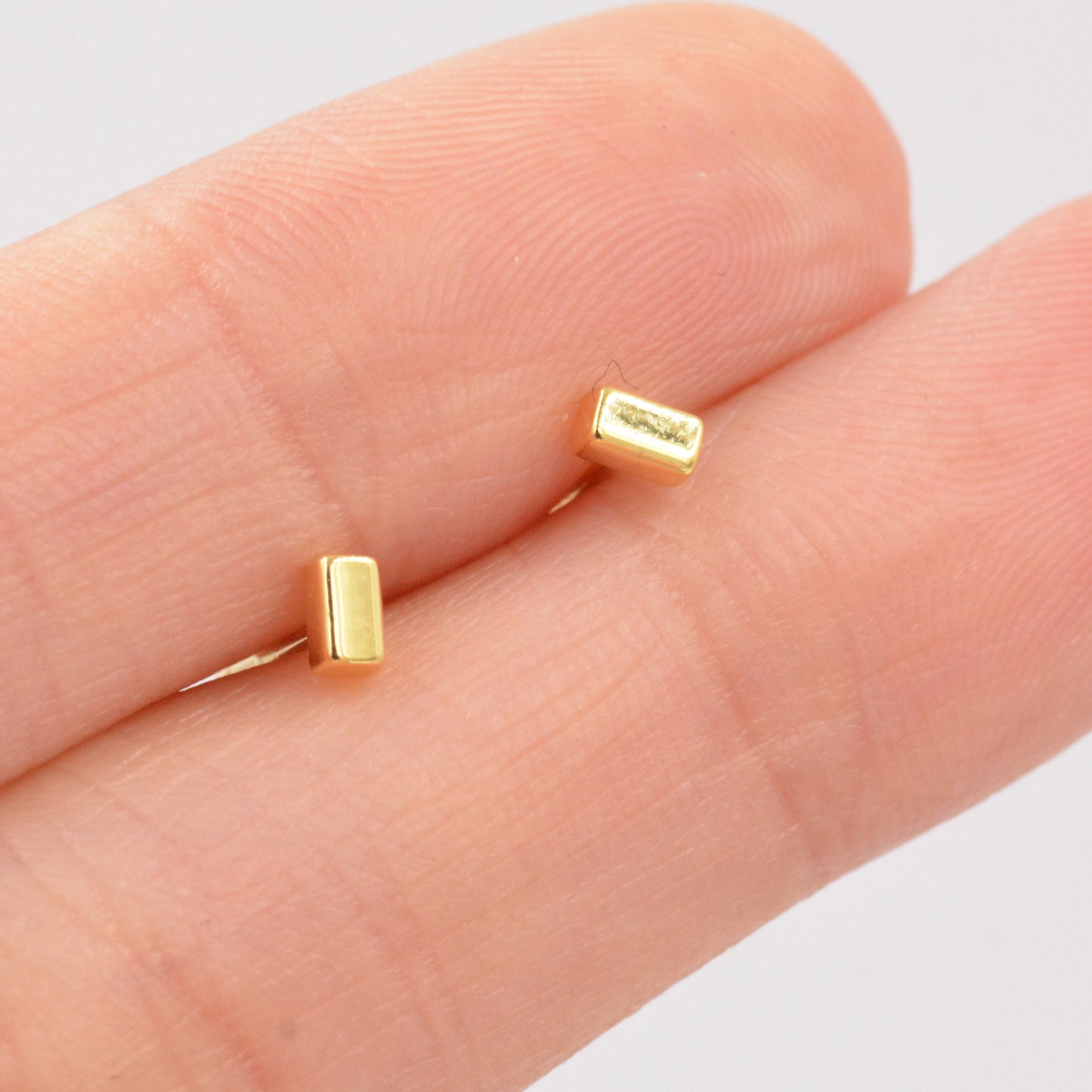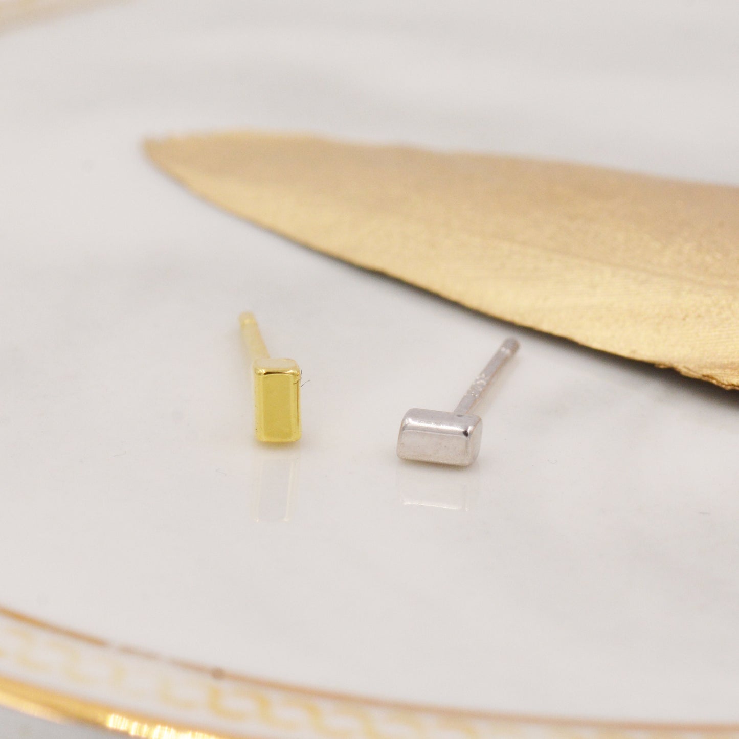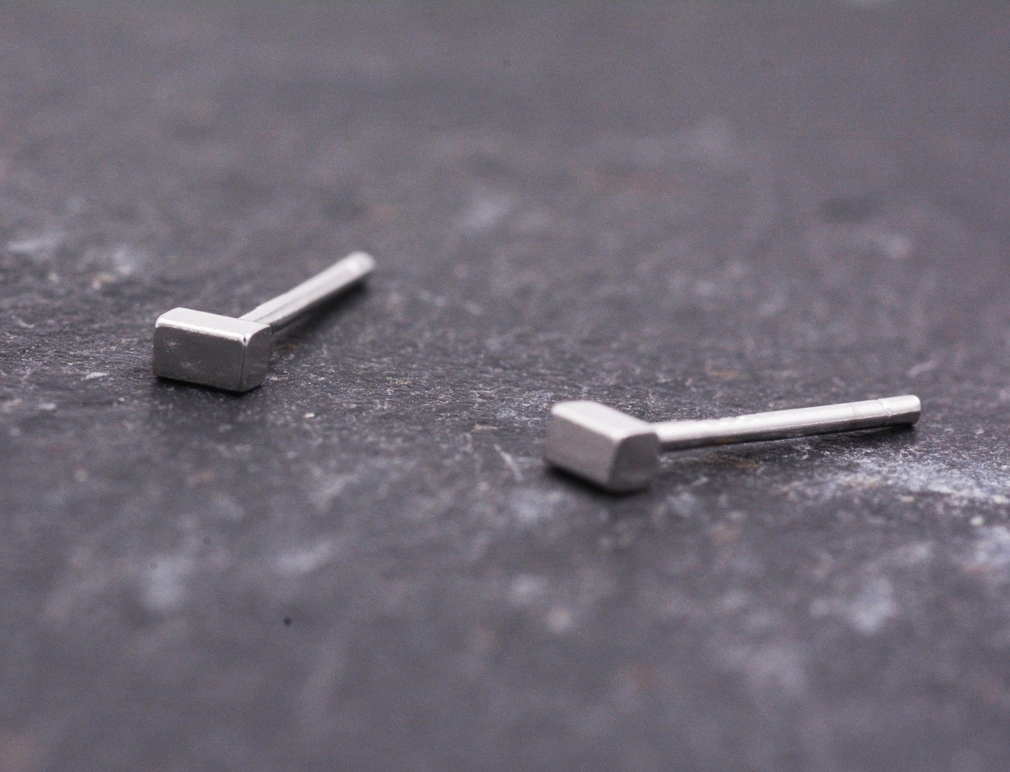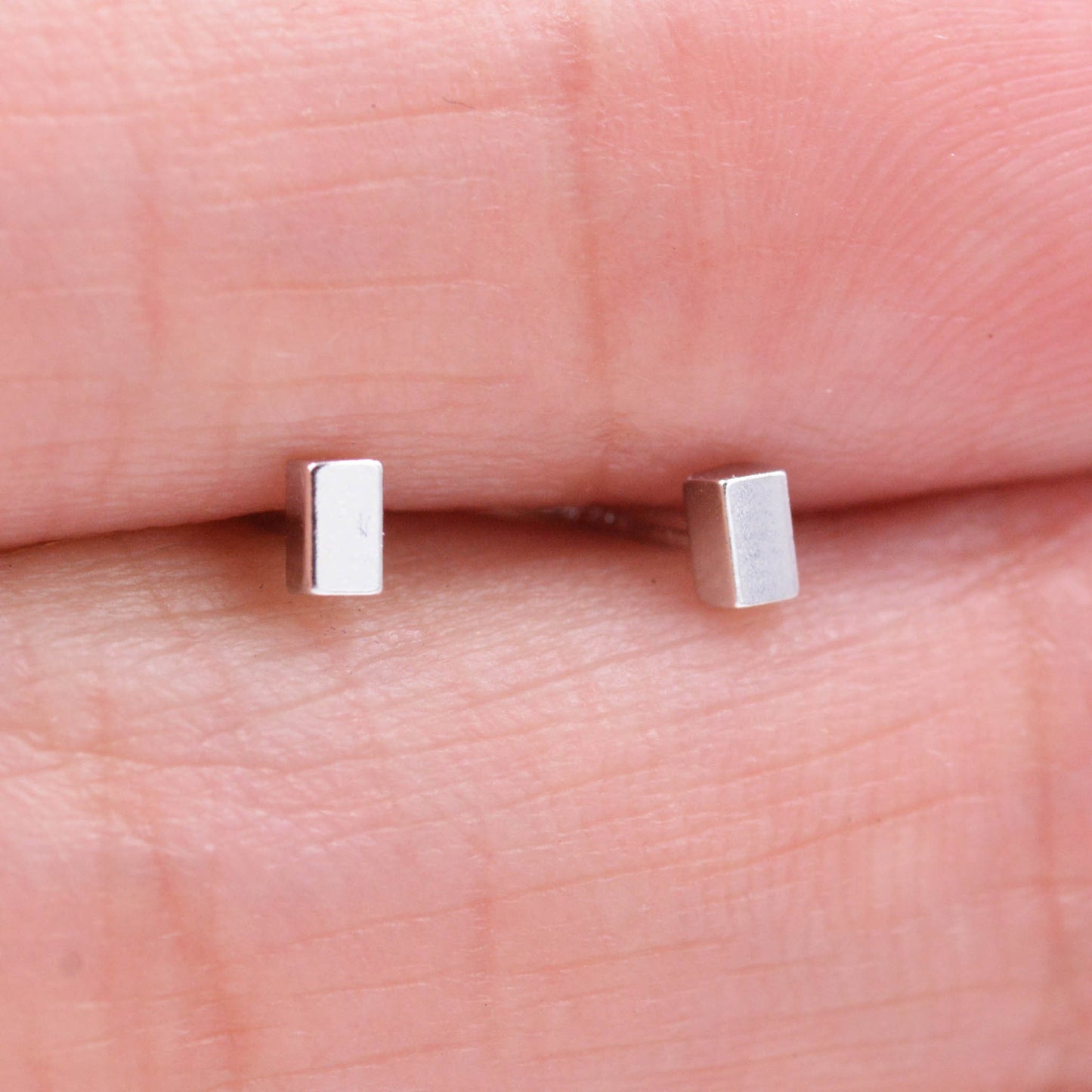 Sterling Silver Minimalist Tiny Short Bar Cube Square Geometric Stud Earrings, Dainty and Delicate, Classic and Elegant Jewellery