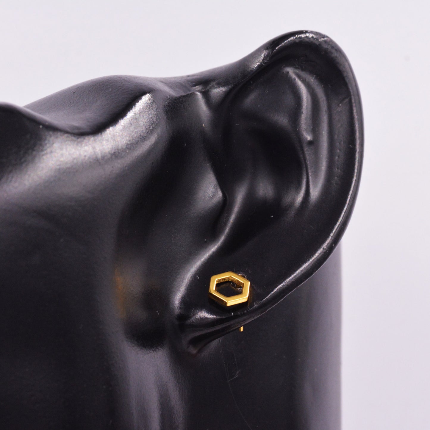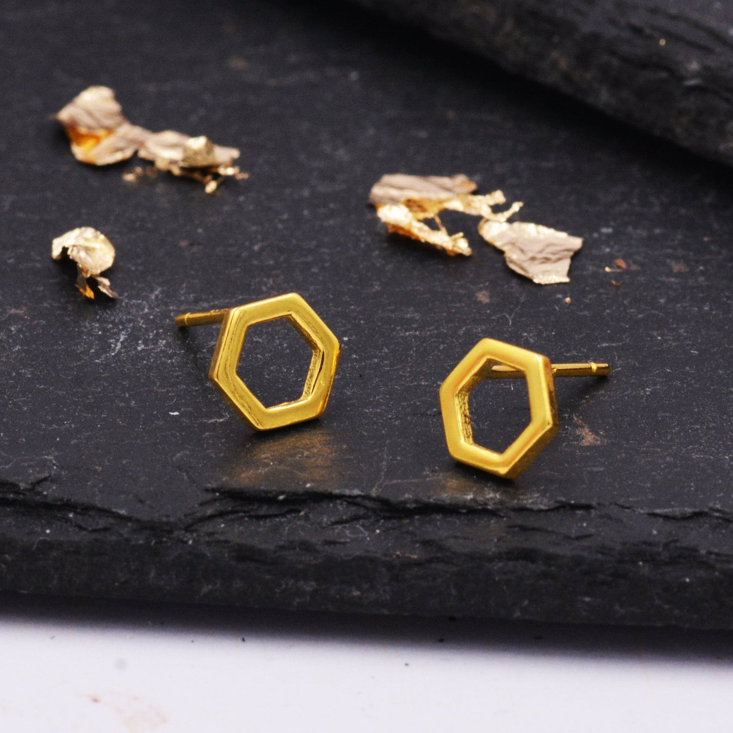 Sterling Silver Open Hexagon Stud Earrings, Silver, Gold and Rose Gold Finish Minimalist and Geometric Design.