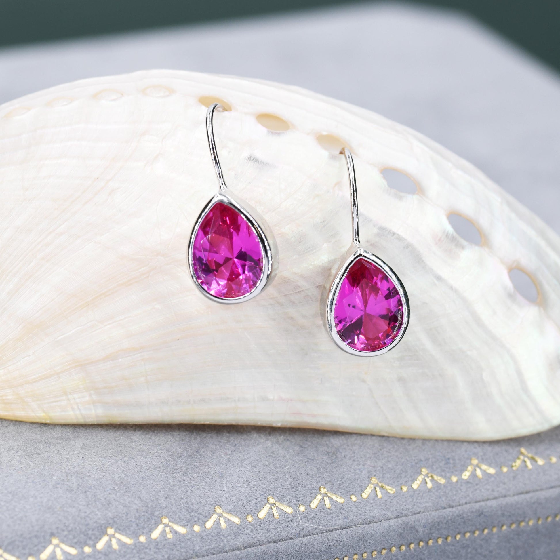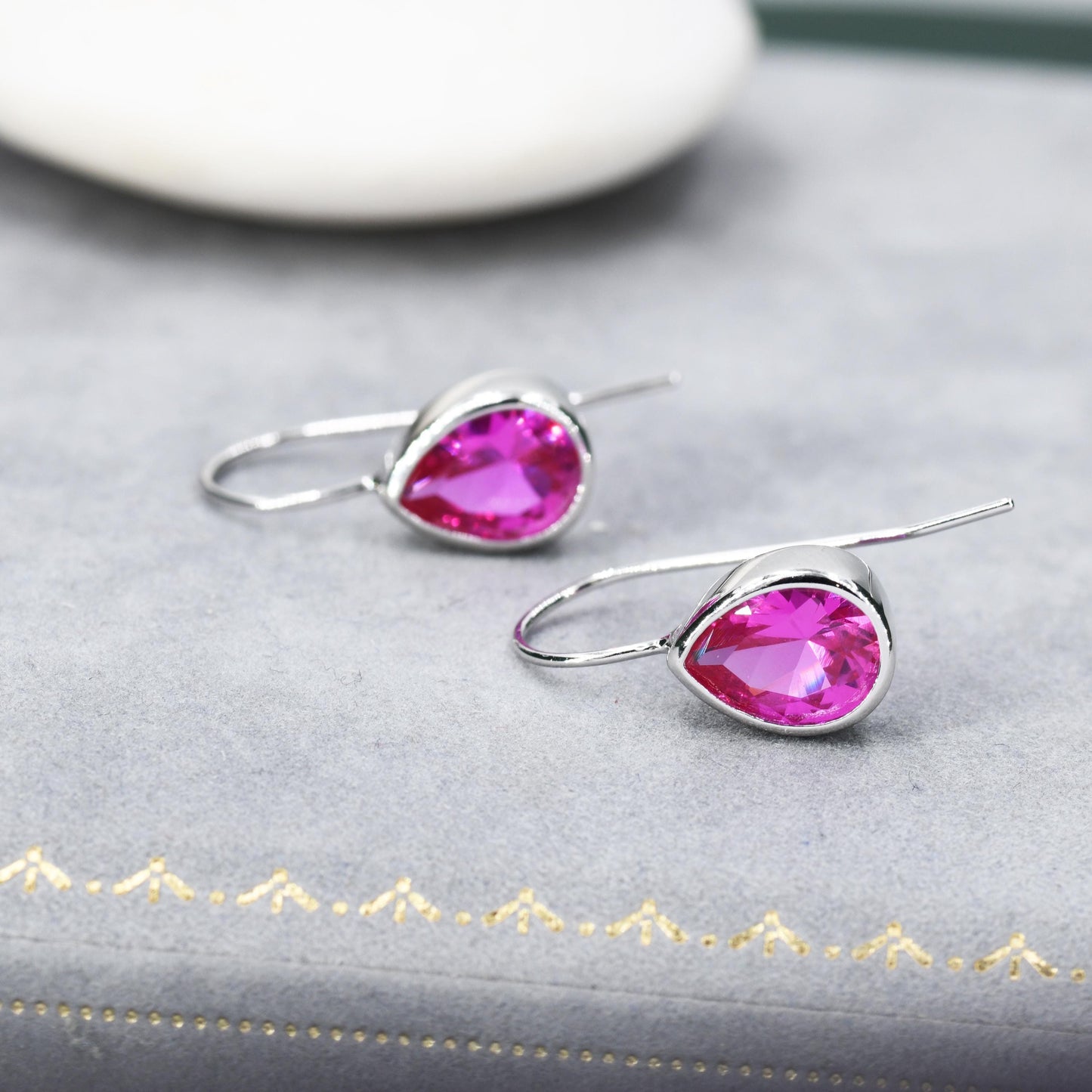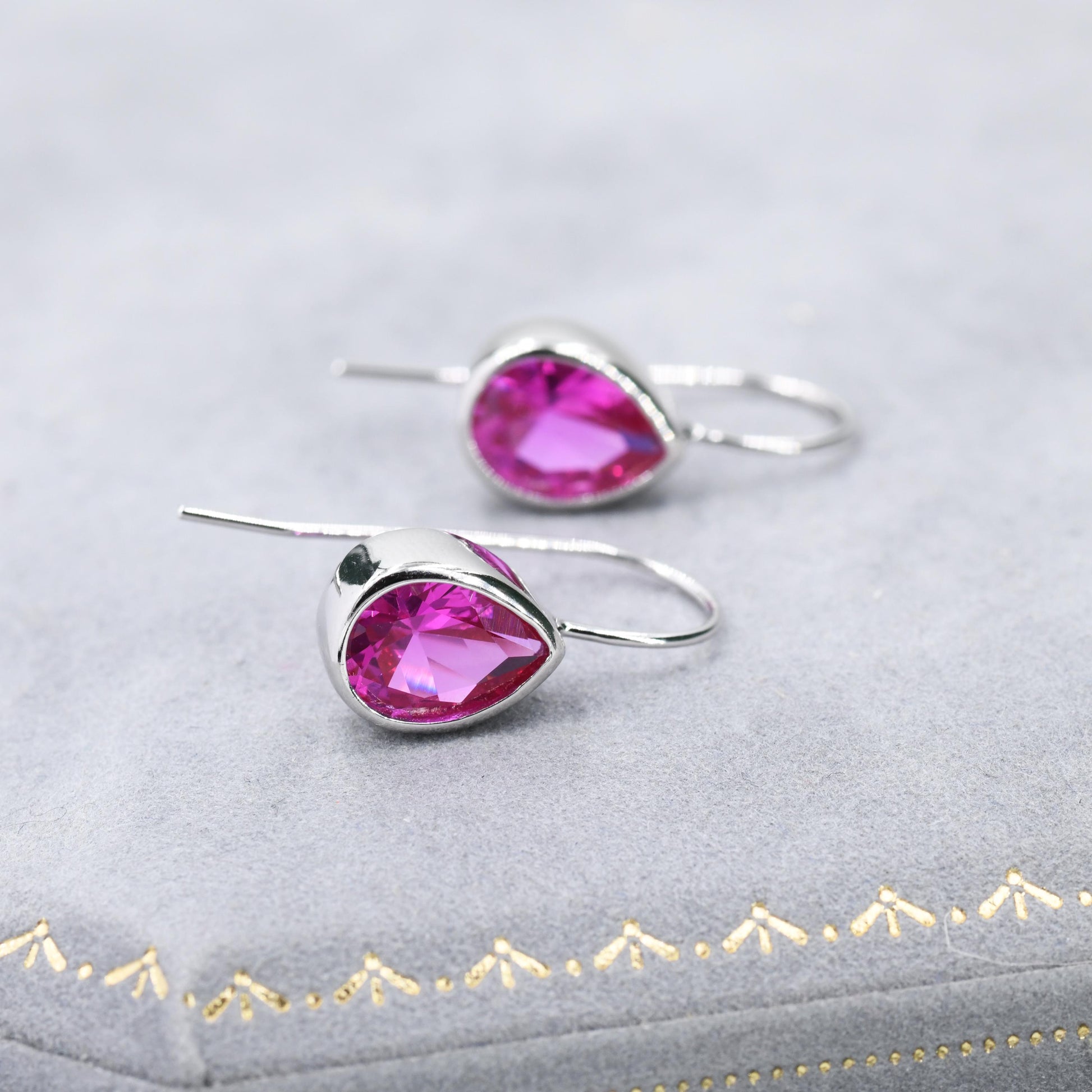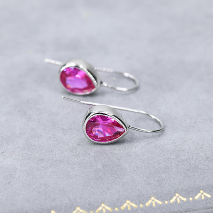 Sterling Silver Pink Droplet Drop Earrings in Sterling Silver, Silver or Gold Finish, Chunky Pear Shape Hook Earrings