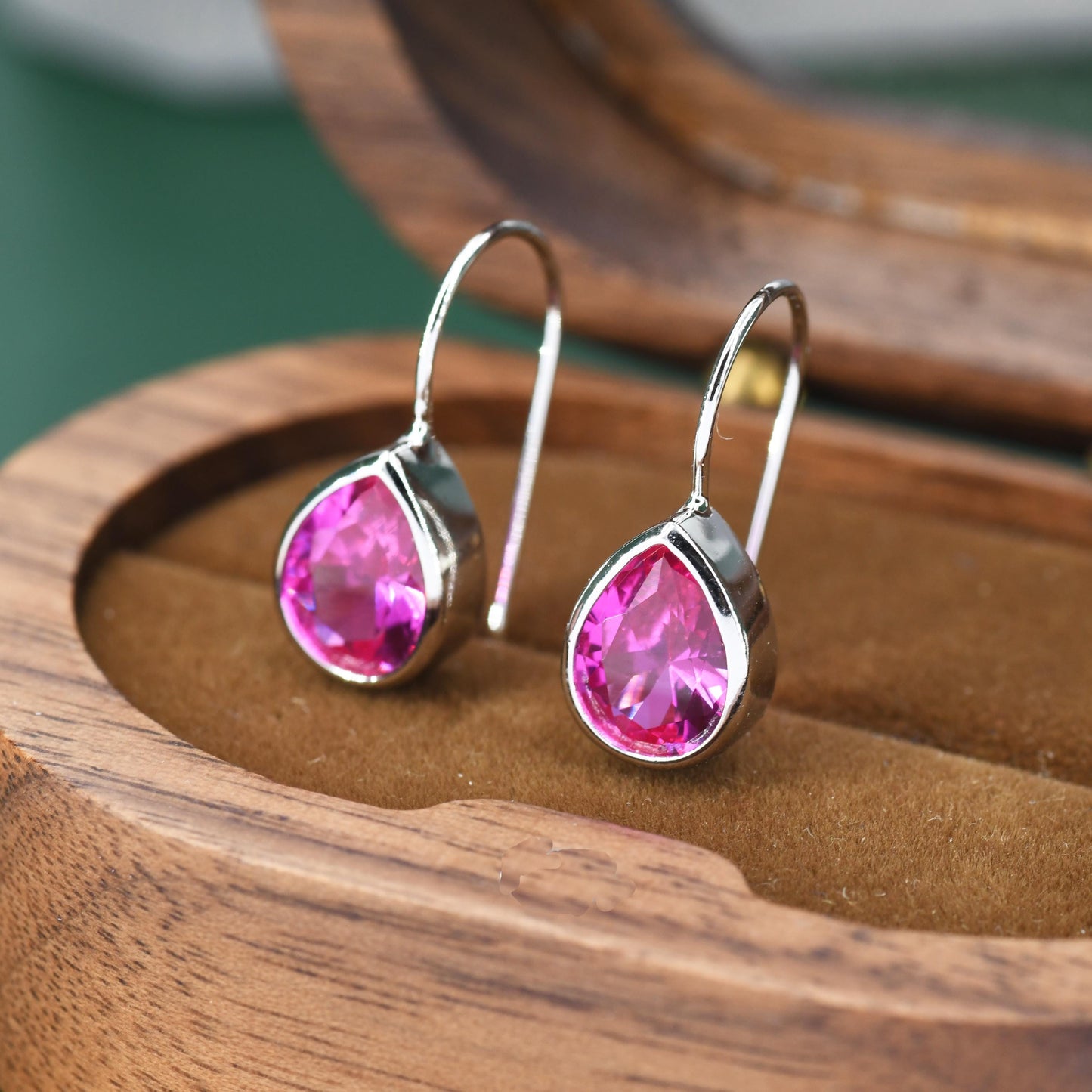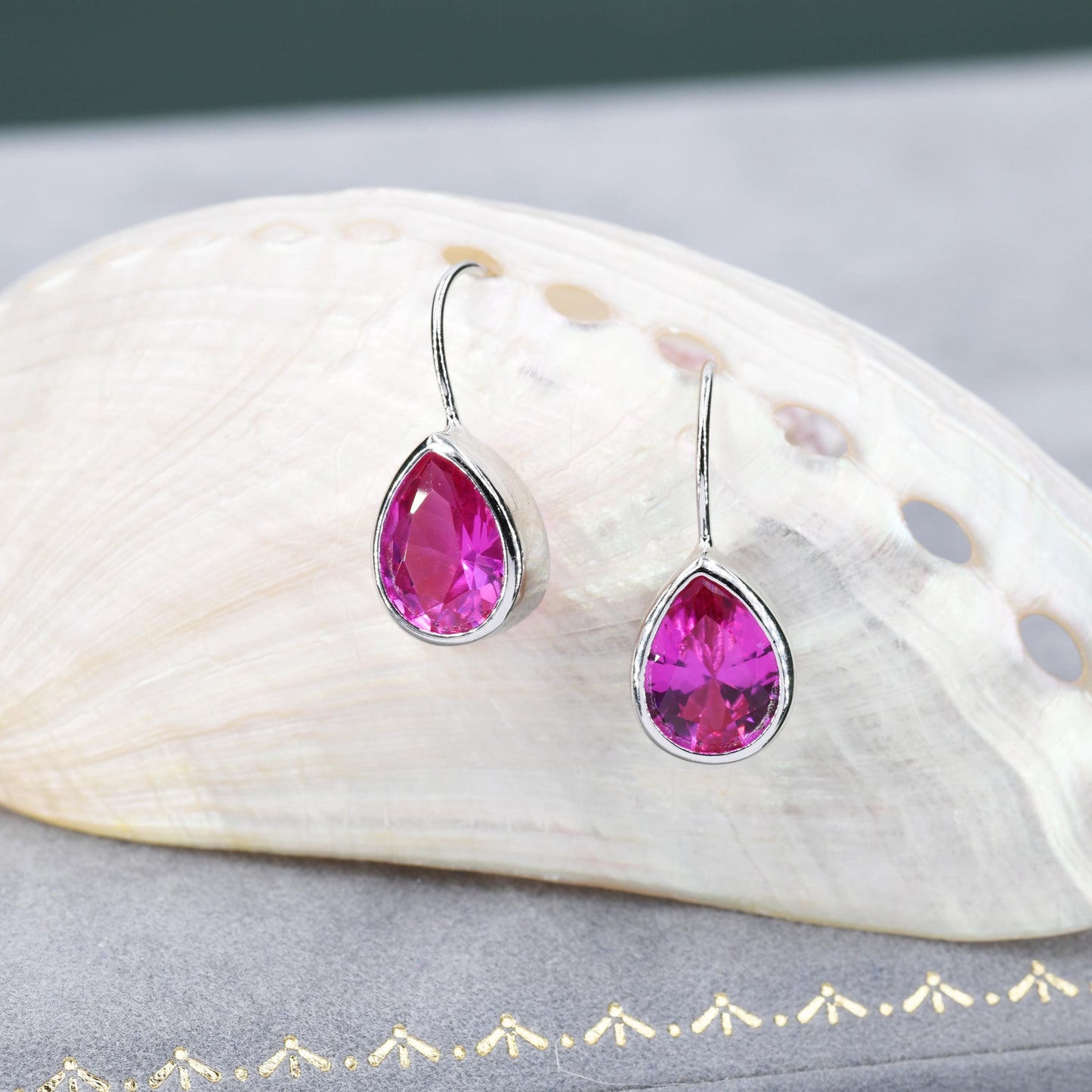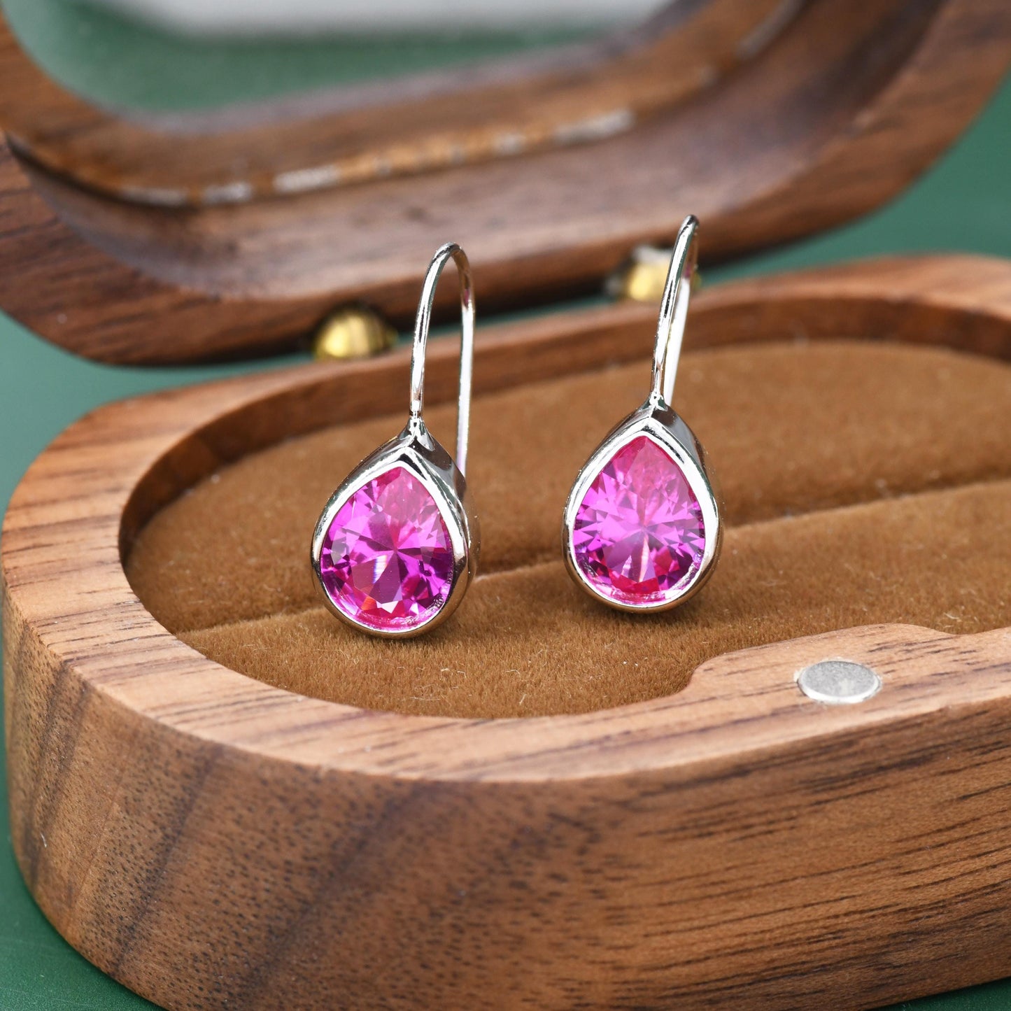 Sterling Silver Pink Droplet Drop Earrings in Sterling Silver, Silver or Gold Finish, Chunky Pear Shape Hook Earrings