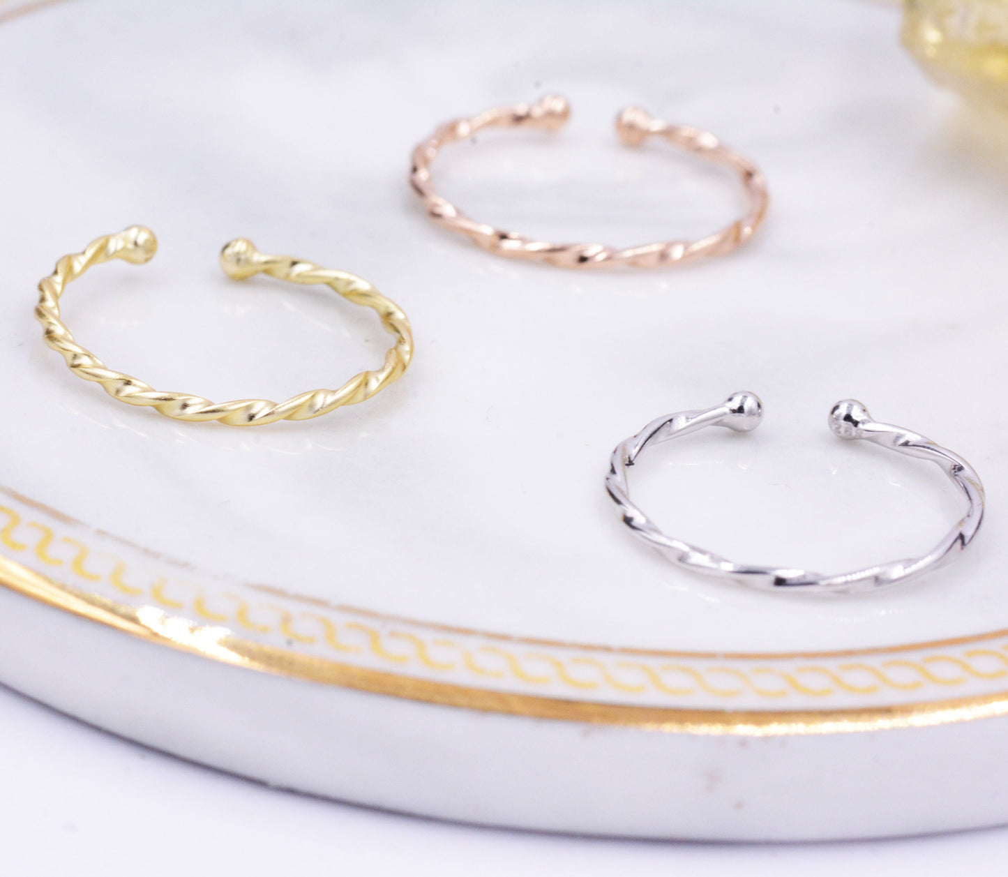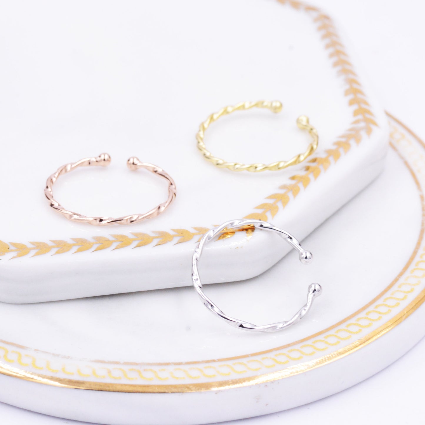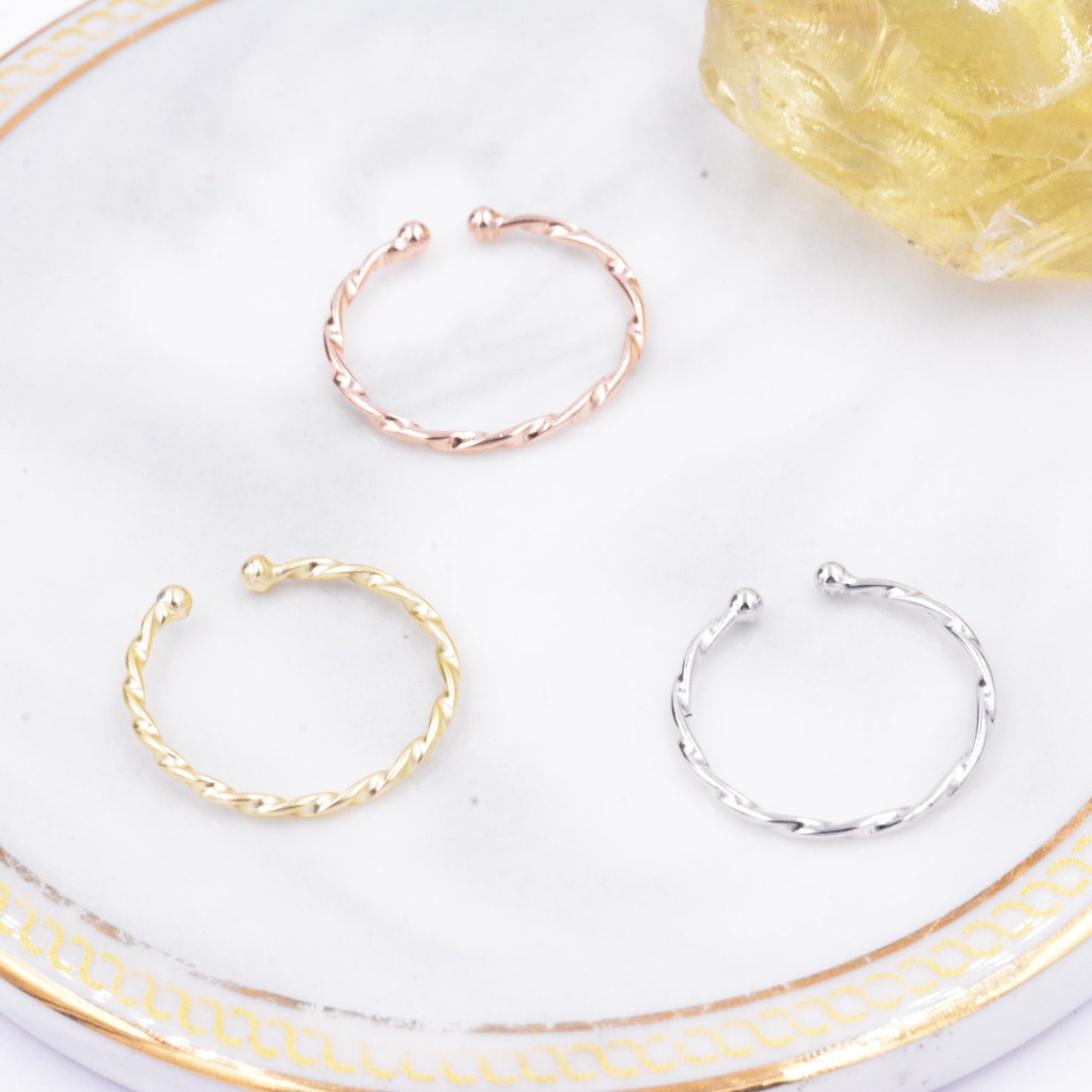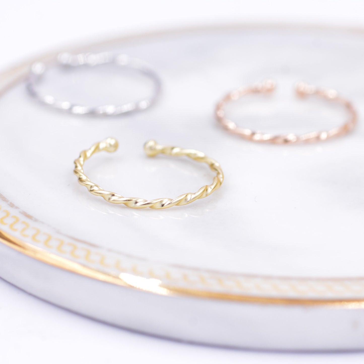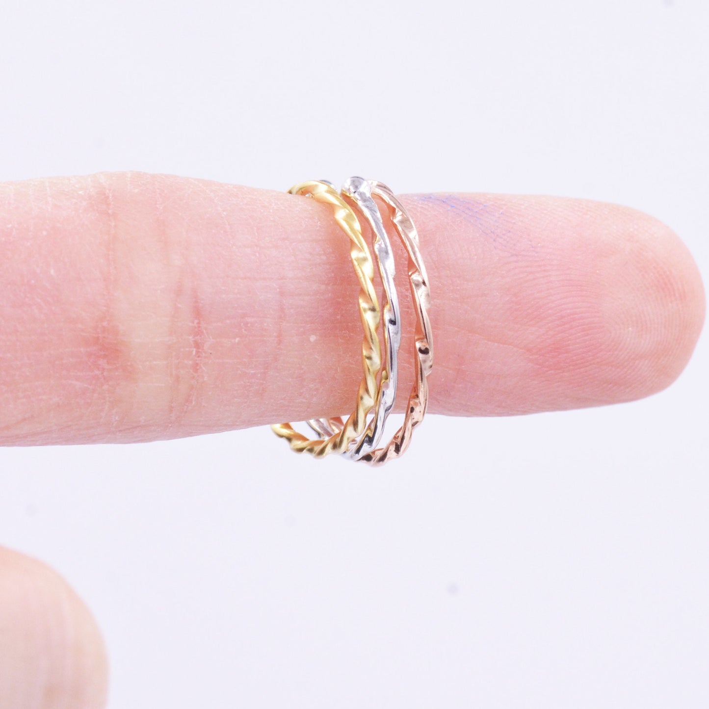 Sterling Silver Skinny Minimalist Ripple Stacking Rings - Twisted Design - 9ct Gold Vermeil Finish