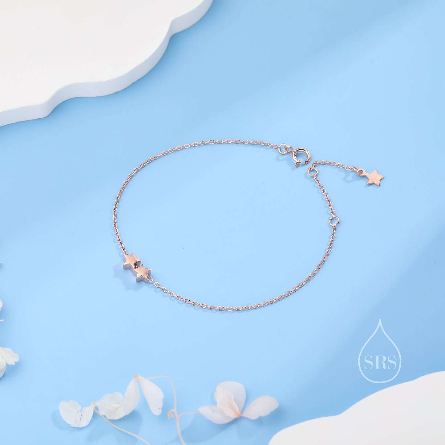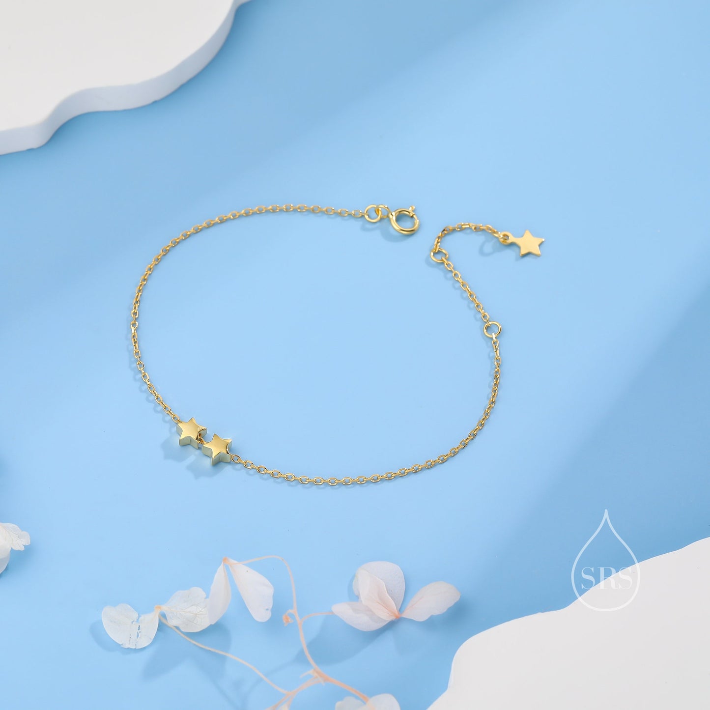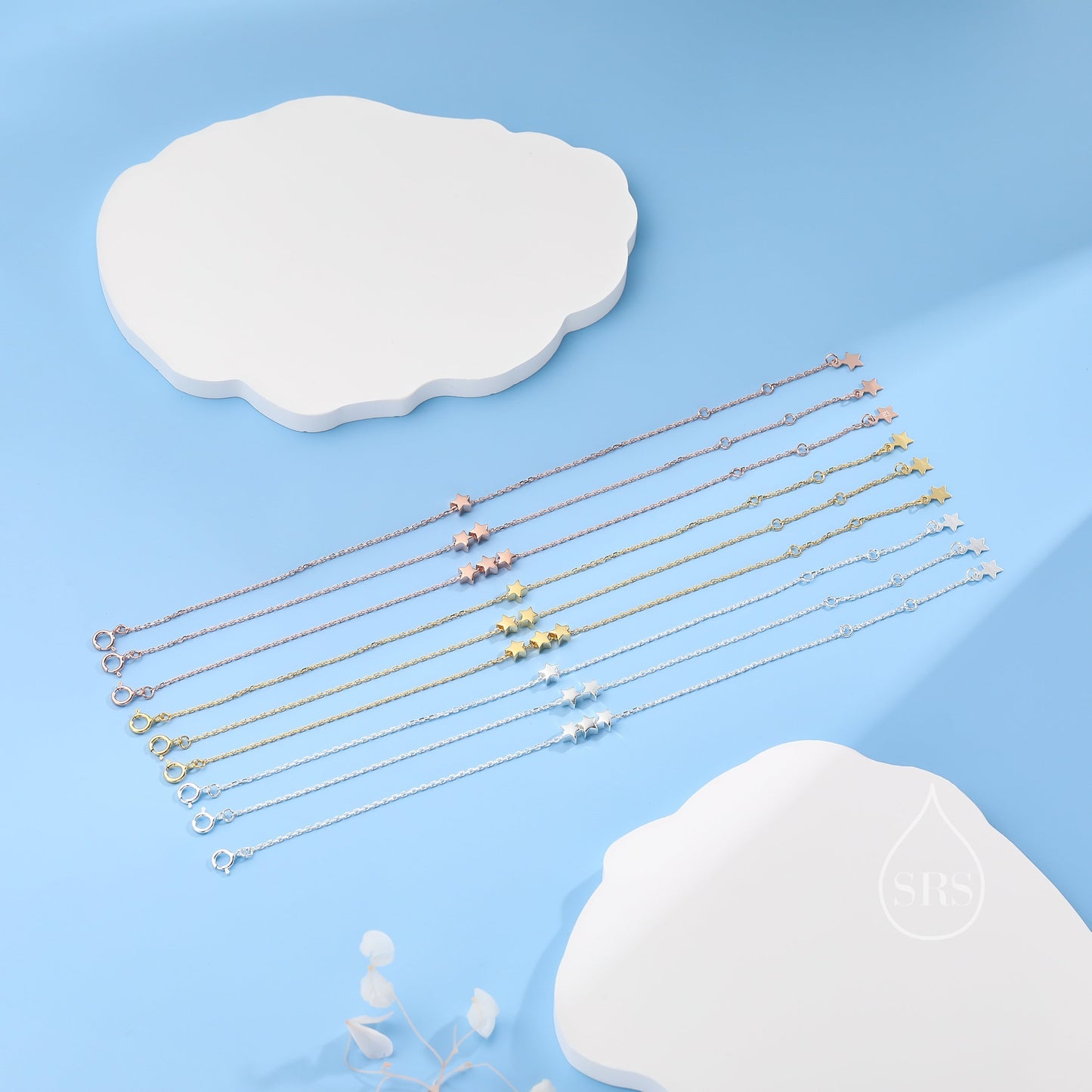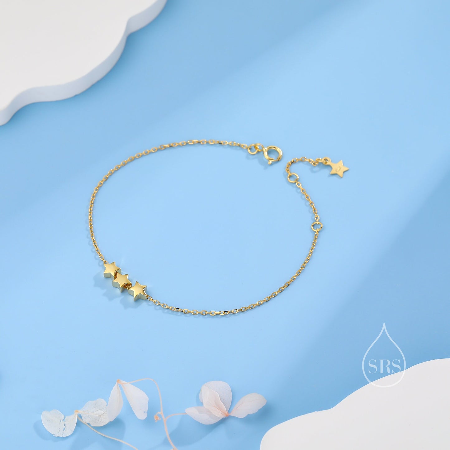 Sterling Silver Star Charm Bracelet, One Star, Two Stars or Three Stars, Silver or Gold or Rose Gold, Star Charm Bracelet, Celestial