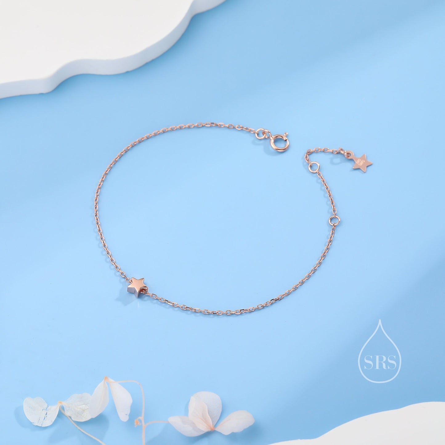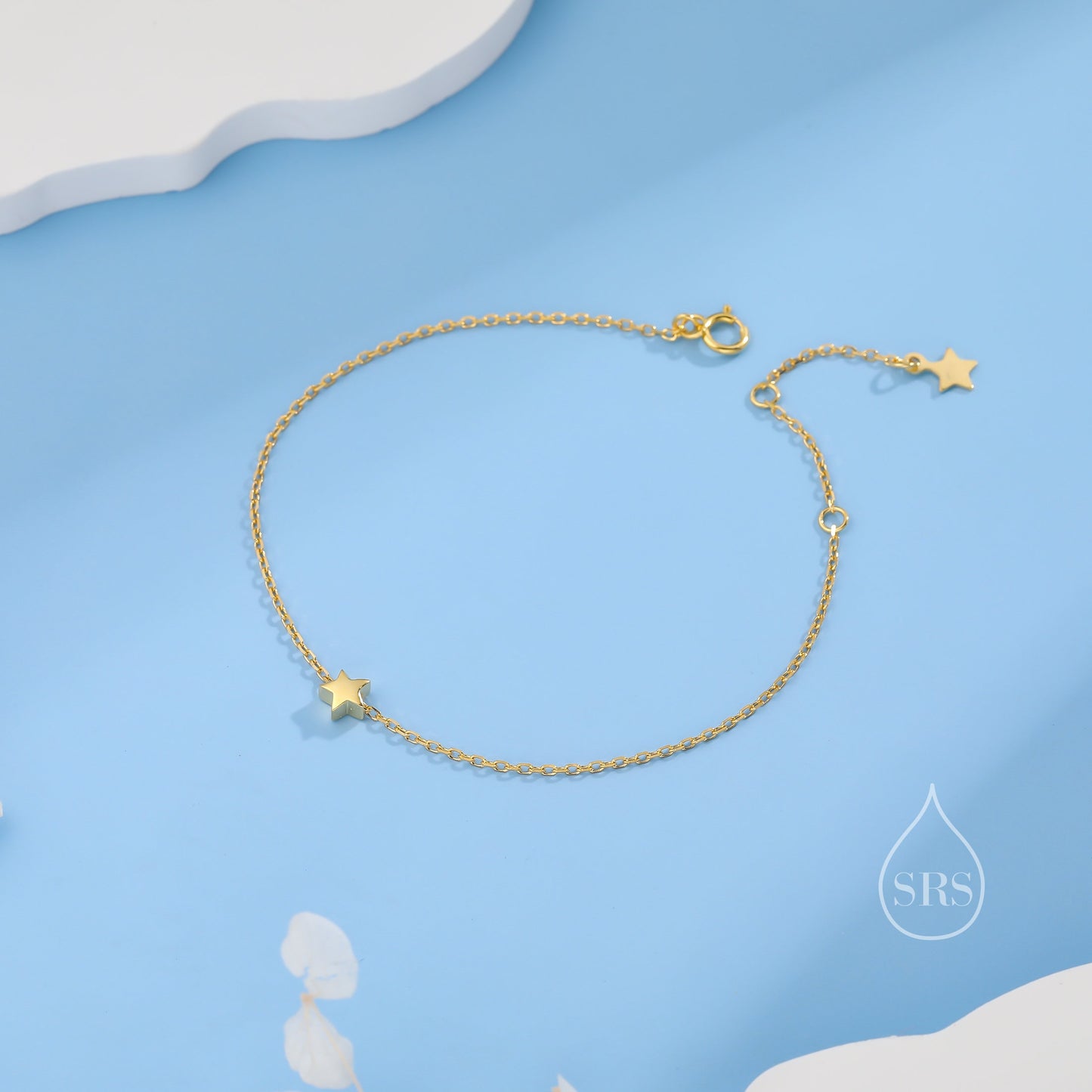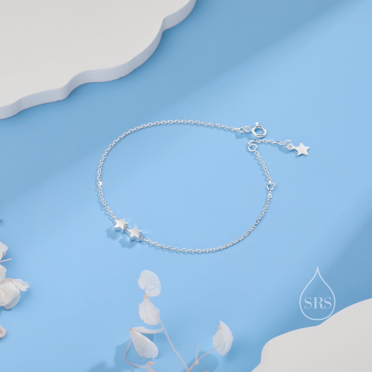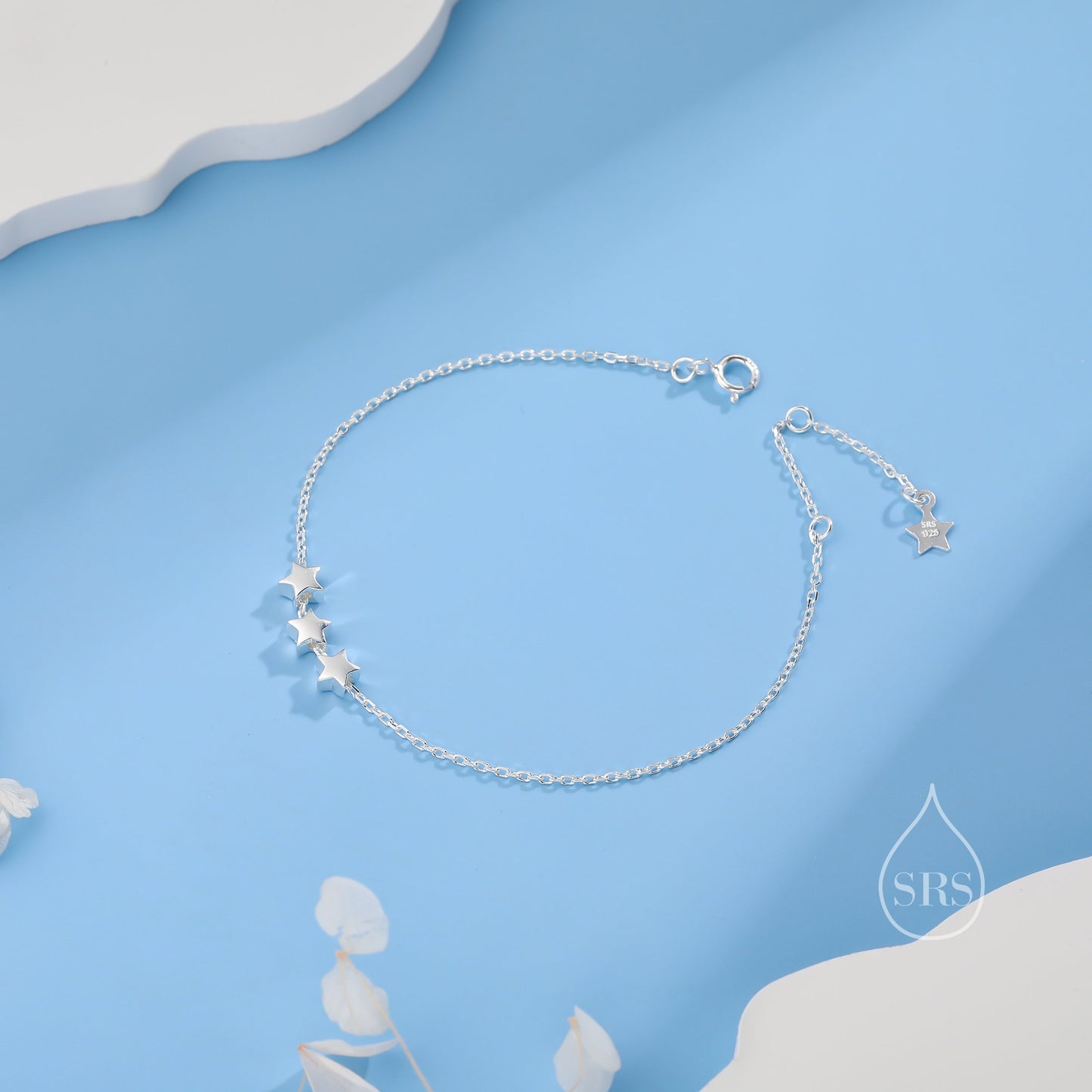 Sterling Silver Star Charm Bracelet, One Star, Two Stars or Three Stars, Silver or Gold or Rose Gold, Star Charm Bracelet, Celestial