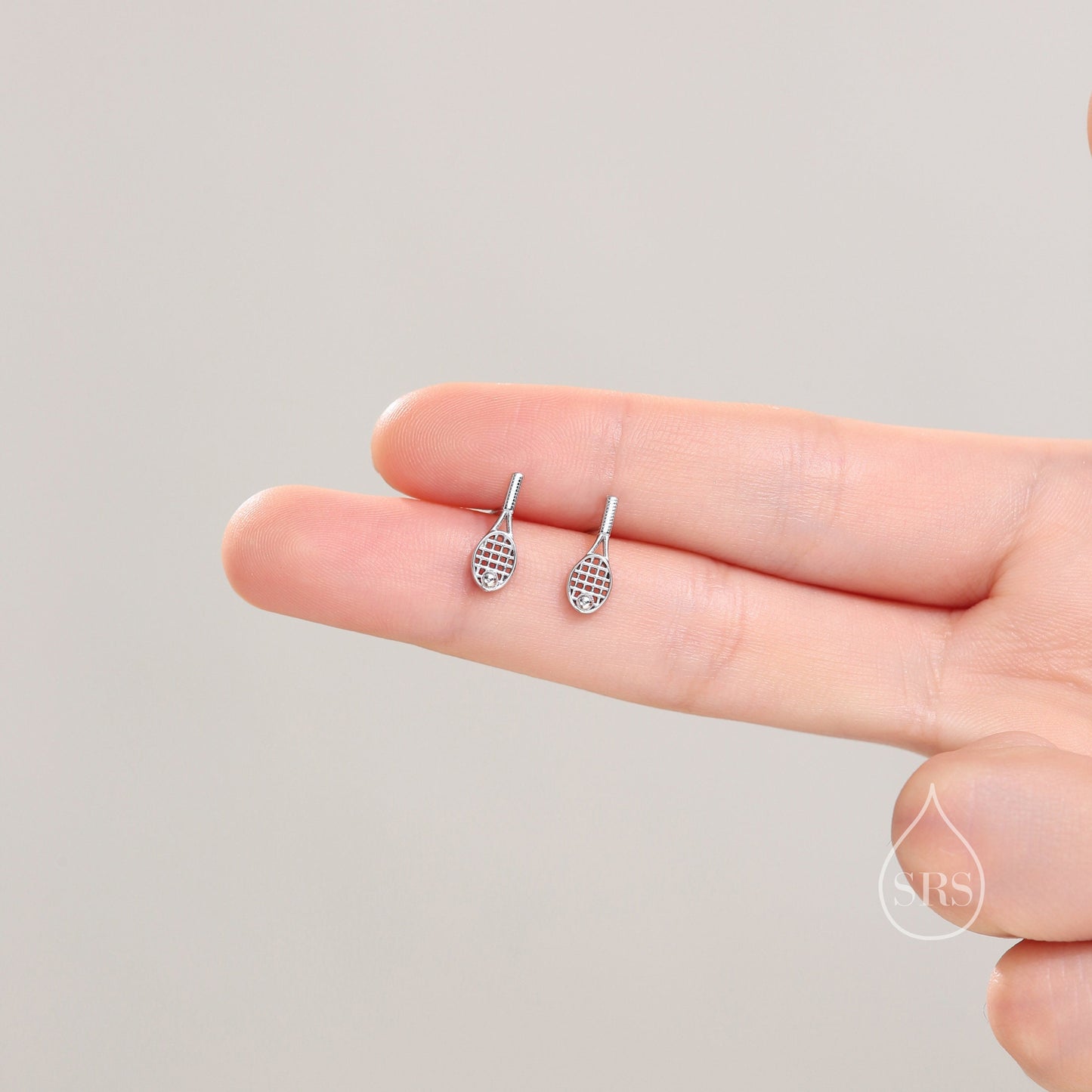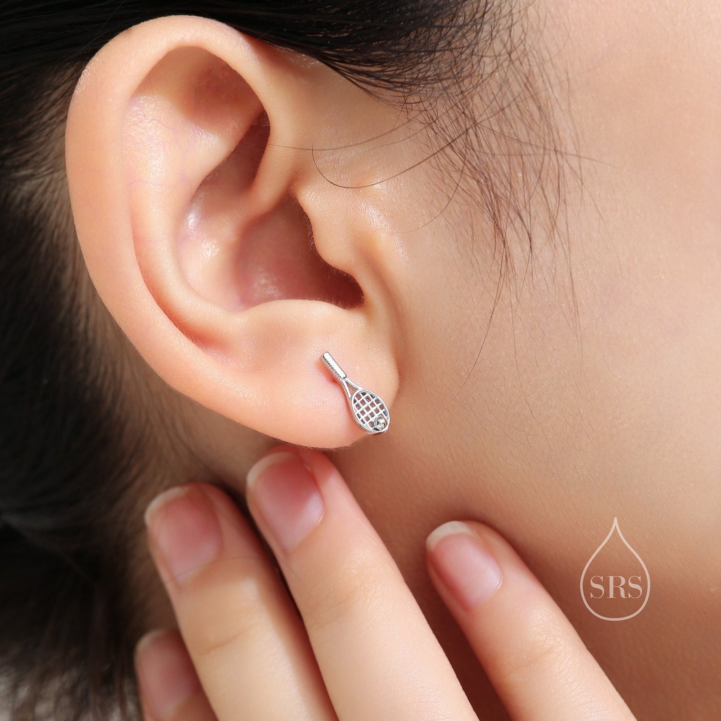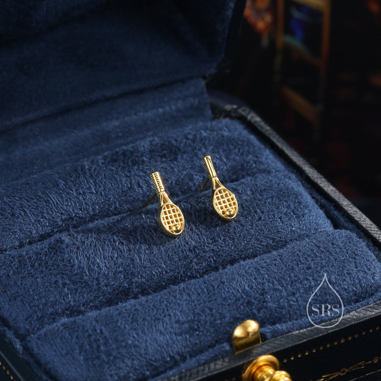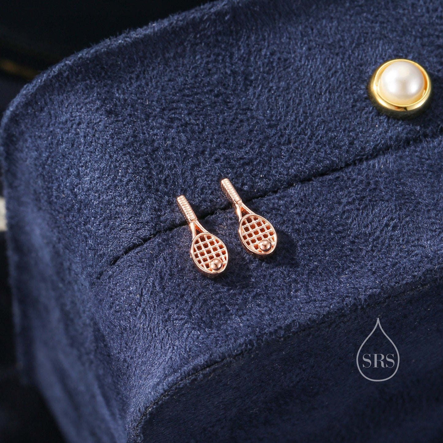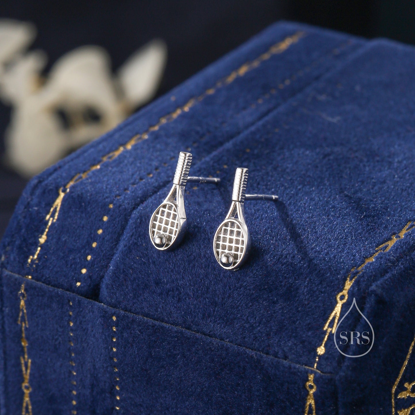 Sterling Silver Tennis Racket Stud Earrings Earrings, Silver or Gold or Rose Gold, Tennis Ball Earrings