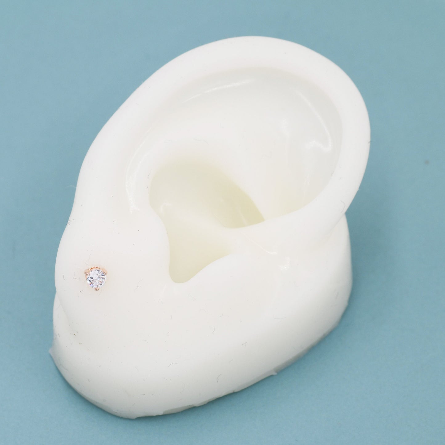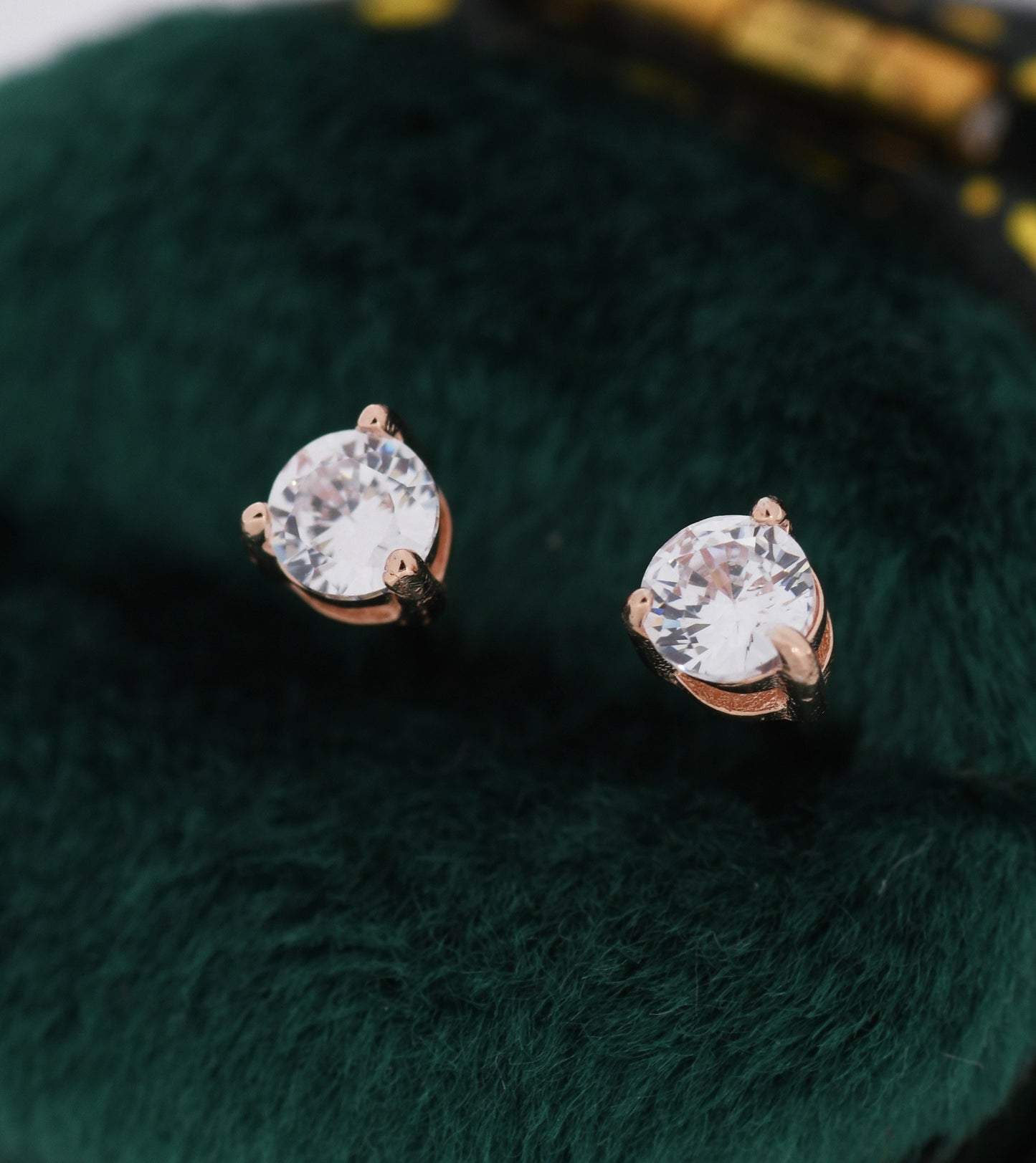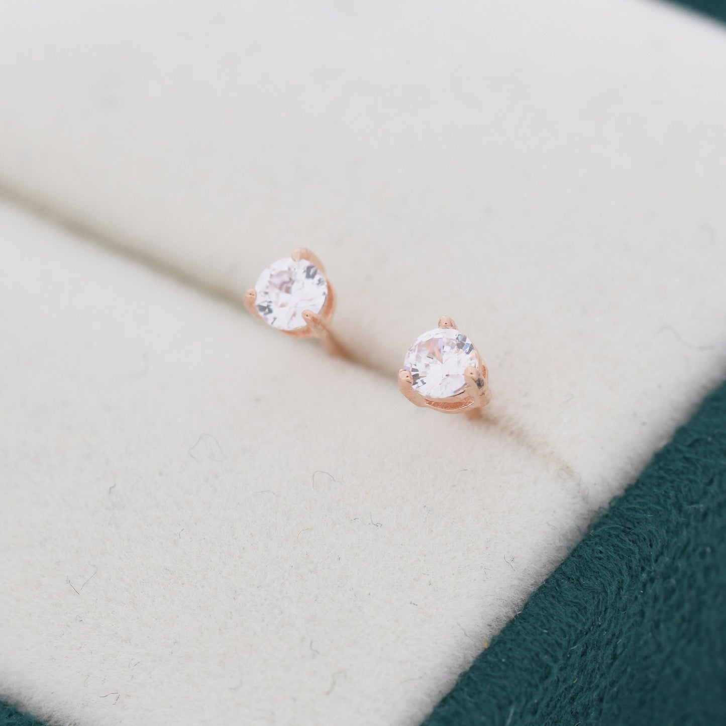 Sterling Silver Three Prong CZ Stud Earrings in Sterling Silver, Silver or Gold or Rose Gold, 3mm CZ, Diamond Stud