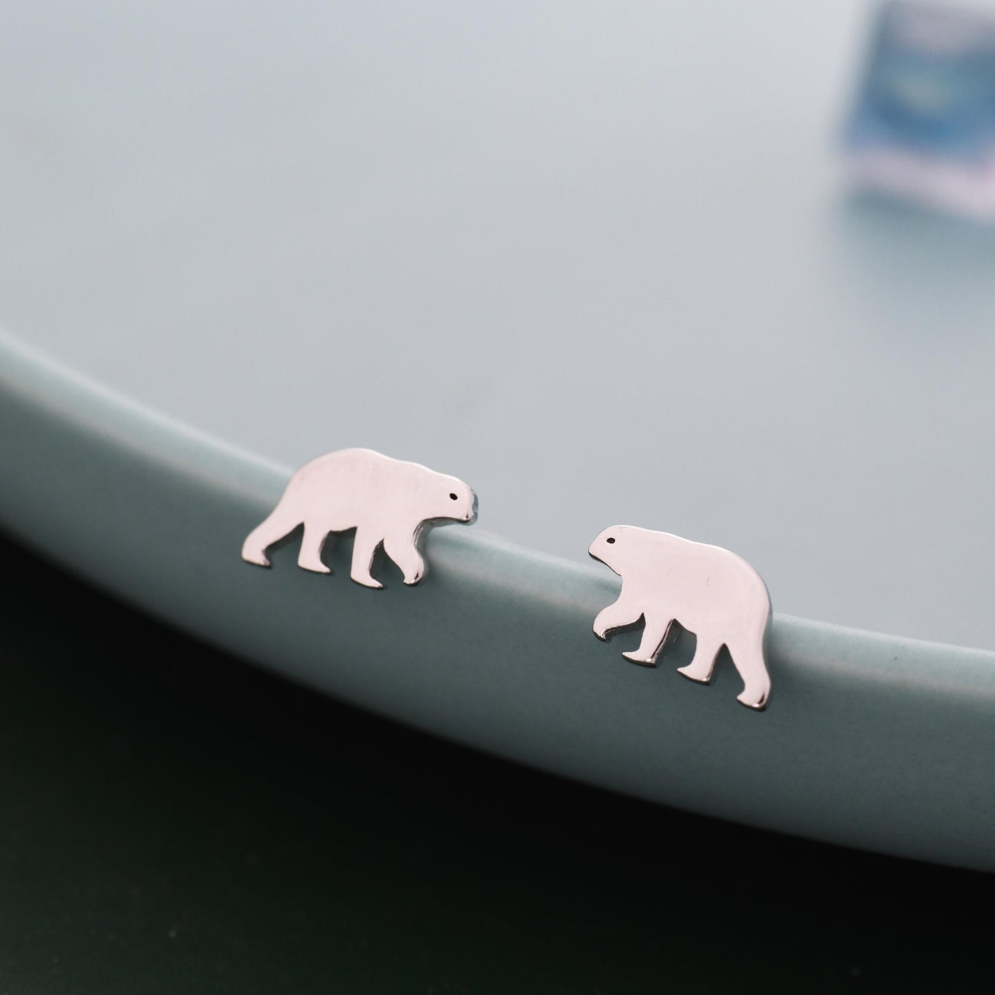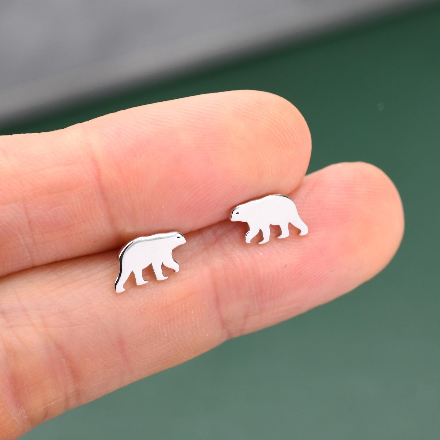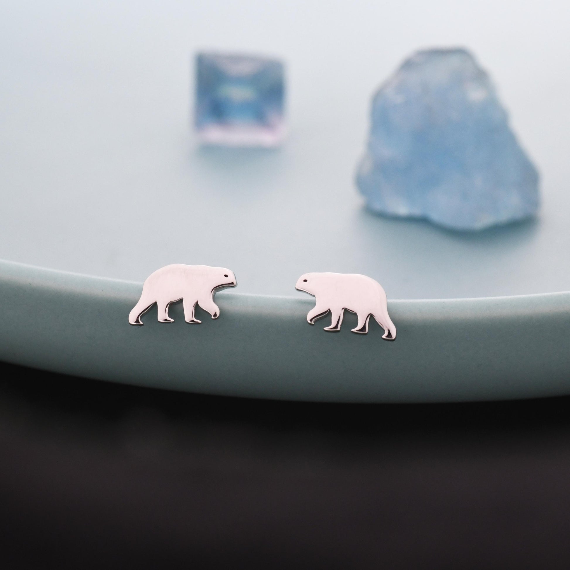 Sterling Silver Tiny Polar Bear Stud Earrings, Animal Earrings, Cute and Quirky