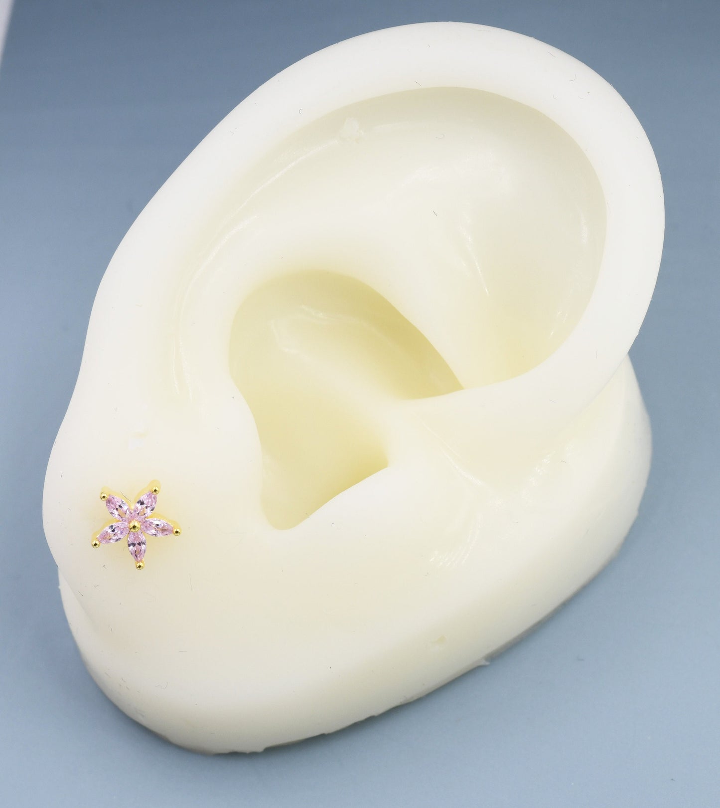 Dimension: The flower measures 7mm, post is 6mm long and the ball is 4mm.