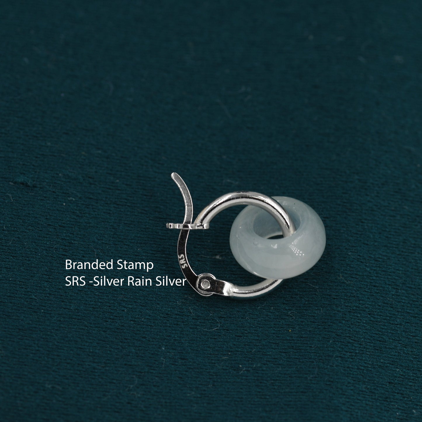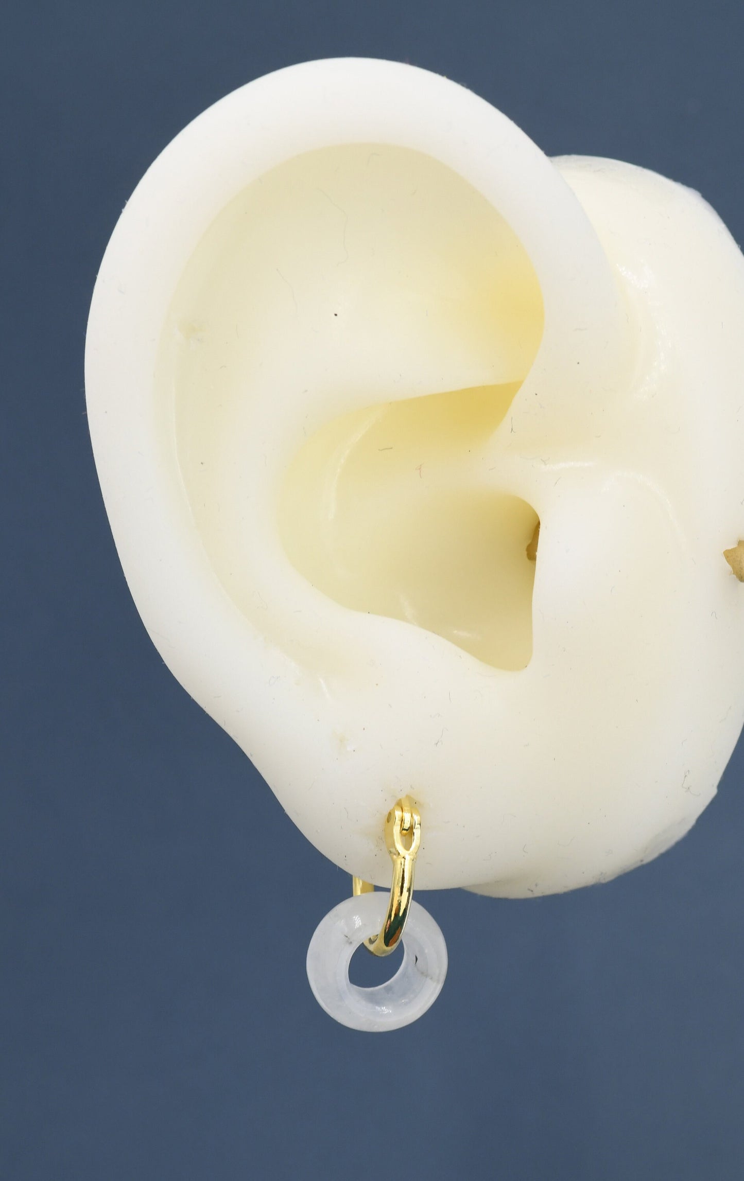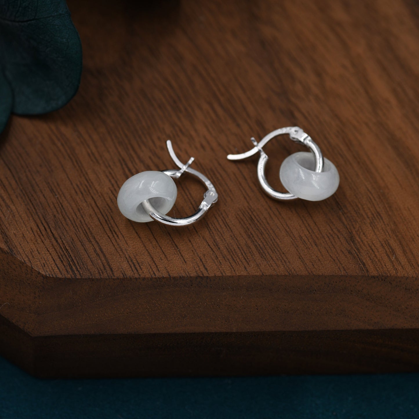 Sterling Silver White Jade Donut Huggie Hoop Earrings, Detachable Natural White Jade Coin Charm Dangle Hoop Earrings, Silver or Gold