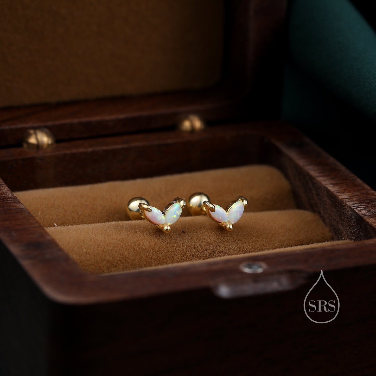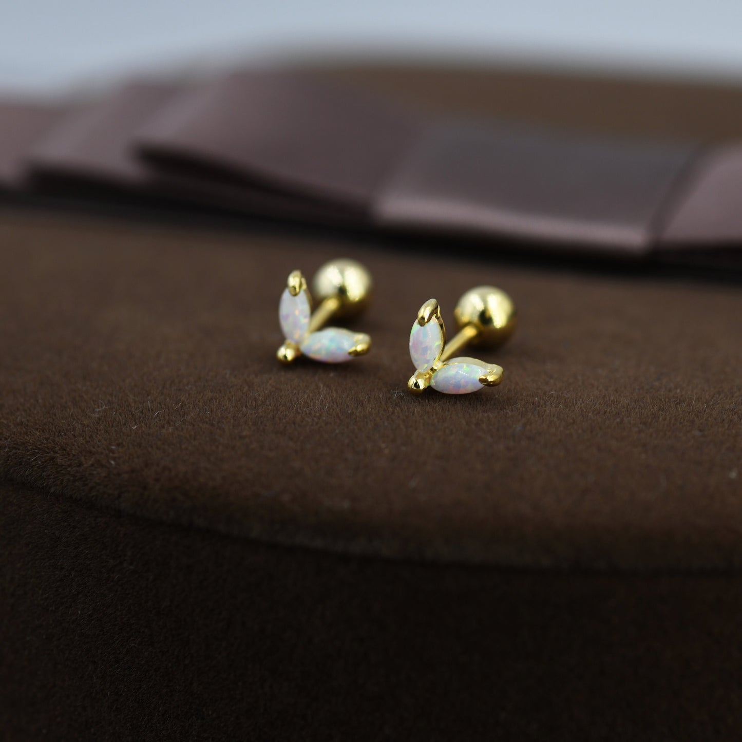 These earrings are made with solid sterling silver and coated with either Rhodium or 18ct yellow gold. Both versions are anti-tarnish and hypoallergenic. Japanese opal gemstones are used for these earrings.