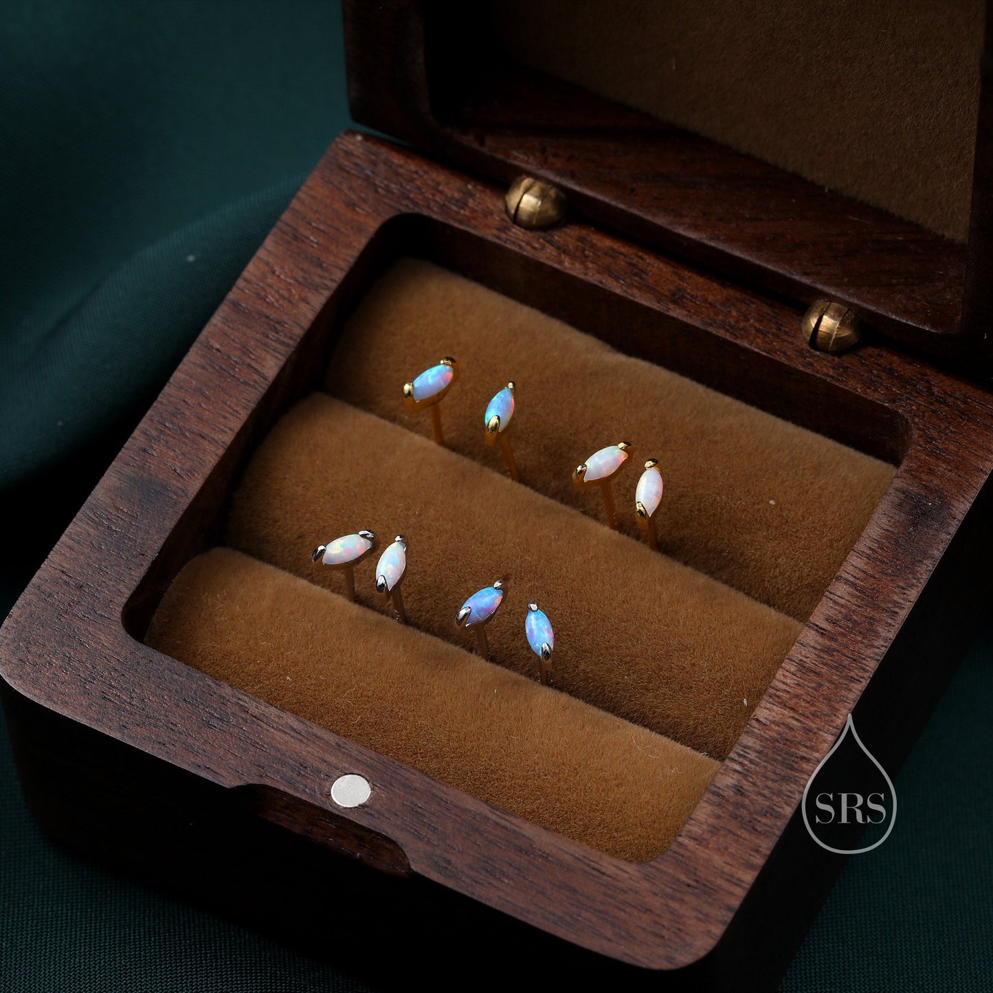 Sterling Silver White Opal Marquise Earrings Screw Back/ Flat Back/Stud Earring, Extra Tiny Marquise Opal Stud, Gold or Rose Gold