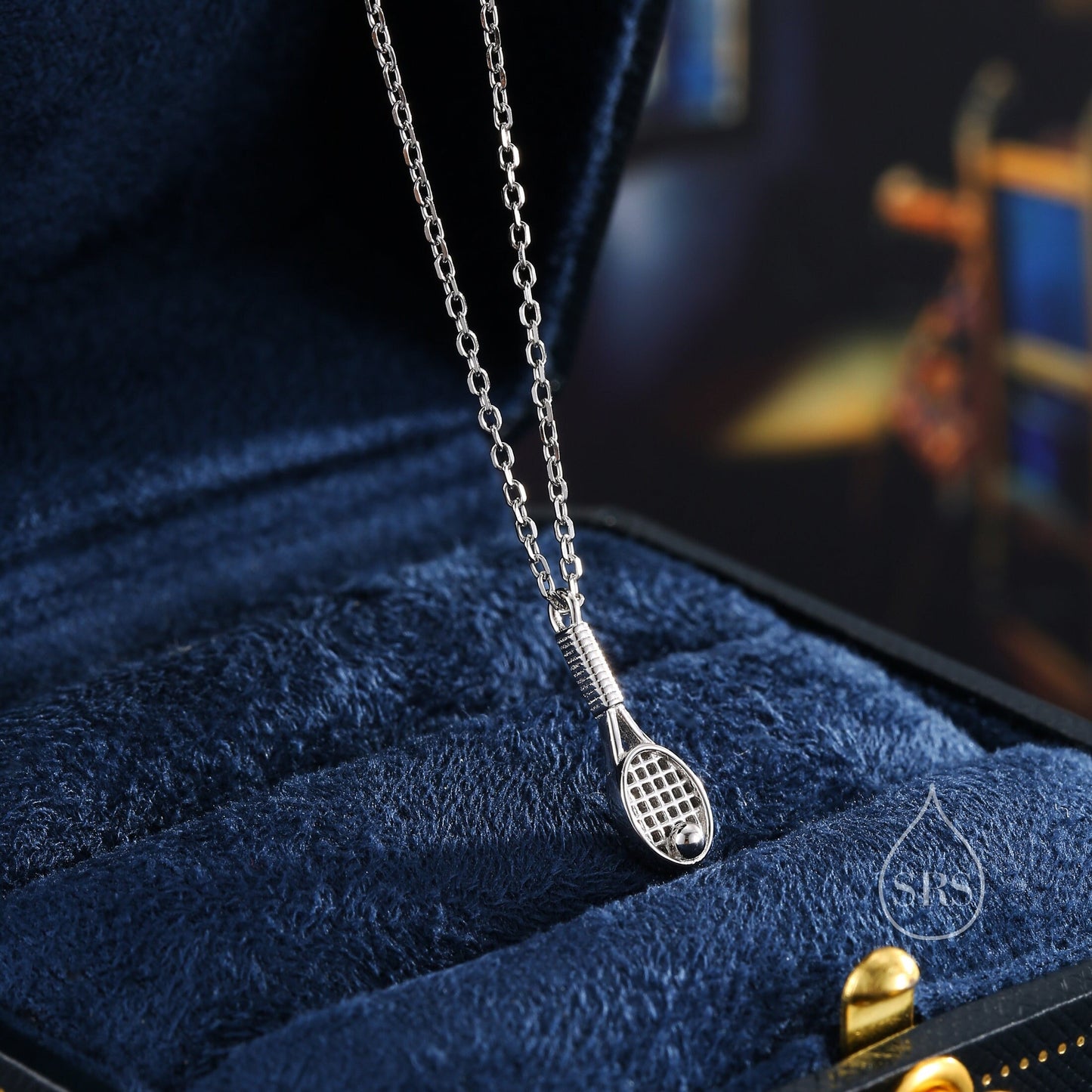 Tennis Racket Pendant Necklace in Sterling Silver, Silver or Gold or Rose Gold, Tennis Necklace, Tennis Lover Gift