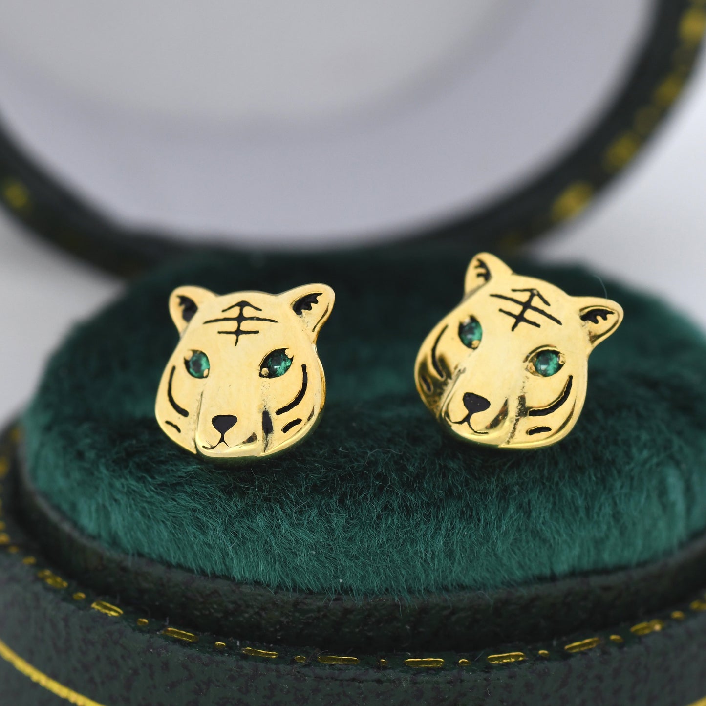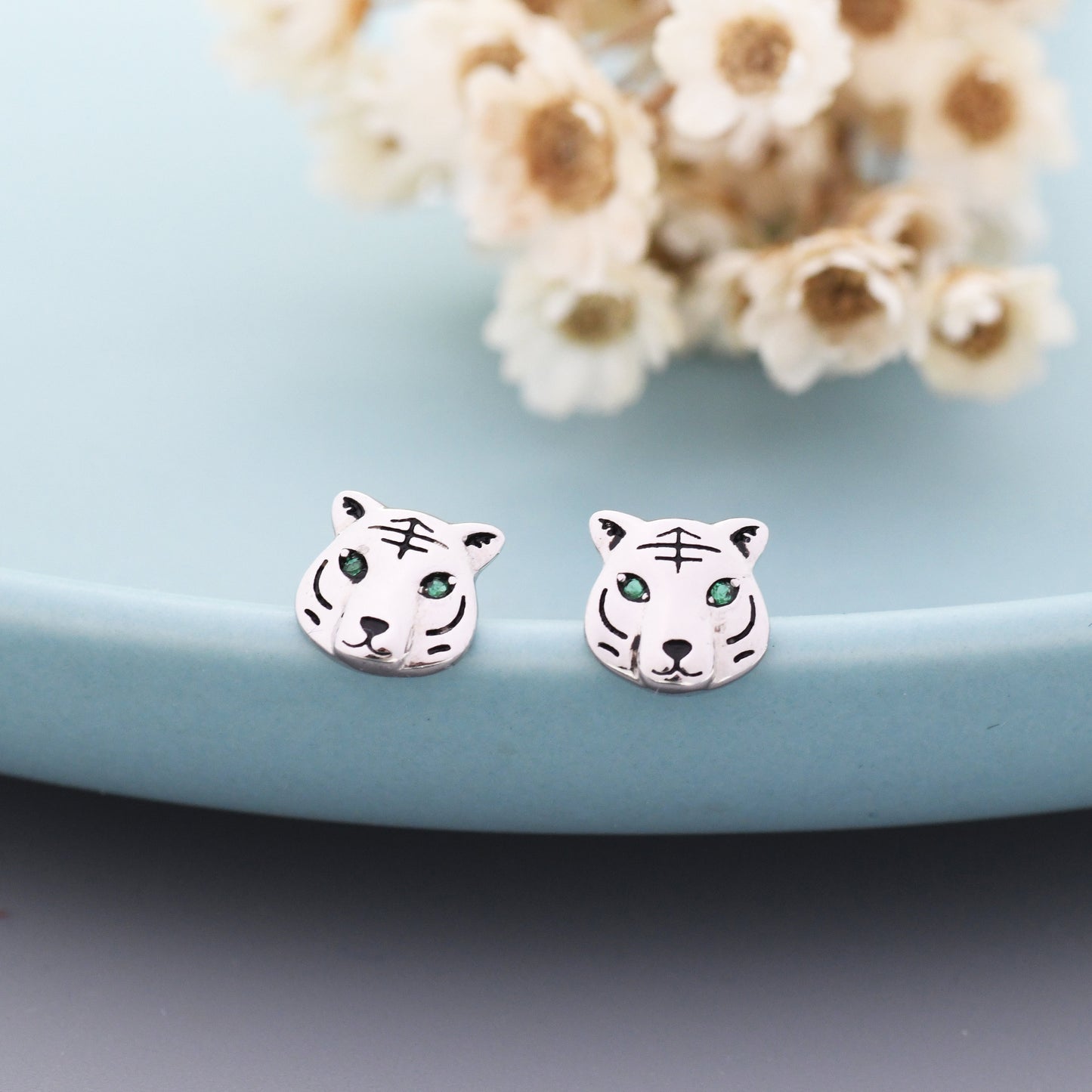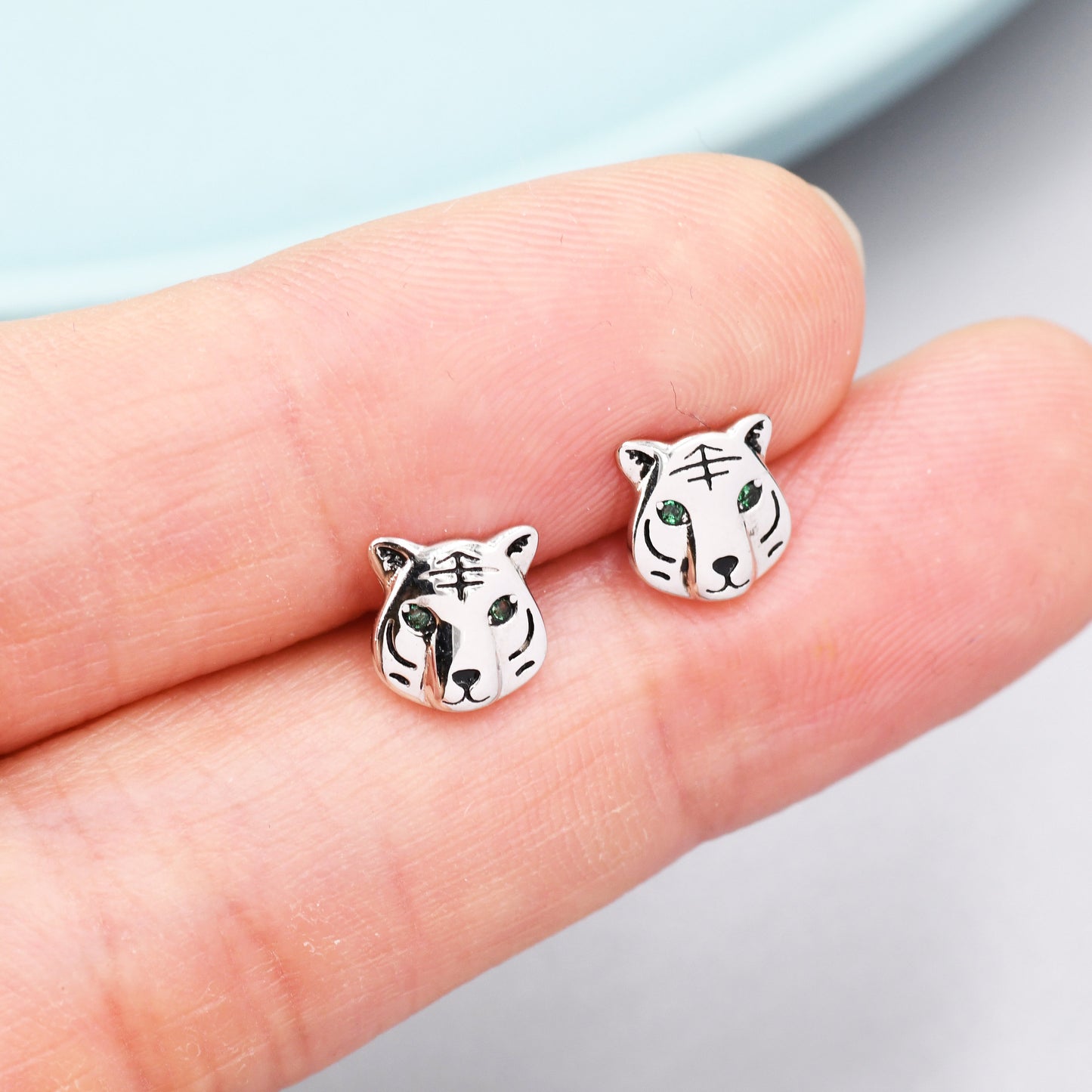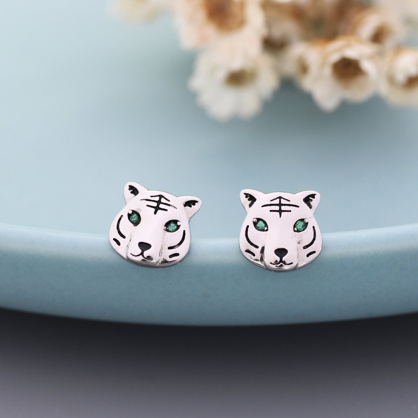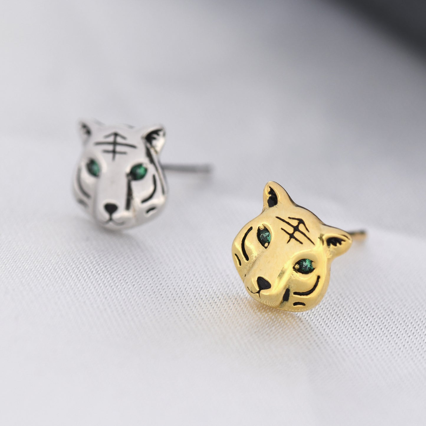 Tiger Stud Earrings in Sterling Silver, Silver or Gold, Animal Earrings, Nature Inspired