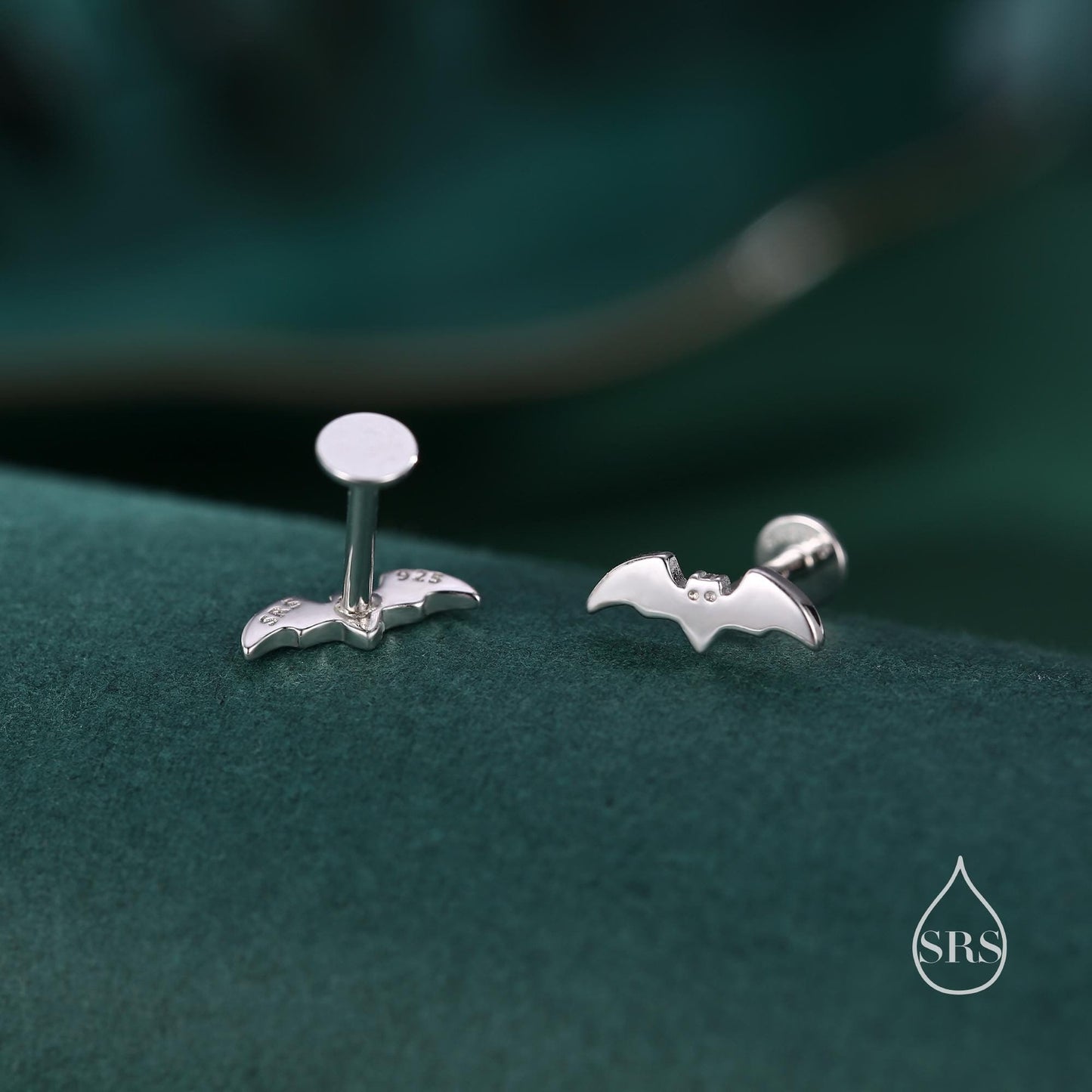 Tiny Bat Flat Back / Screw Back / Stud Earrings in Sterling Silver, Silver or Gold or Rose Gold, Bat Earrings, Stacking Earrings, Animal Earrings