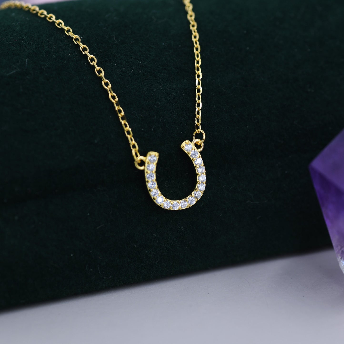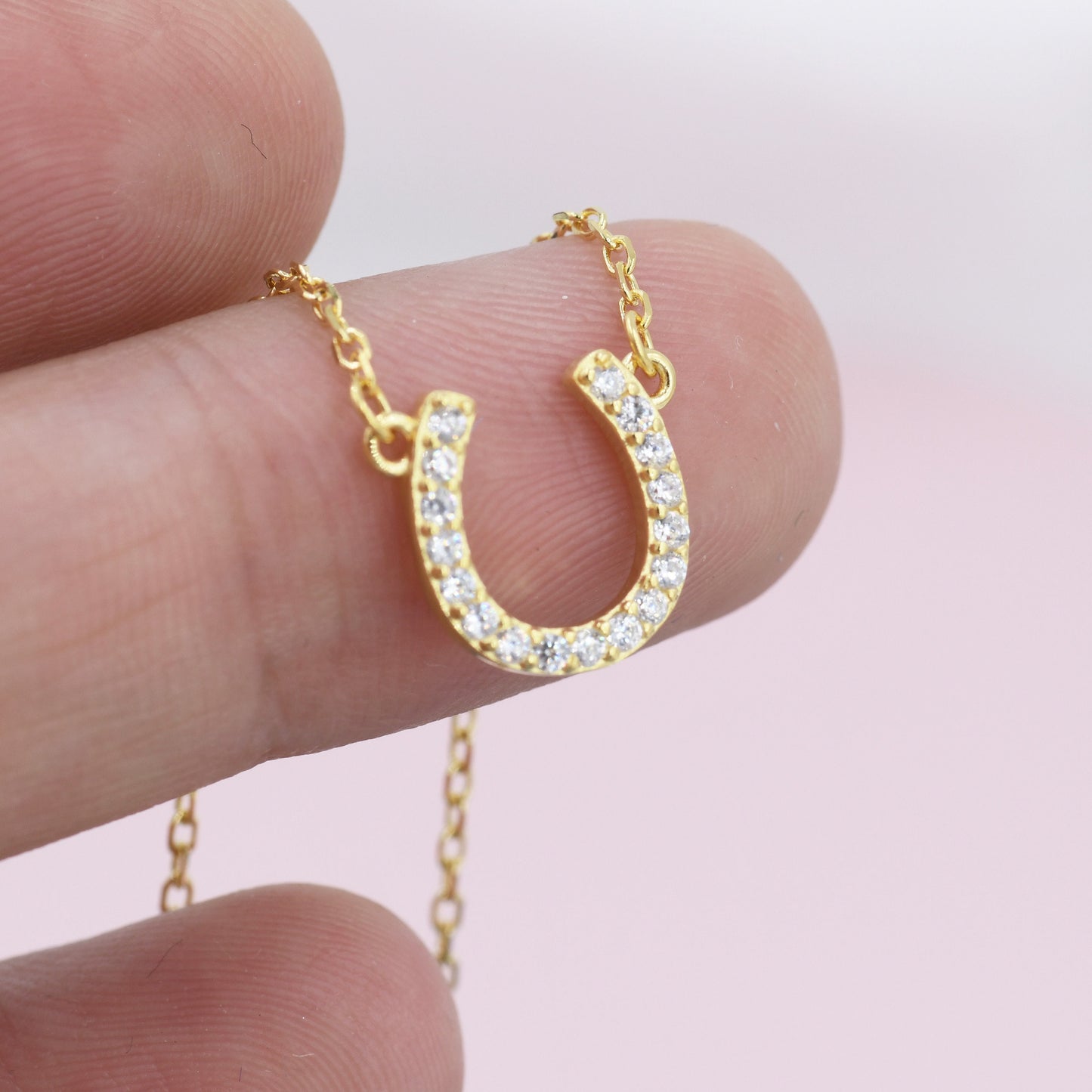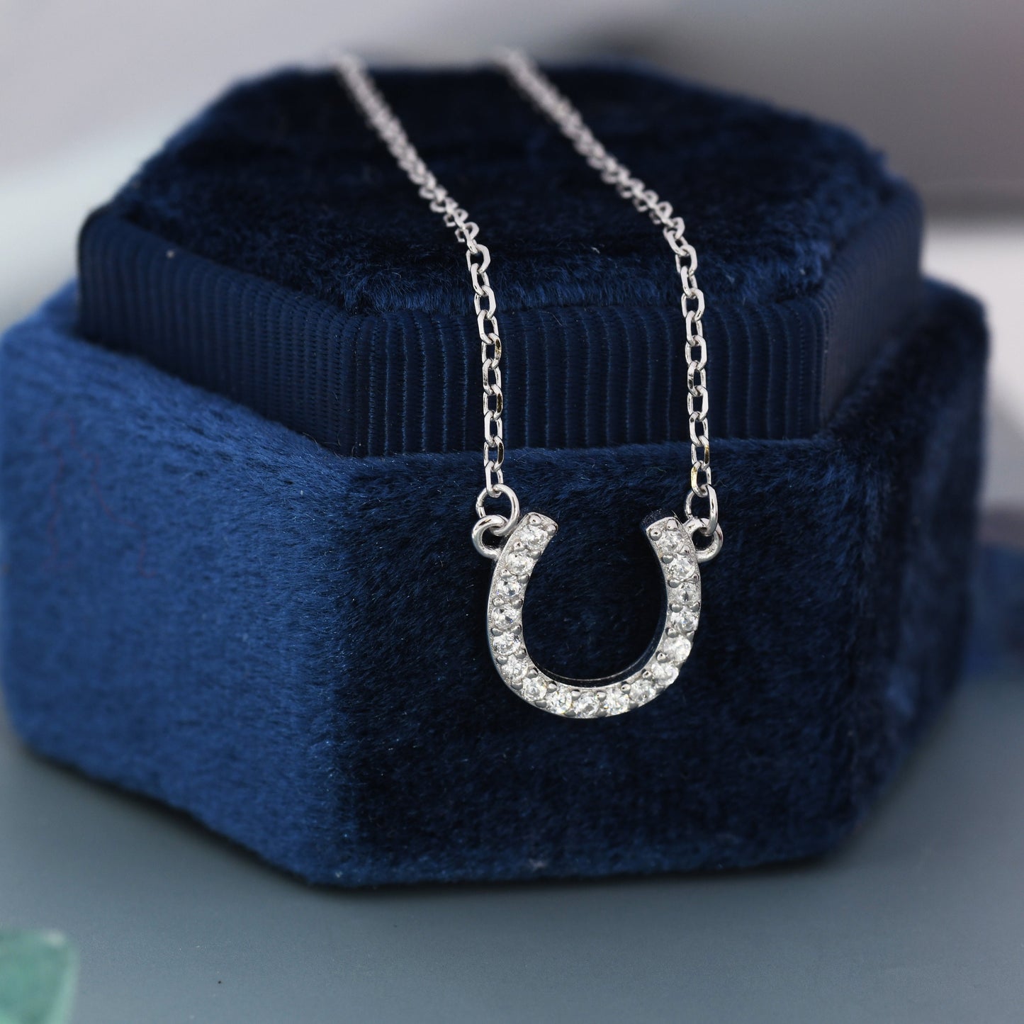 Tiny CZ Horseshoe Necklace in Sterling Silver, Silver or Gold, Adjustable 16'' - 18''; - Cute Quirky and Fun Jewellery, Horse Necklace