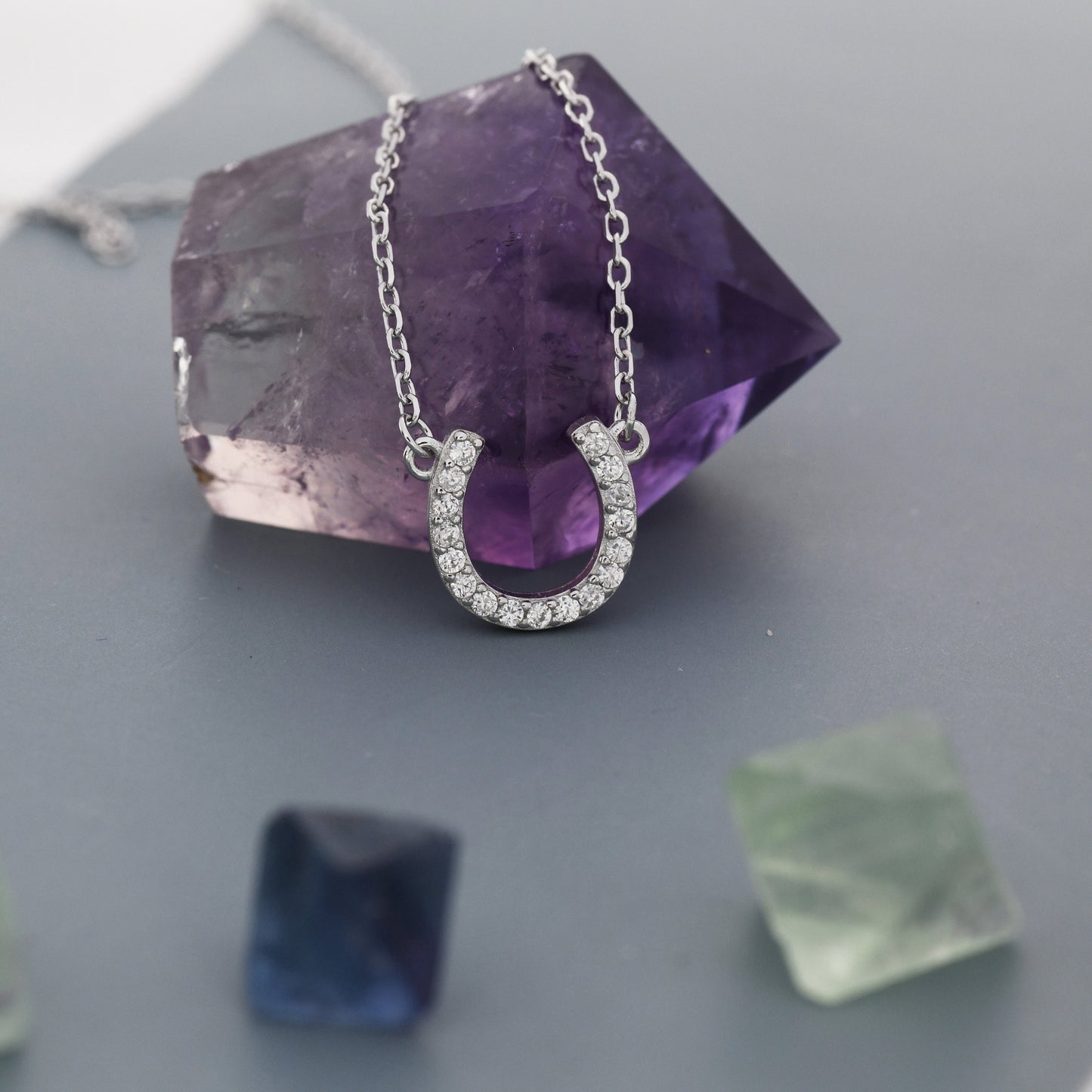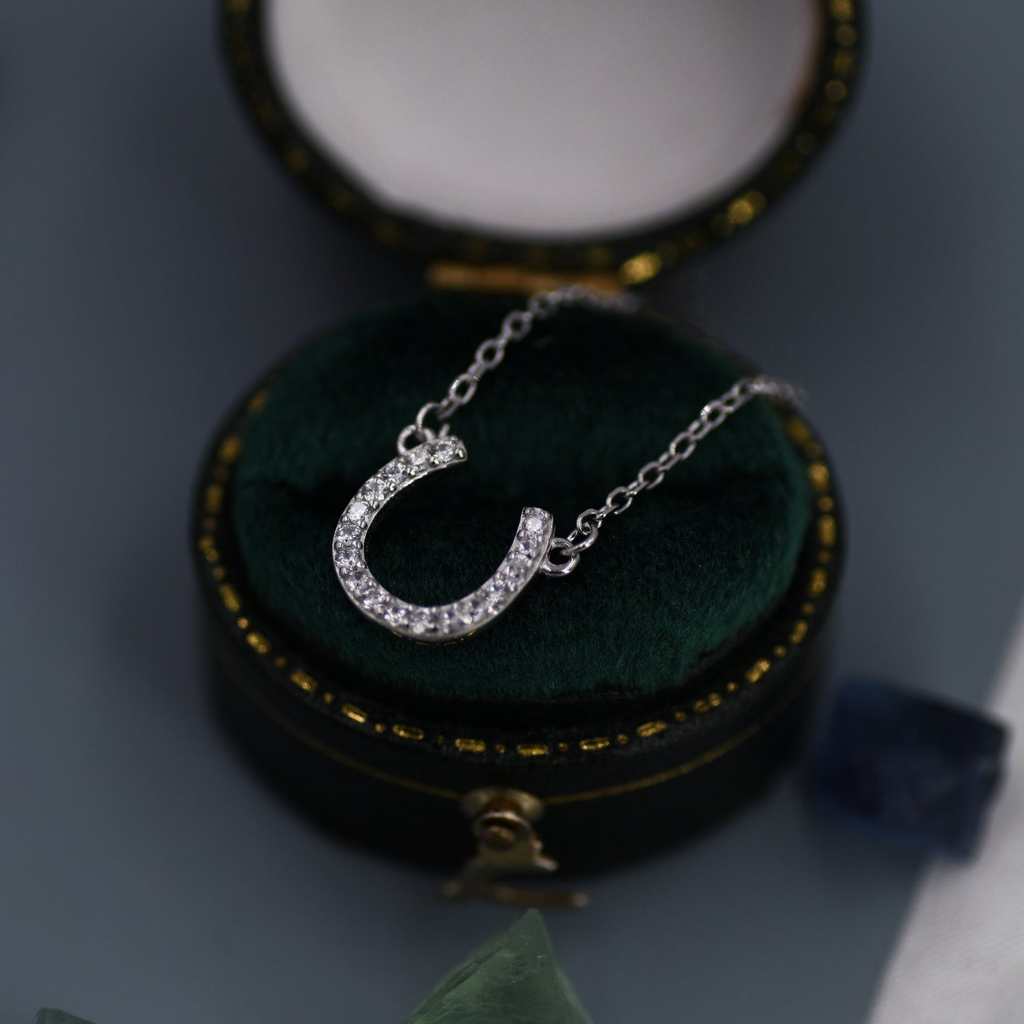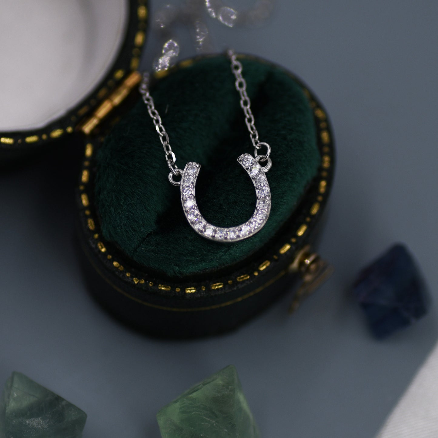 Tiny CZ Horseshoe Necklace in Sterling Silver, Silver or Gold, Adjustable 16'' - 18''; - Cute Quirky and Fun Jewellery, Horse Necklace