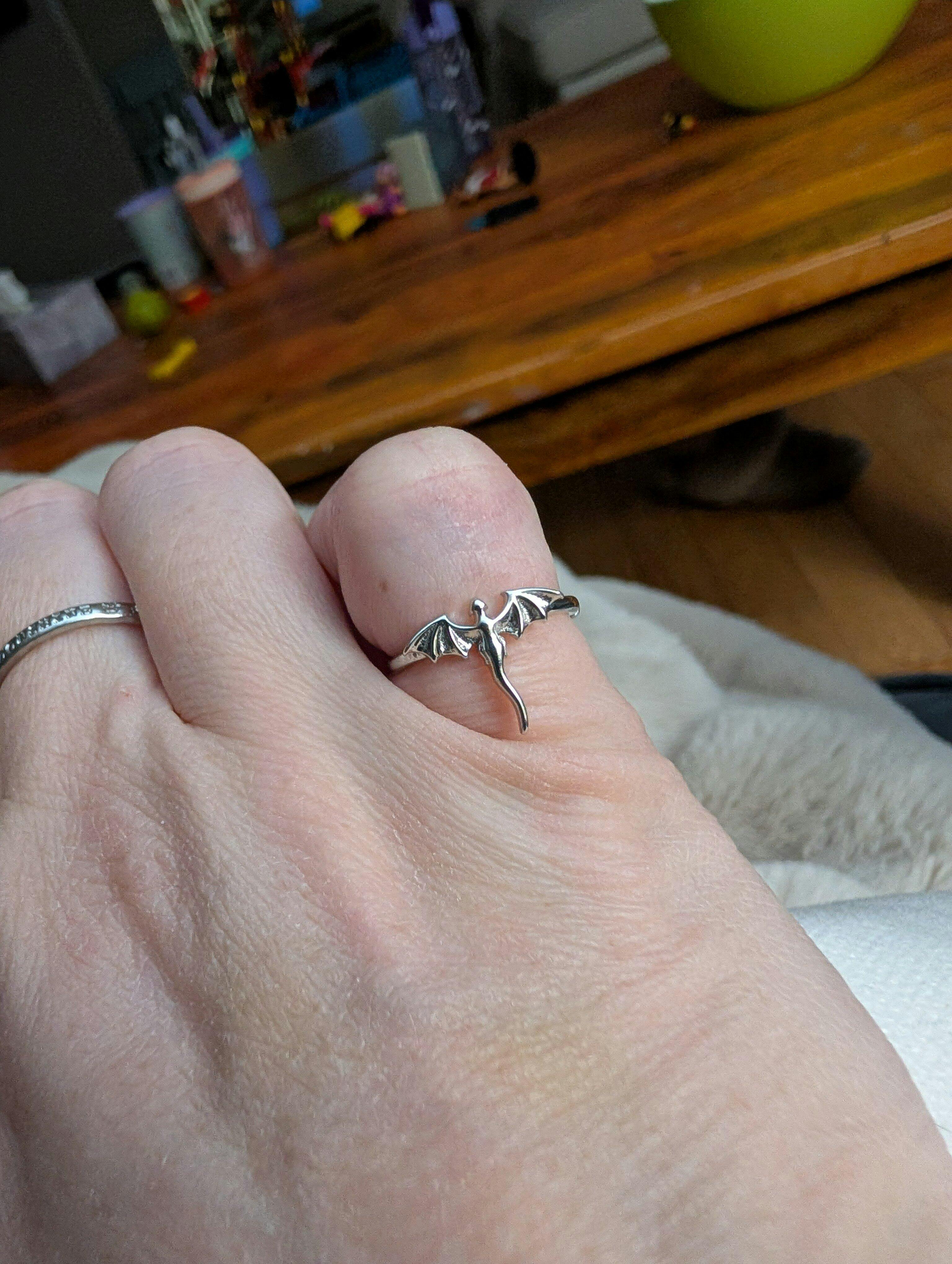Tiny Flying Dragon Ring in Sterling Silver, Adjustable Size, Dragon Ring, Sterling Silver Dragon Ring.