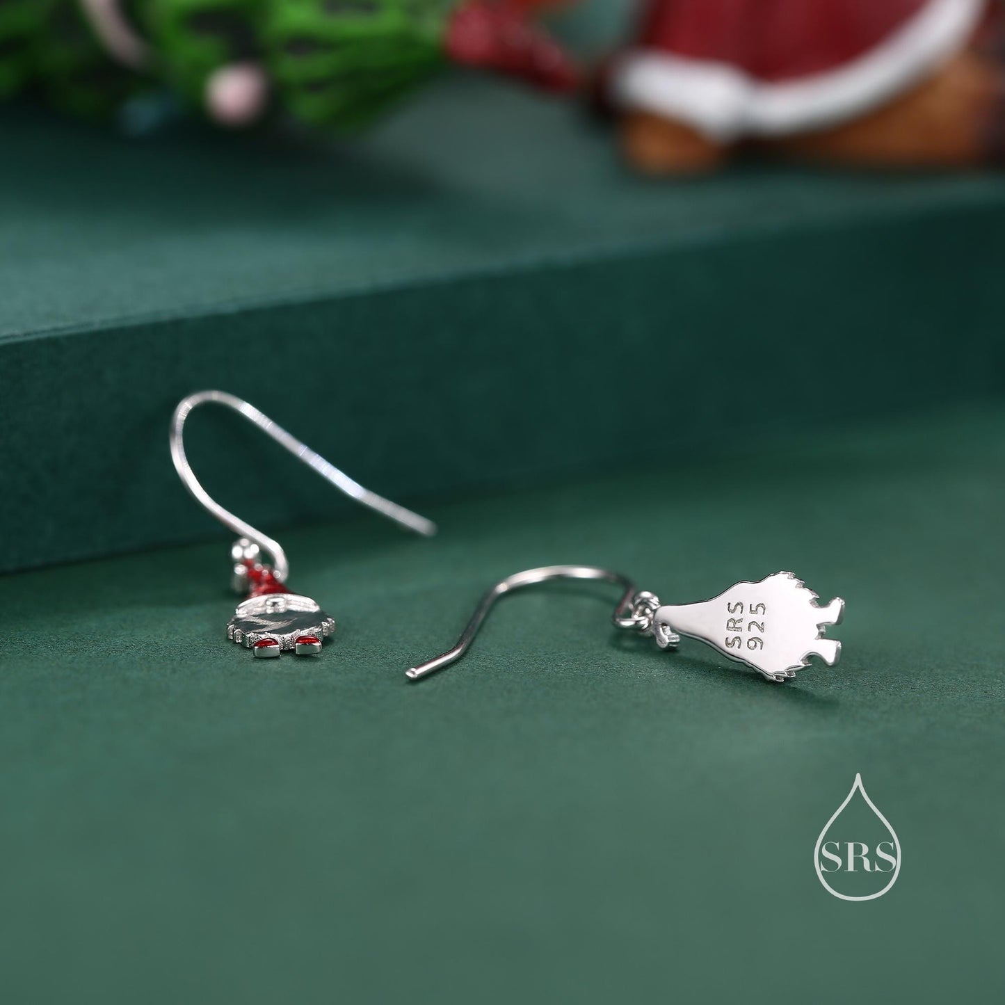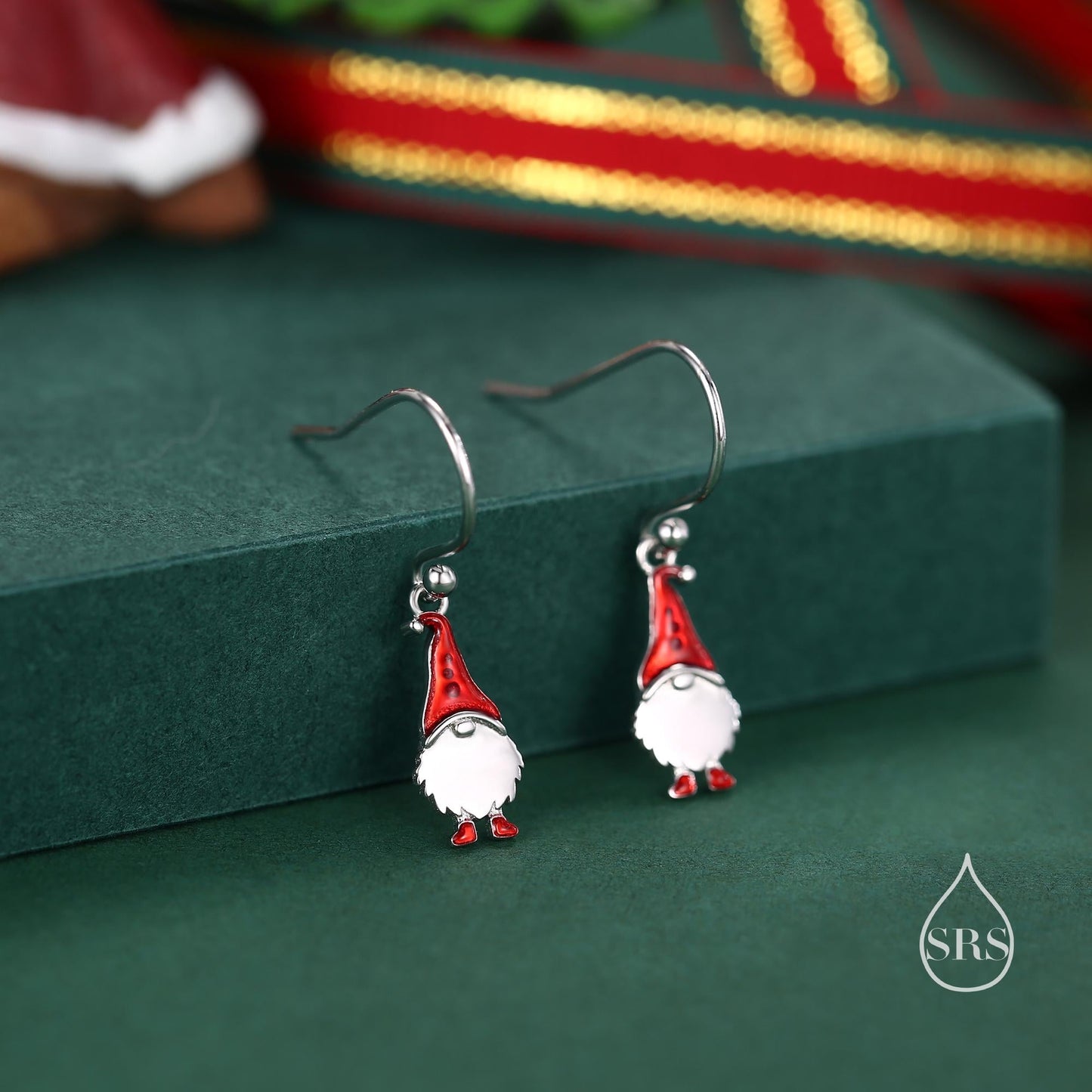 Tiny Gnome Drop Hook Earrings in Sterling Silver with Hand Painted Enamel, Winter Earrings, Snowman Earrings, Christmas Earrings