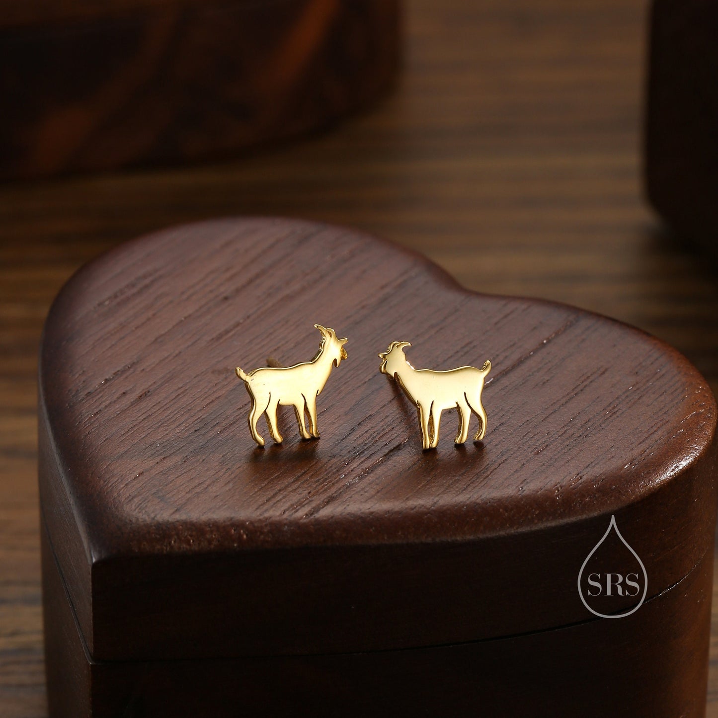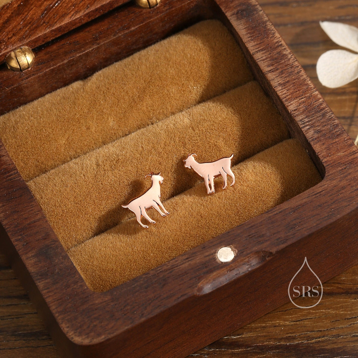 Tiny Goat Stud Earrings in Sterling Silver, Silver or Gold or Rose Gold, Sterling Silver Goat Earrings, Sheep Earrings, Farm Earrings