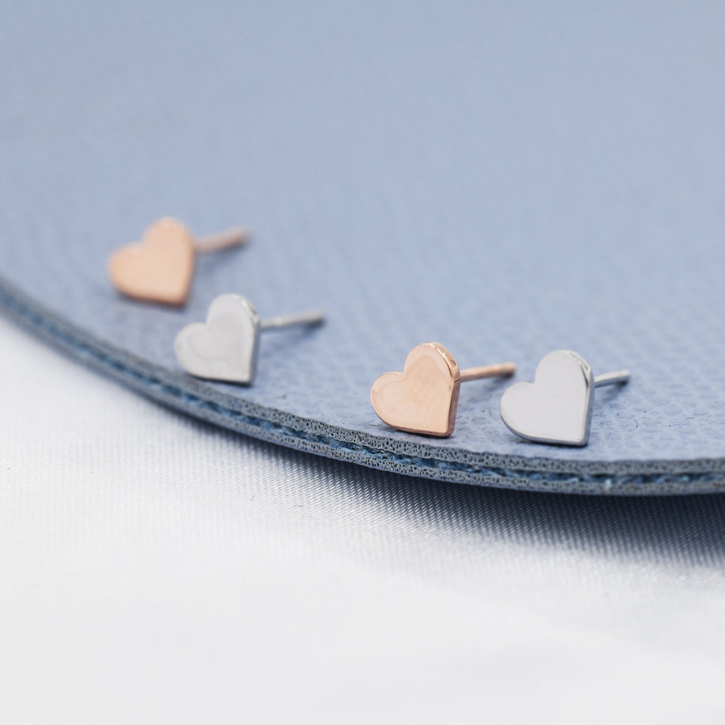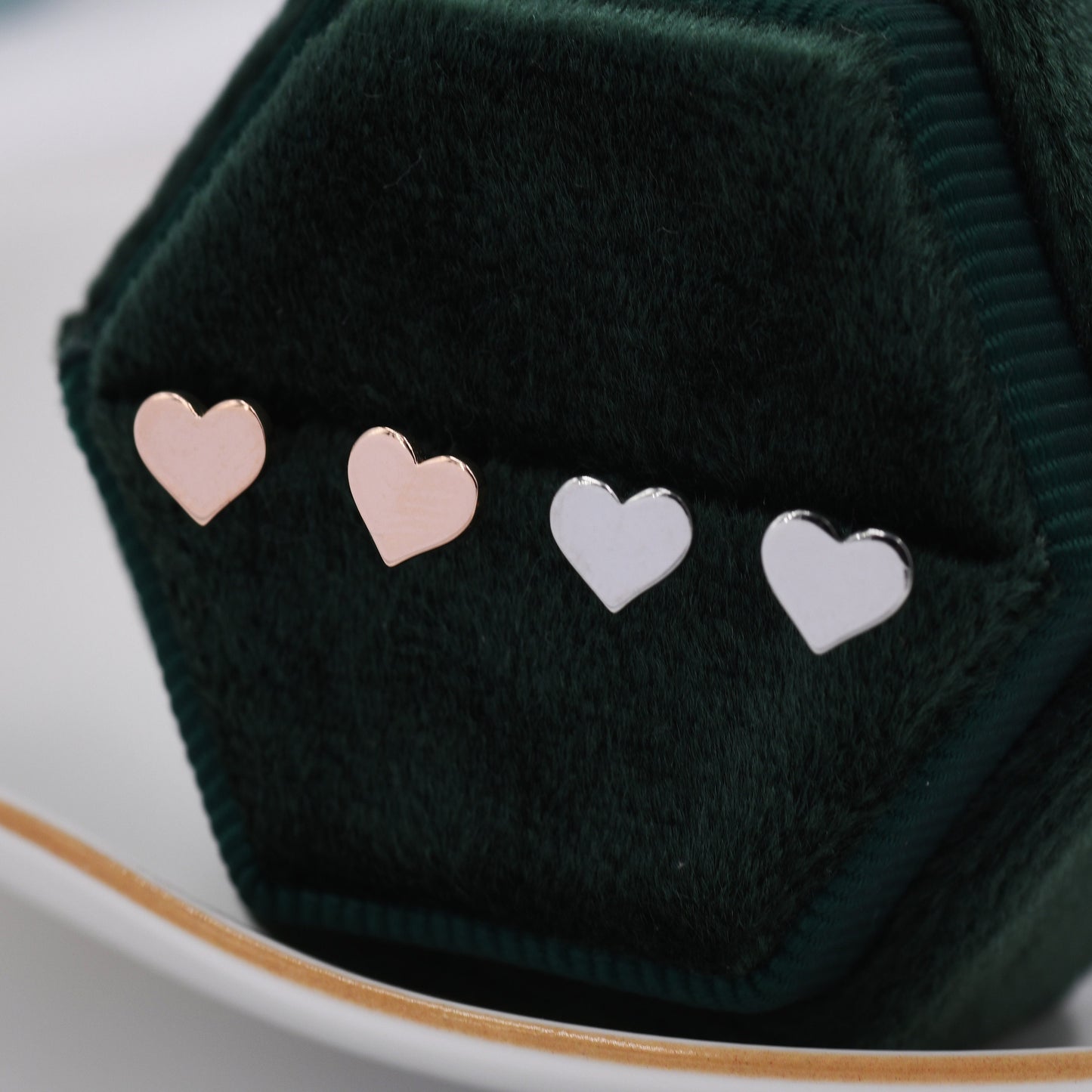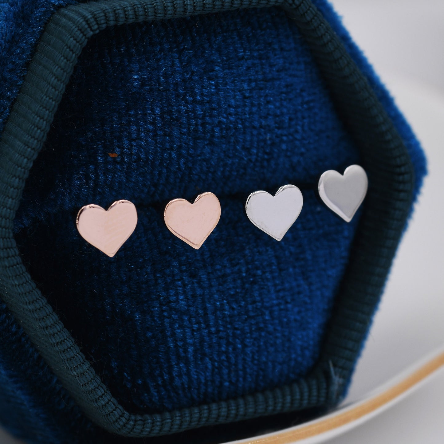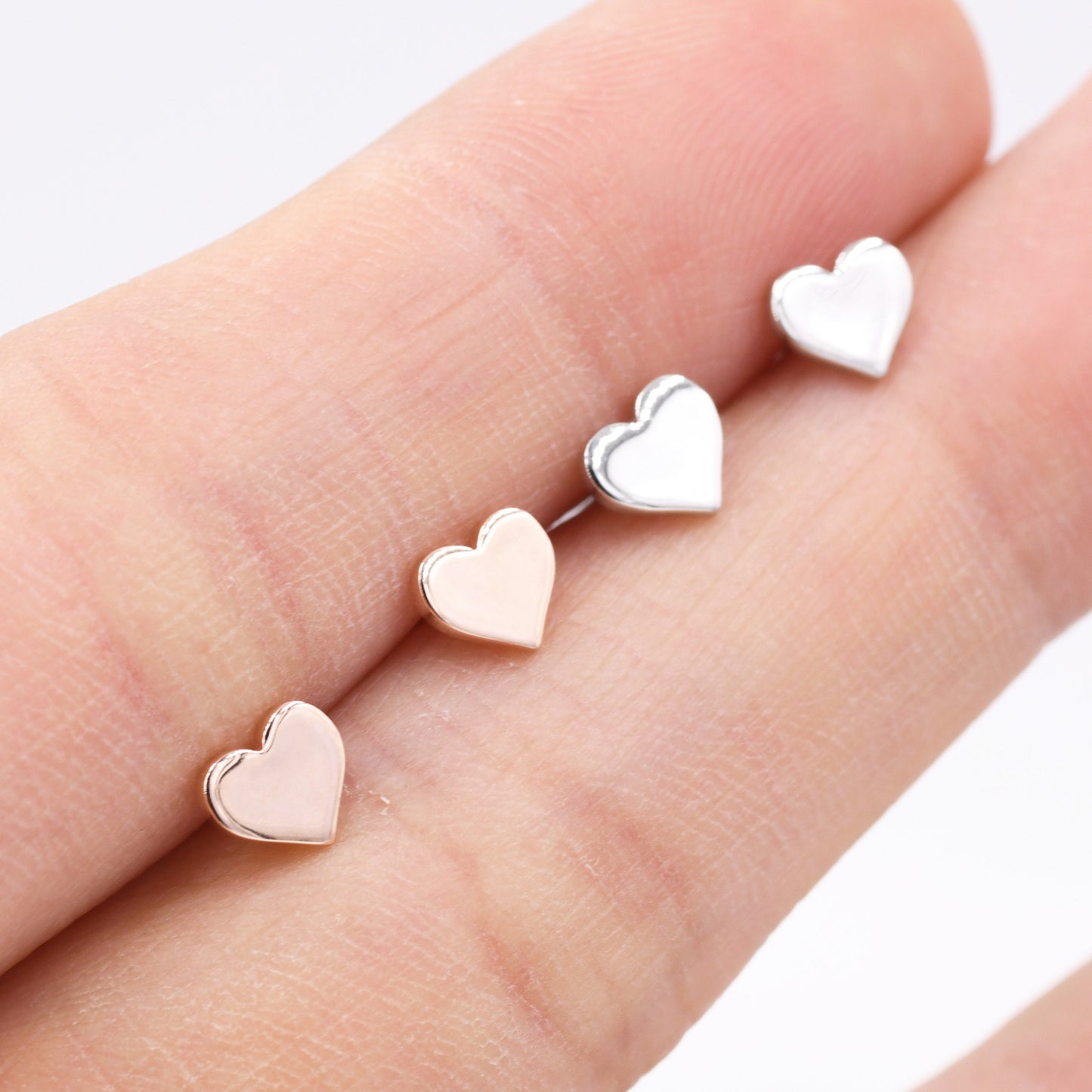 Tiny Heart Stud Earrings in Sterling Silver, Silver or gold or Rose Gold, Heart earring