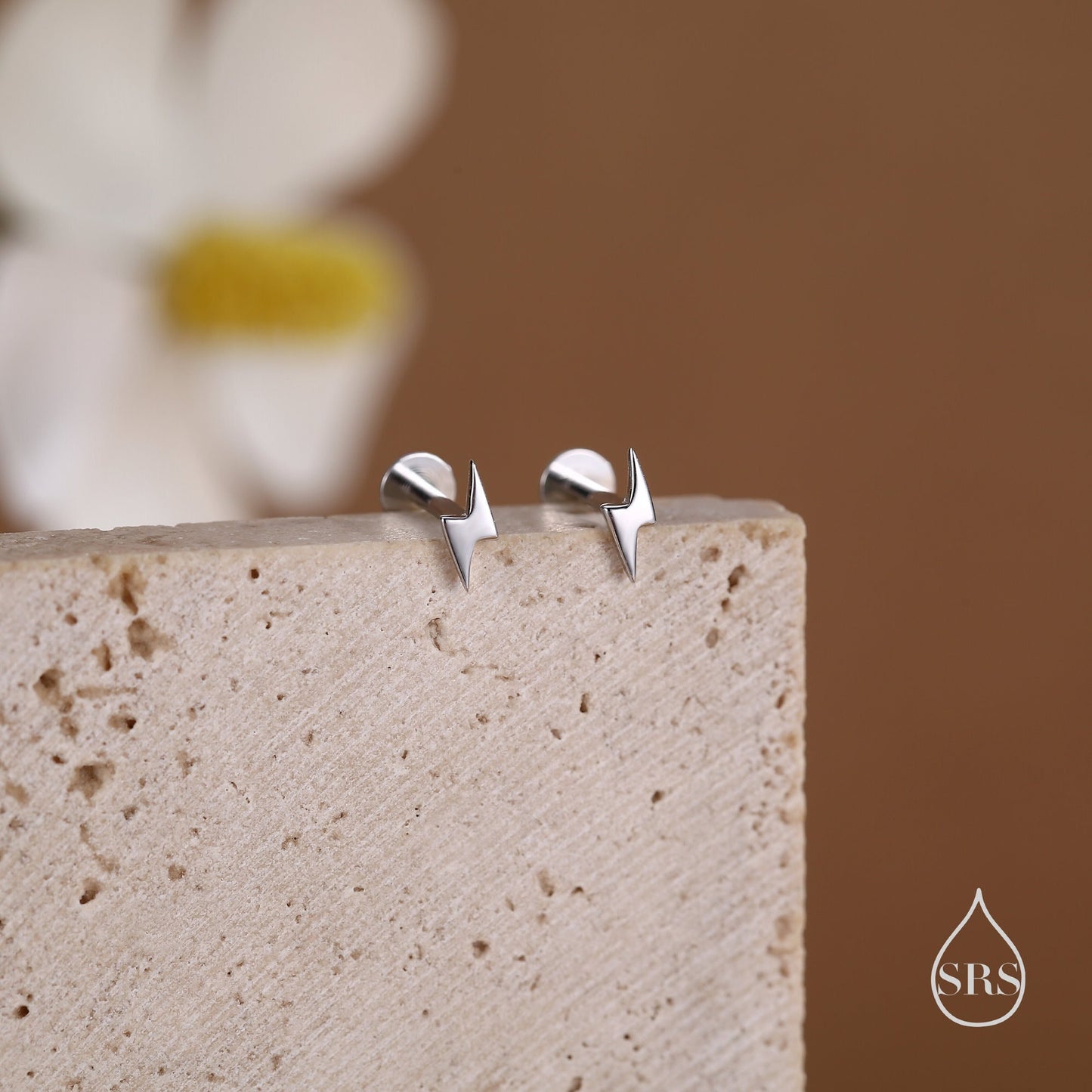 Tiny Lightning Bolt Internally Threaded Flat Back/Screw back(Barbell)/ Stud Earrings in Sterling Silver, Screw Back Lightening Bolt Earrings