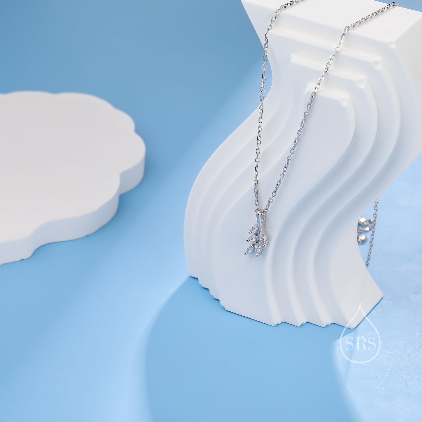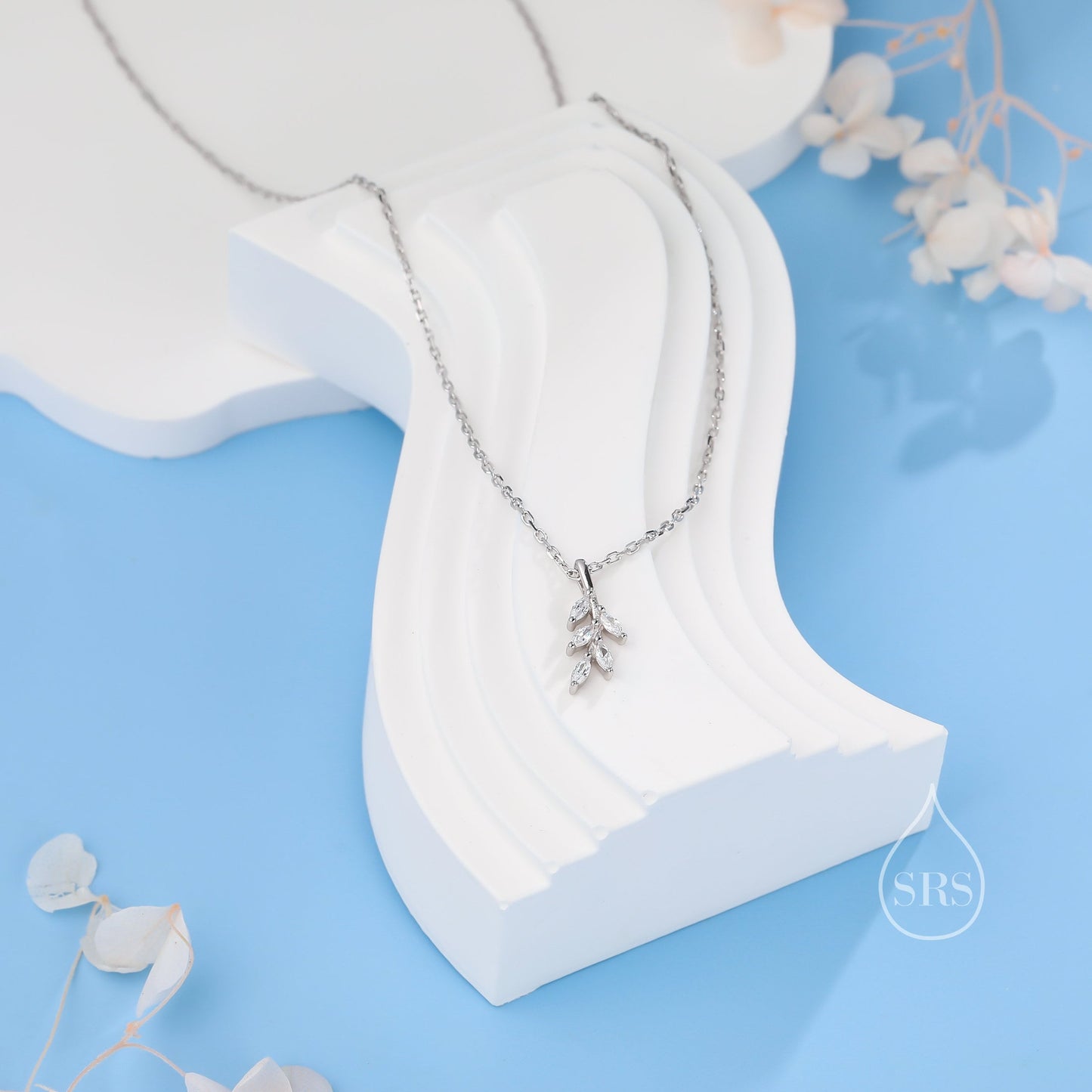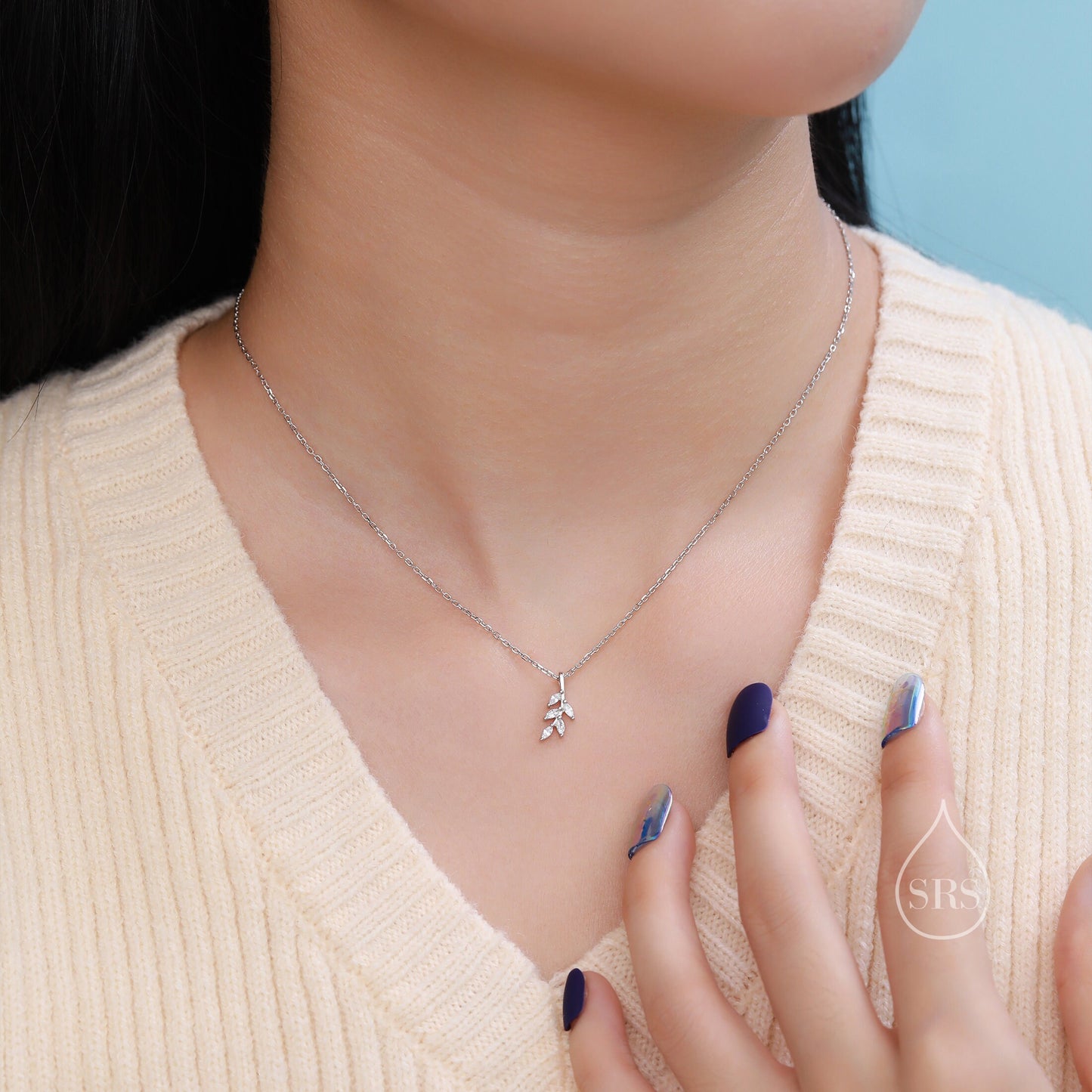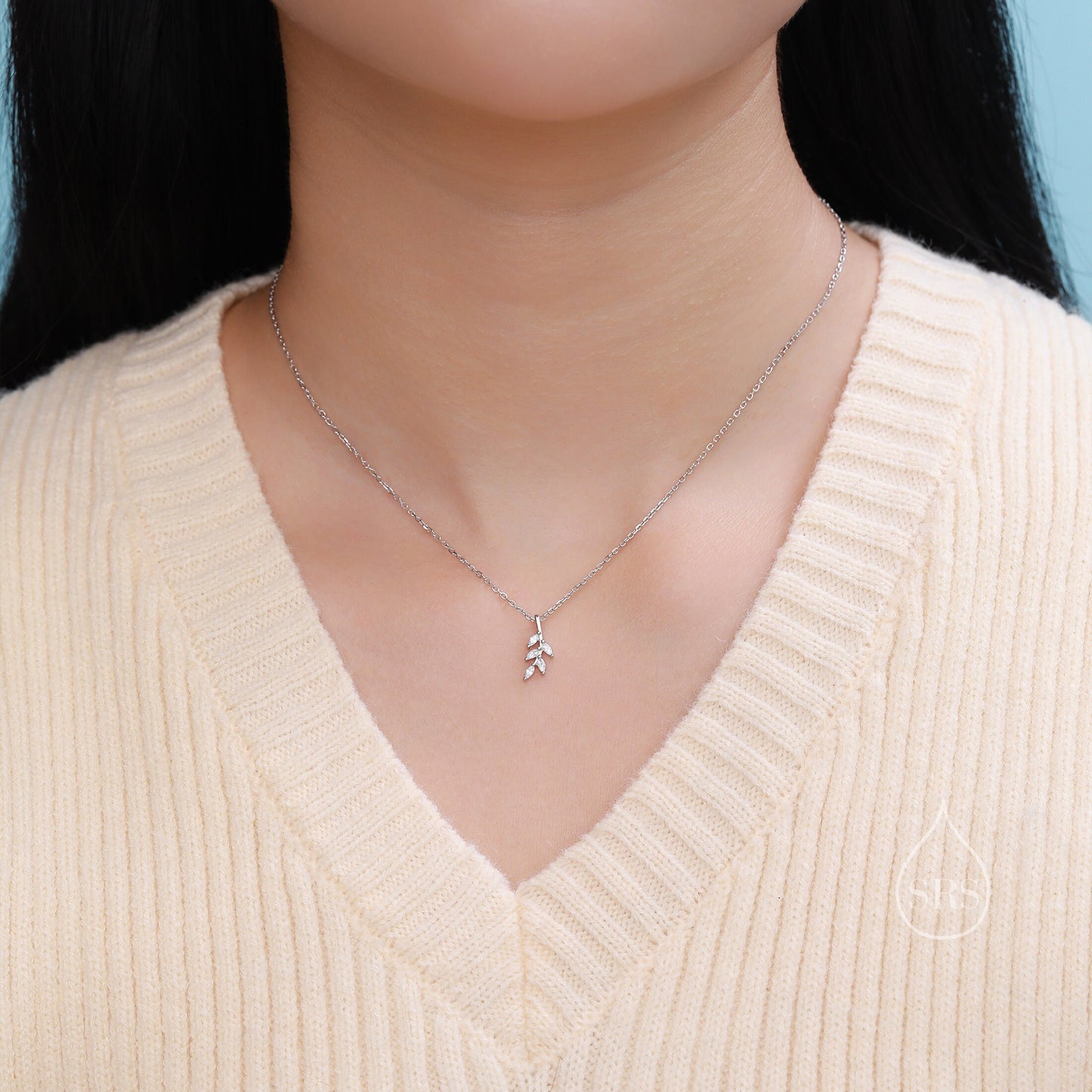 Tiny Little CZ Leaf Pendant Necklace in Sterling Silver, Olive Leaf Necklace, Olive Branch Necklace, Nature Inspired