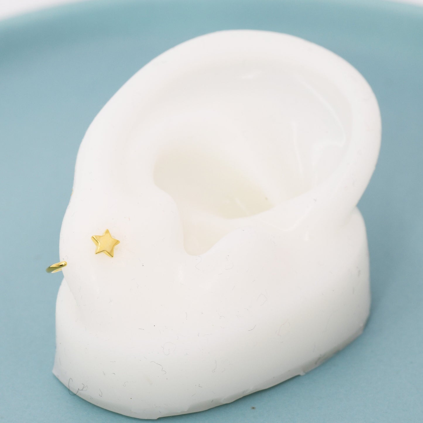 Tiny Mismatched Moon and Star Huggie Hoop Earrings in Sterling Silver, Asymmetric Pull Through Earrings, Half Hoop, Silver or Gold