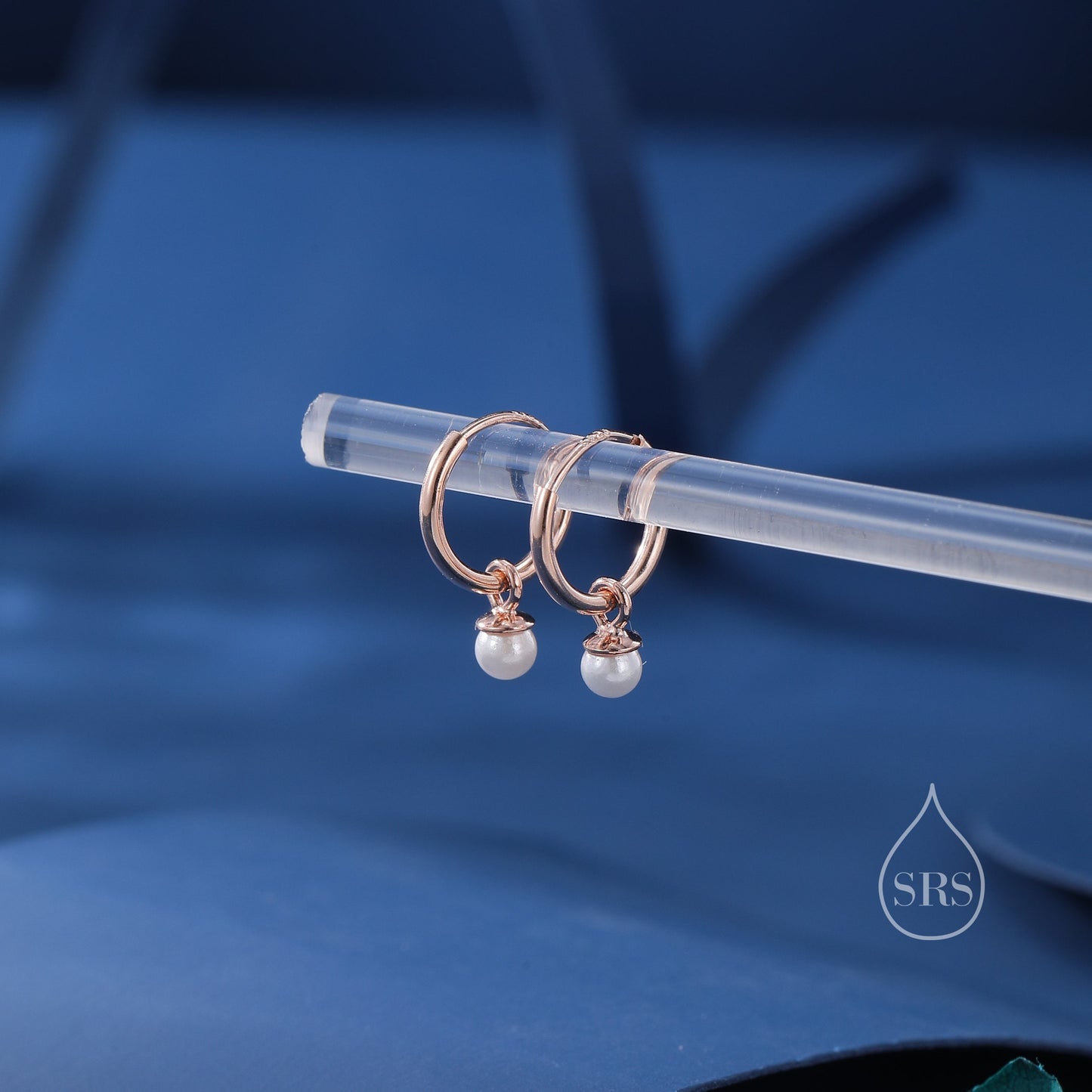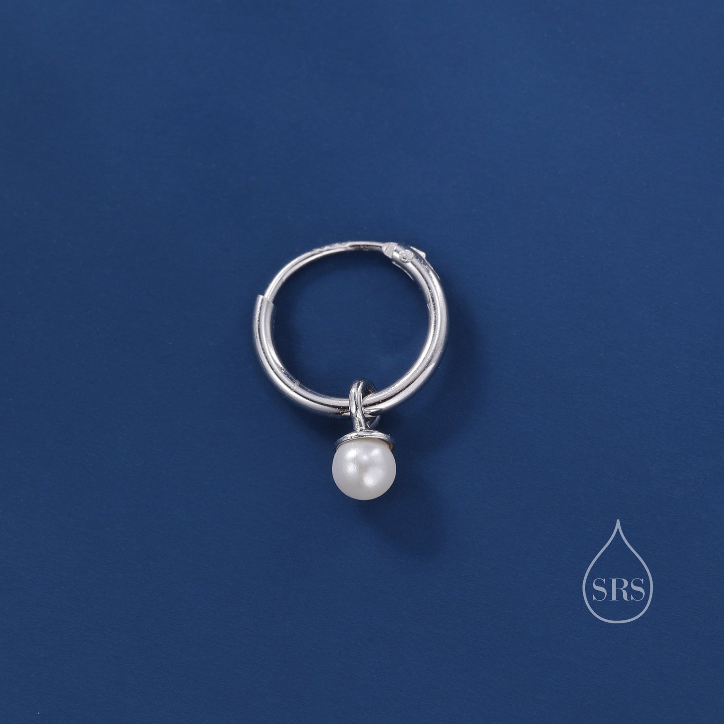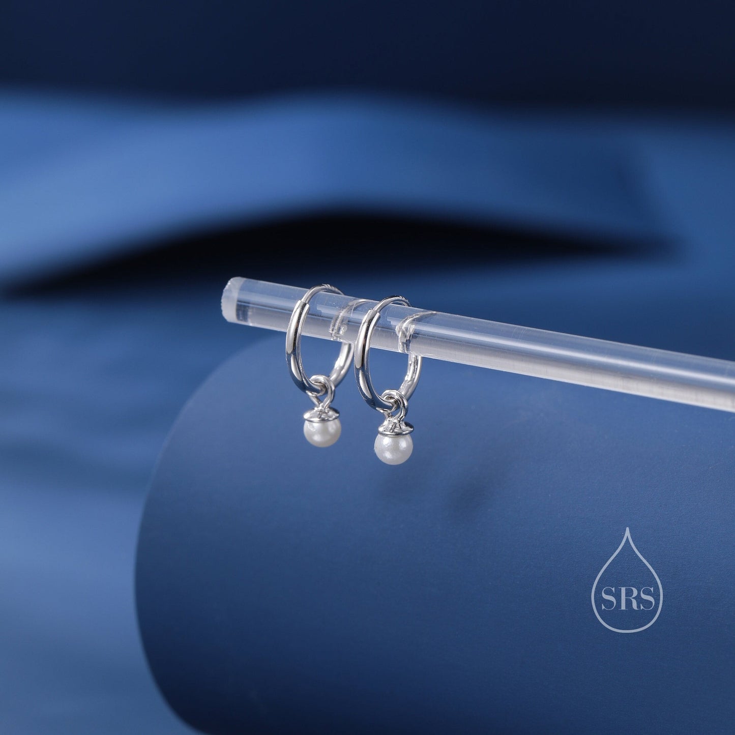 Tiny Mother of Pearl Huggie Hoop Earrings in Sterling Silver with Sleeper Hoops, 8mm Detachable Pearl Dangle Earrings, Gold and Silver,