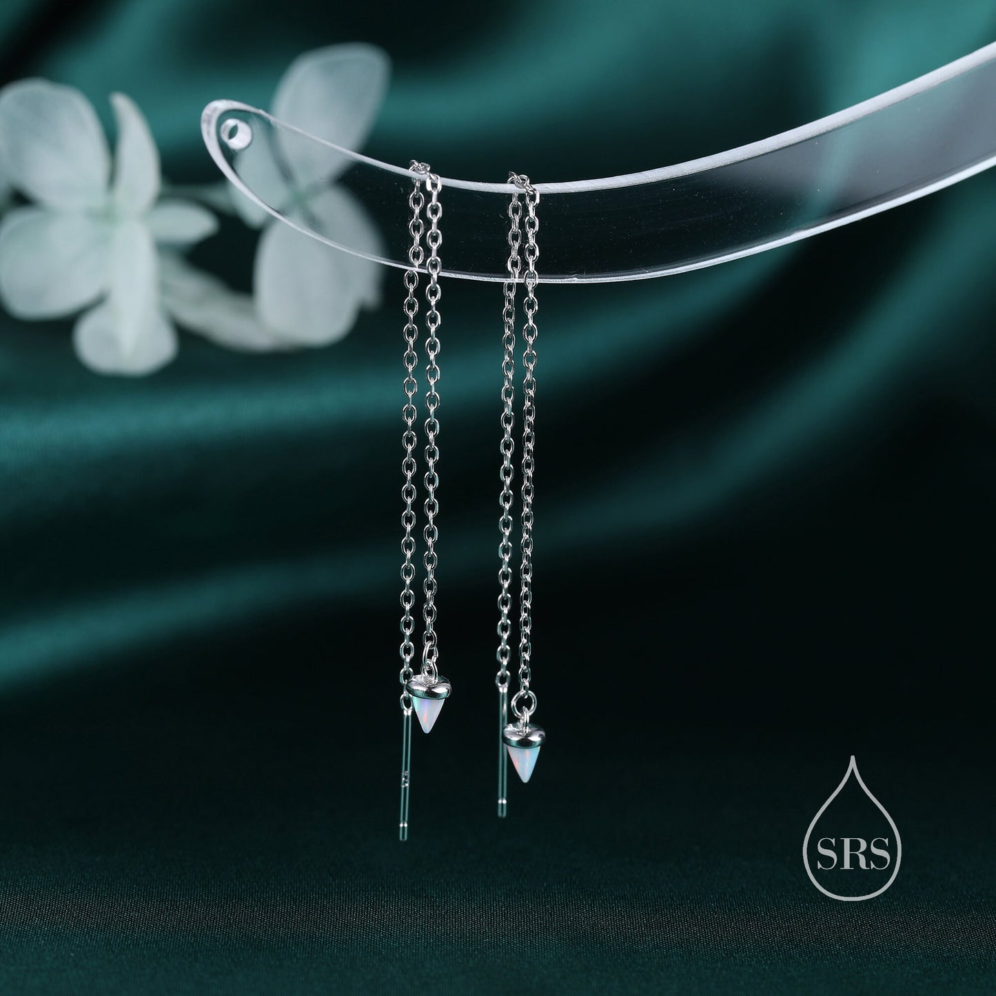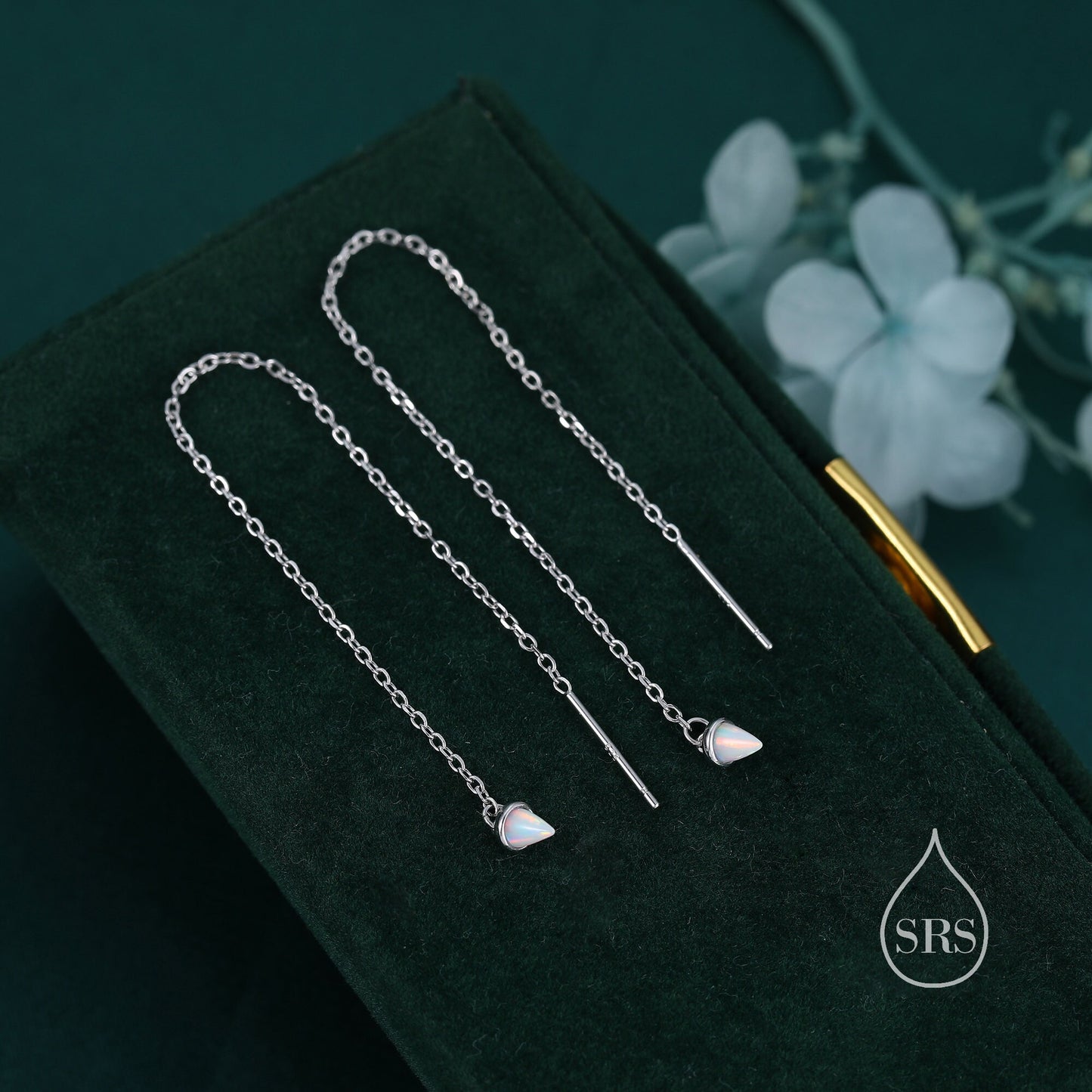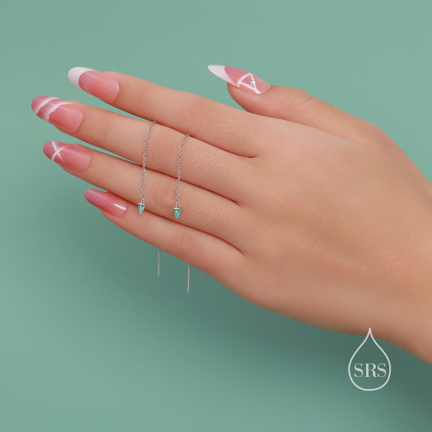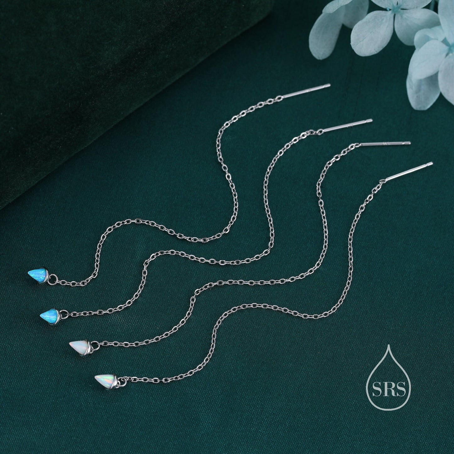 Tiny Opal Spike Threader Earrings in Sterling Silver, Opal Ear Threaders, Opal Earrings, Blue or White Opal, Ear Threaders