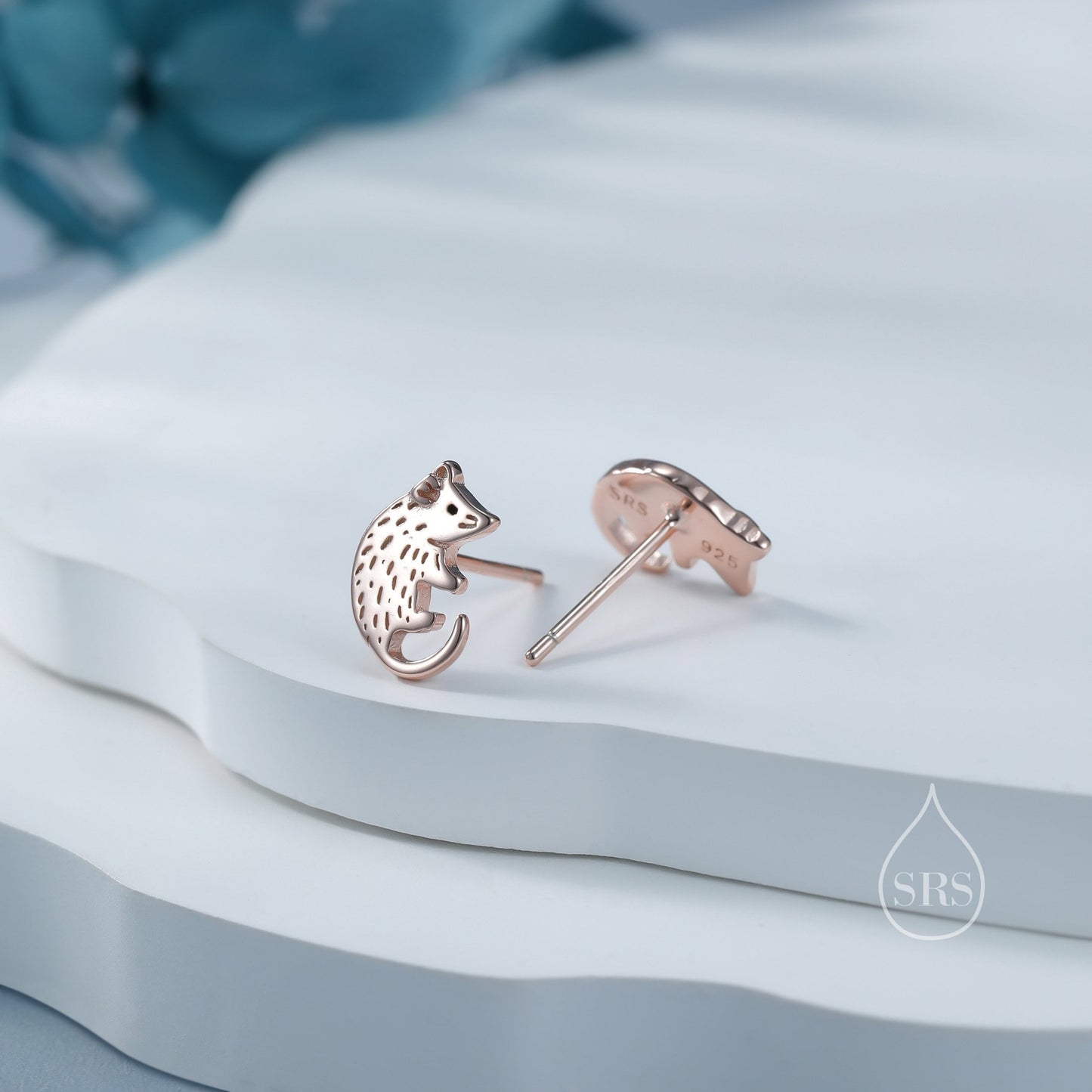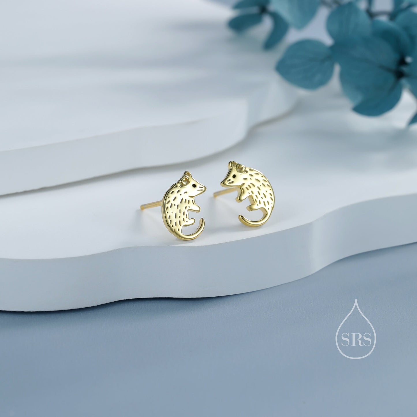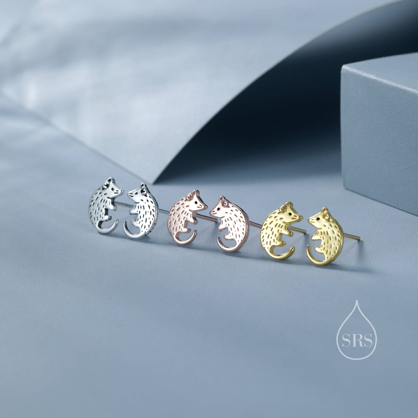 Tiny Opposum Stud Earrings in Sterling Silver, Silver or Gold or Rose Gold, Cute Opposum Mouse Earrings, Silver Rodent Earrings