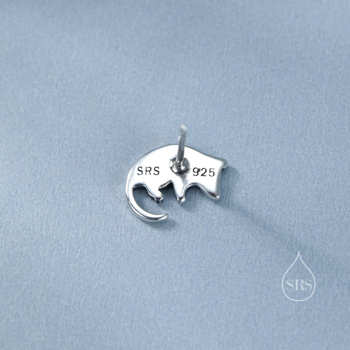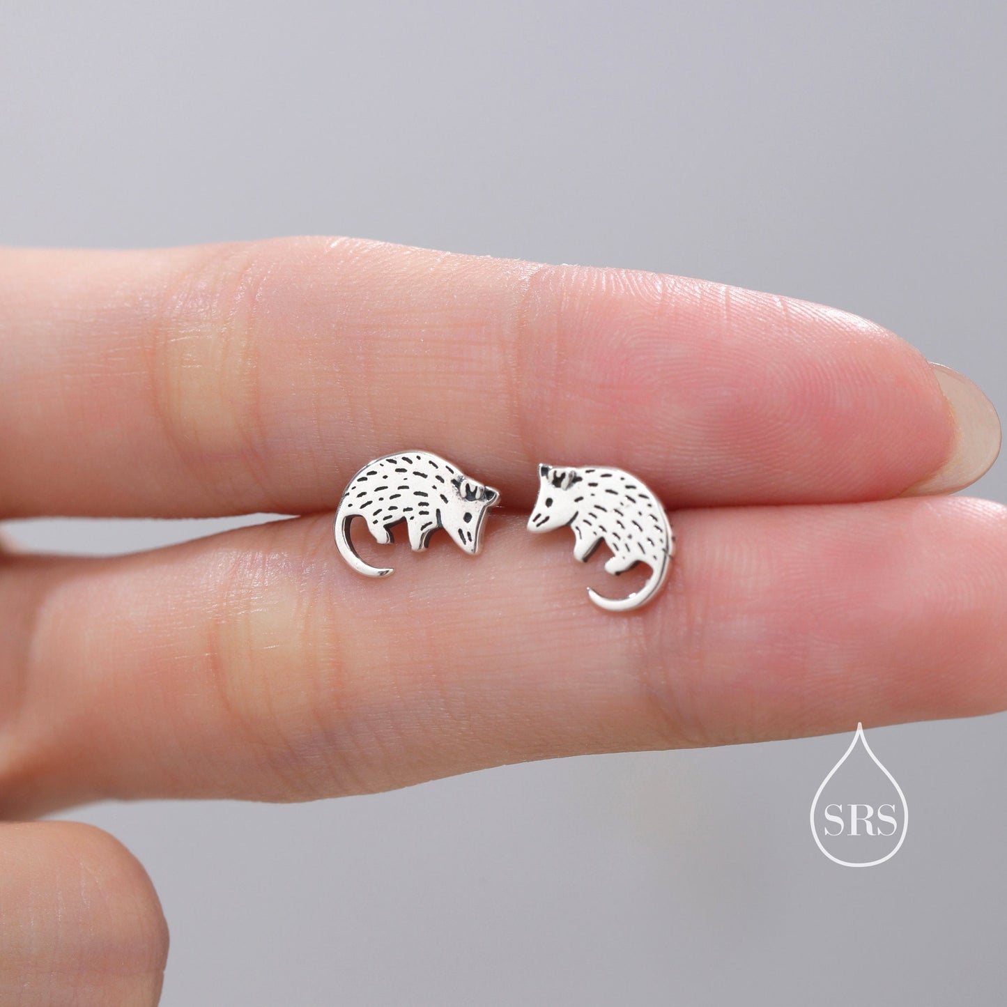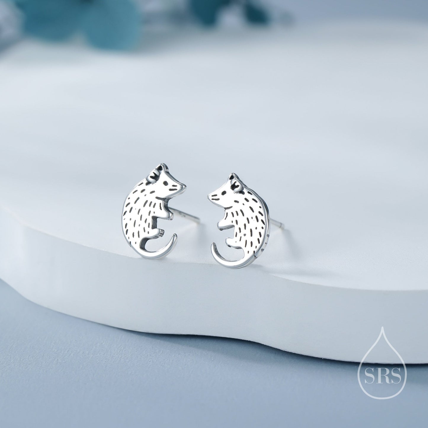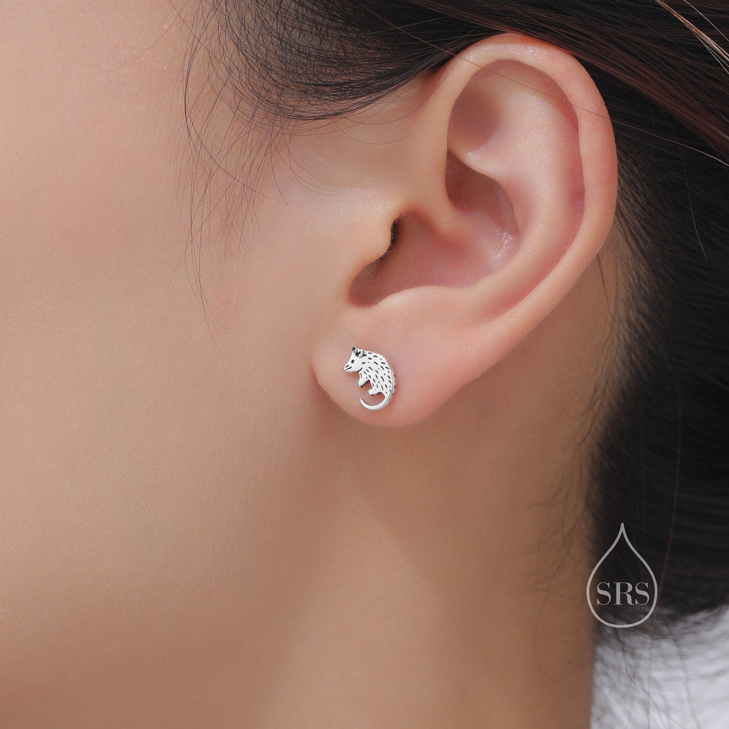 Tiny Opposum Stud Earrings in Sterling Silver, Silver or Gold or Rose Gold, Cute Opposum Mouse Earrings, Silver Rodent Earrings