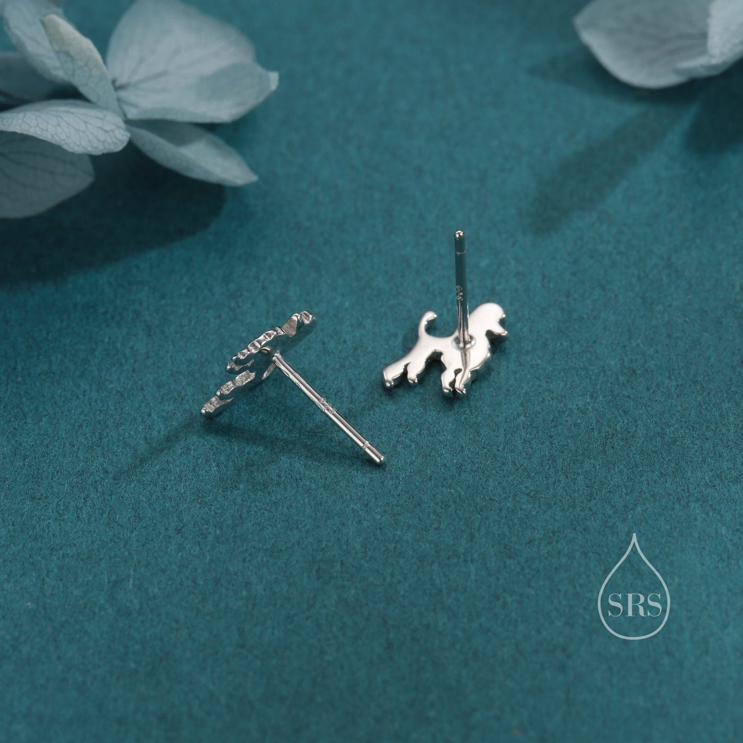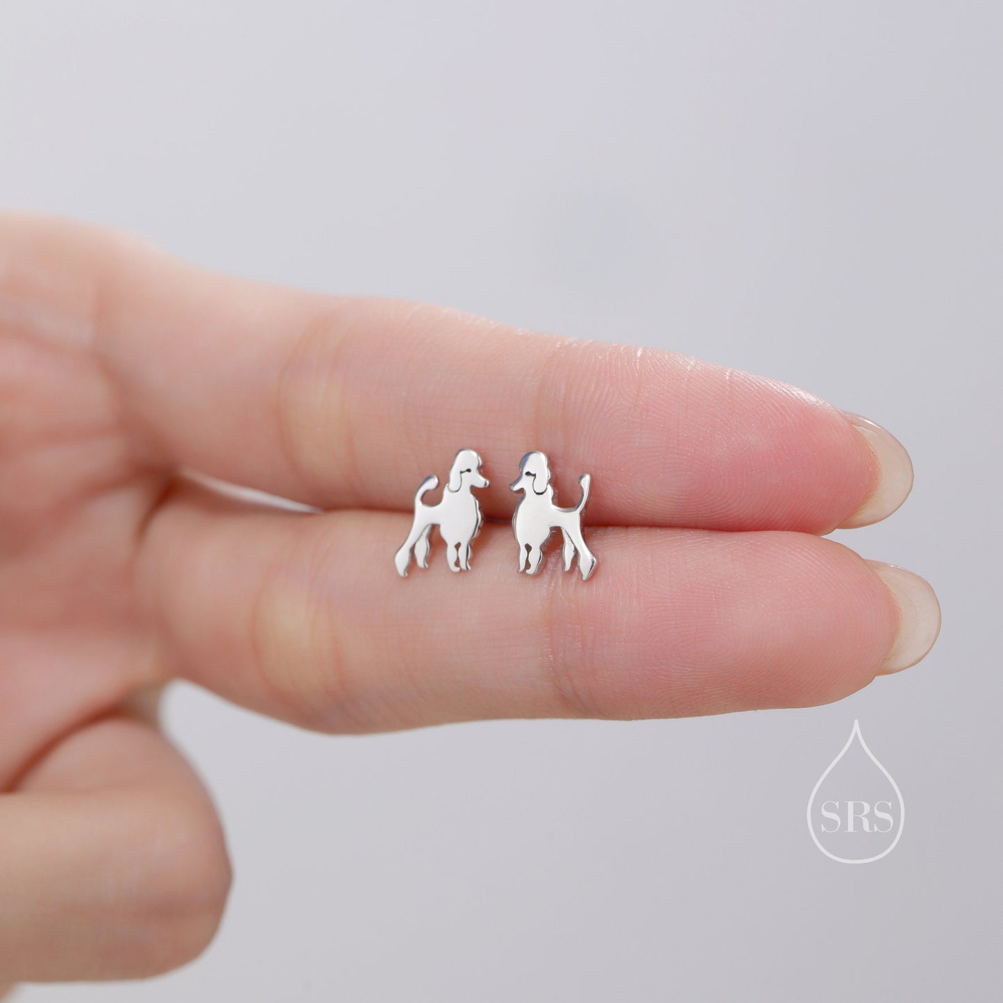 Tiny Poodle Dog Stud Earrings in Sterling Silver, Puppy Earrings, Silver, Gold or Rose Gold, Nature Inspired Animal Earrings, Pet Jewellery