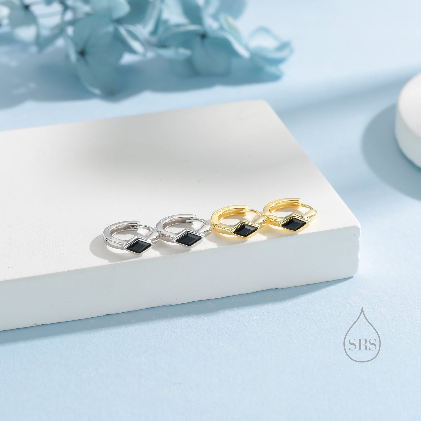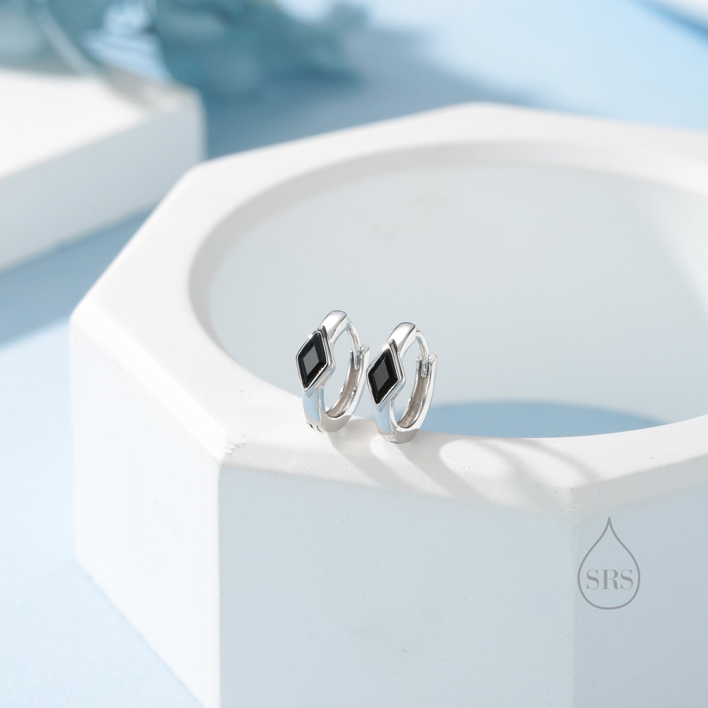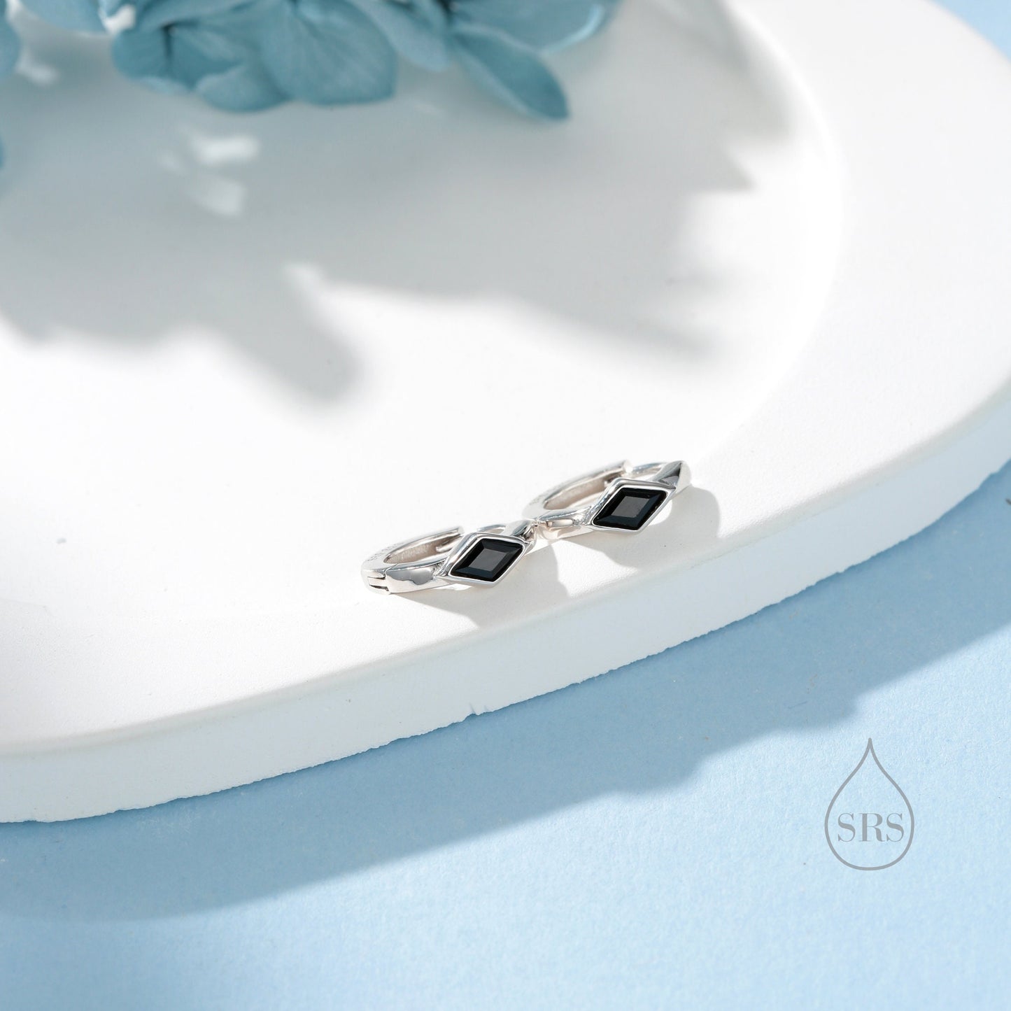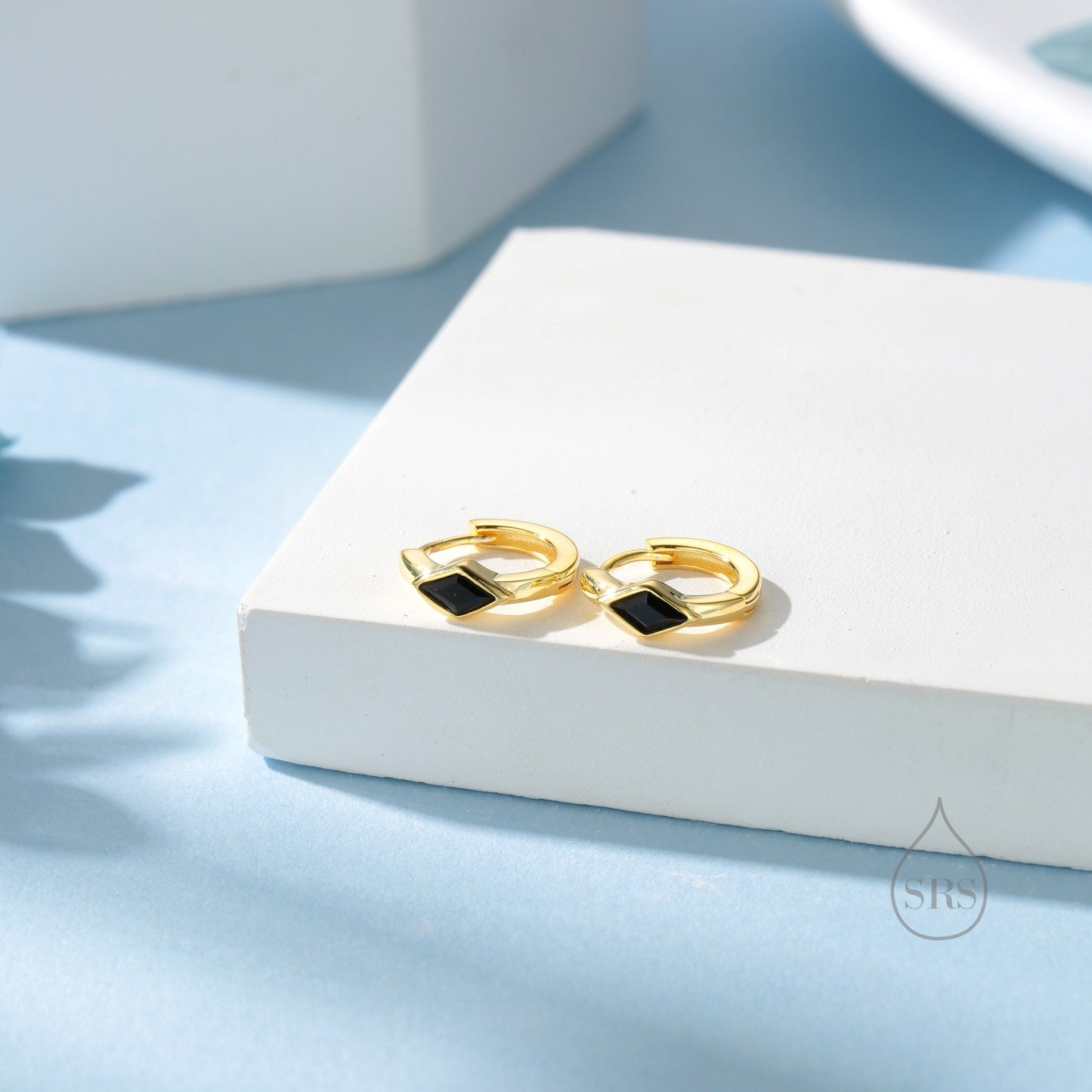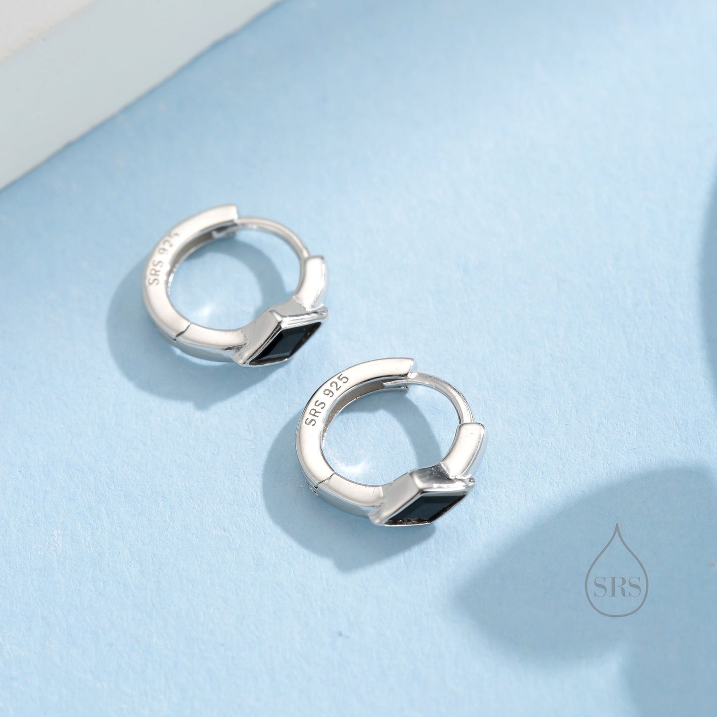 Tiny Rhombus Onyx Black CZ Huggie Hoop in Sterling Silver, Silver or Gold, Minimalist Simple Kite Shape CZ Hoop Earrings
