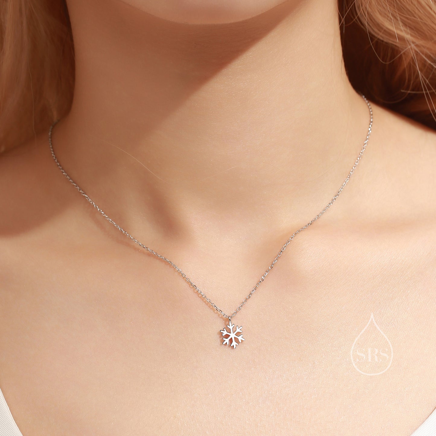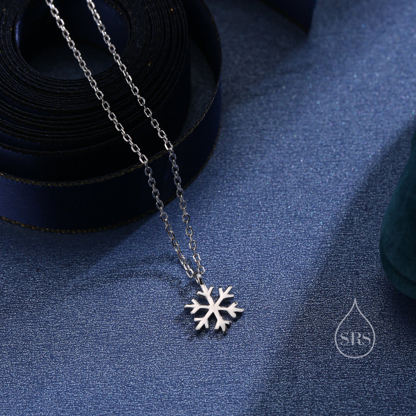 Tiny Snowflake Pendant Necklace in Sterling Silver, Cute Snowflake Necklace, Silver Snow Necklace