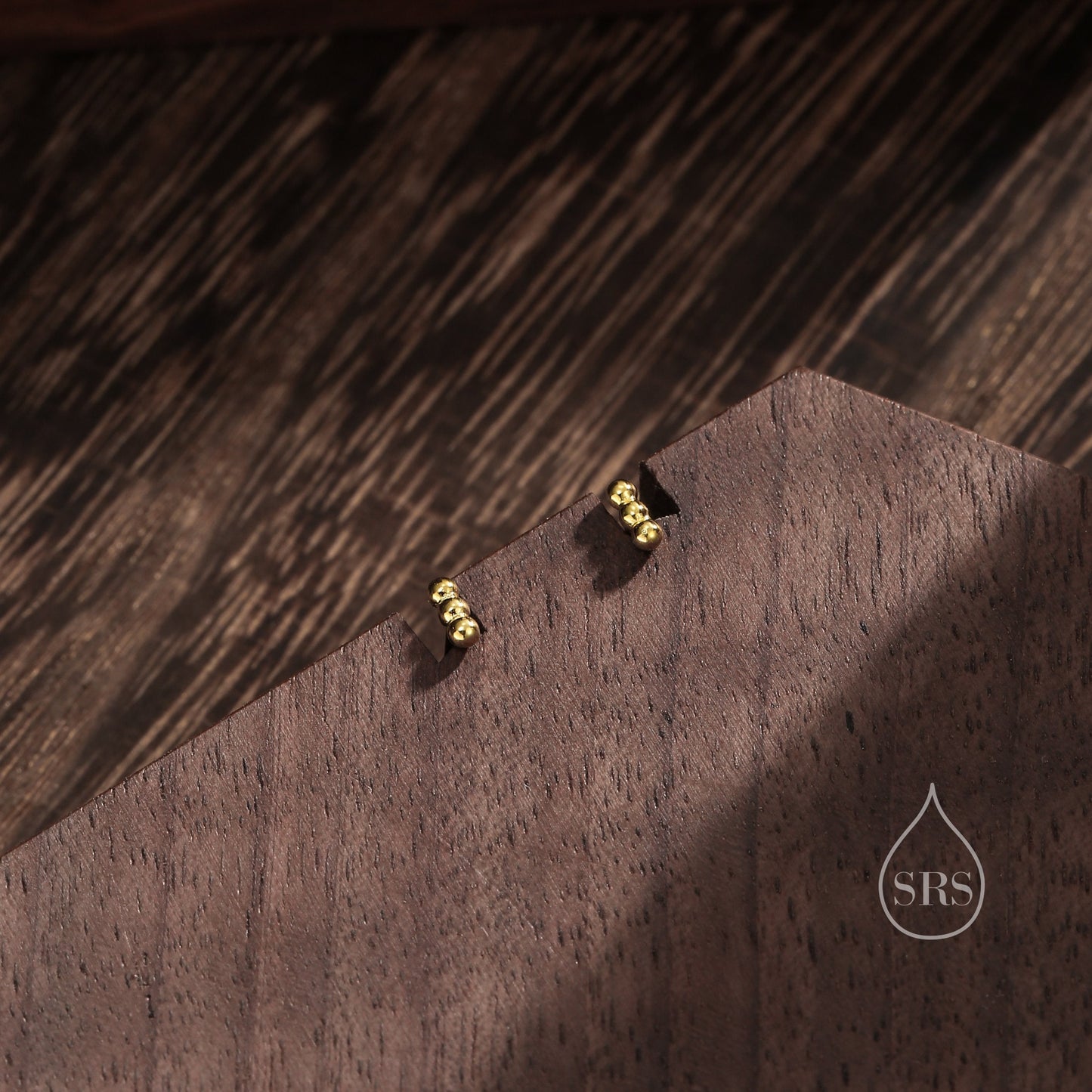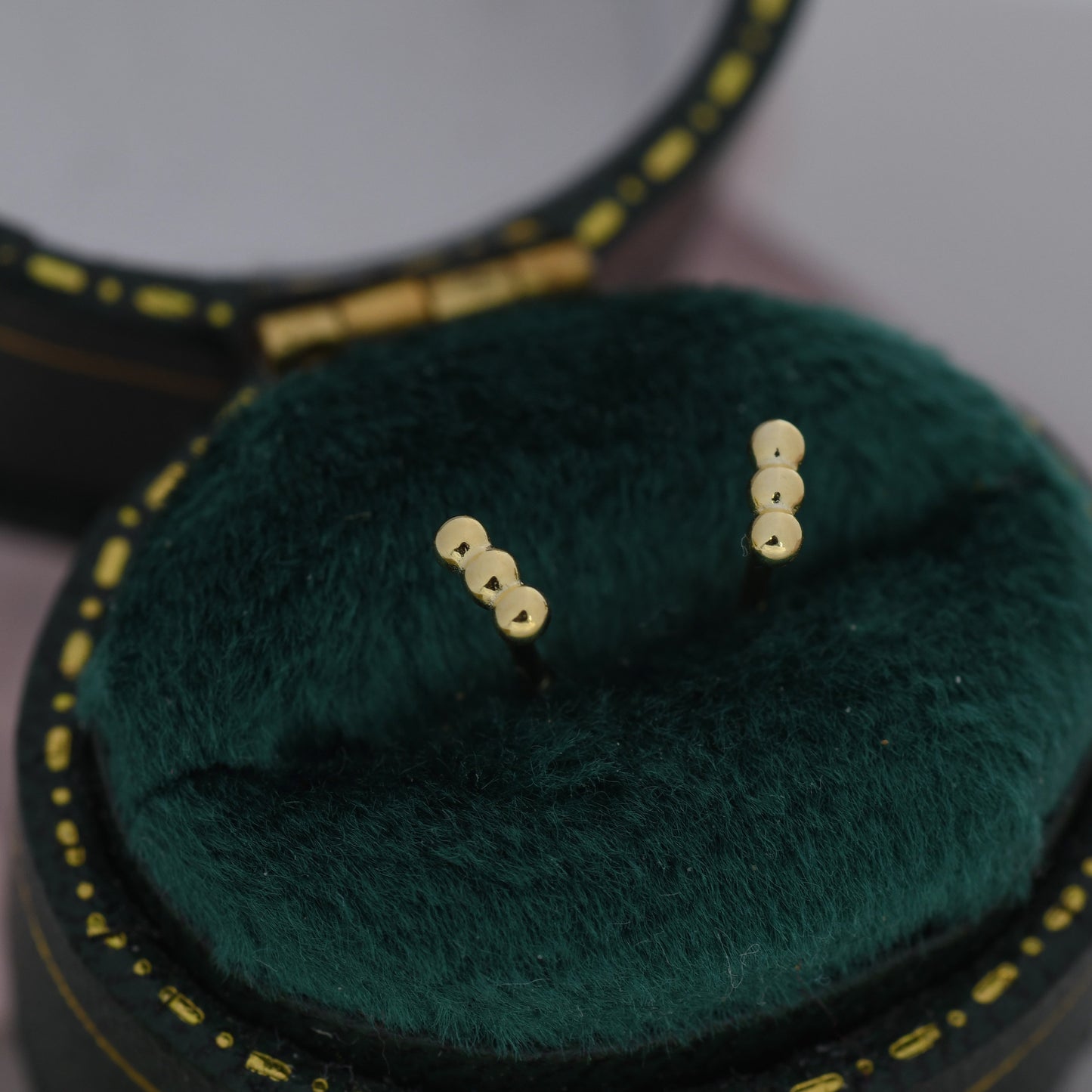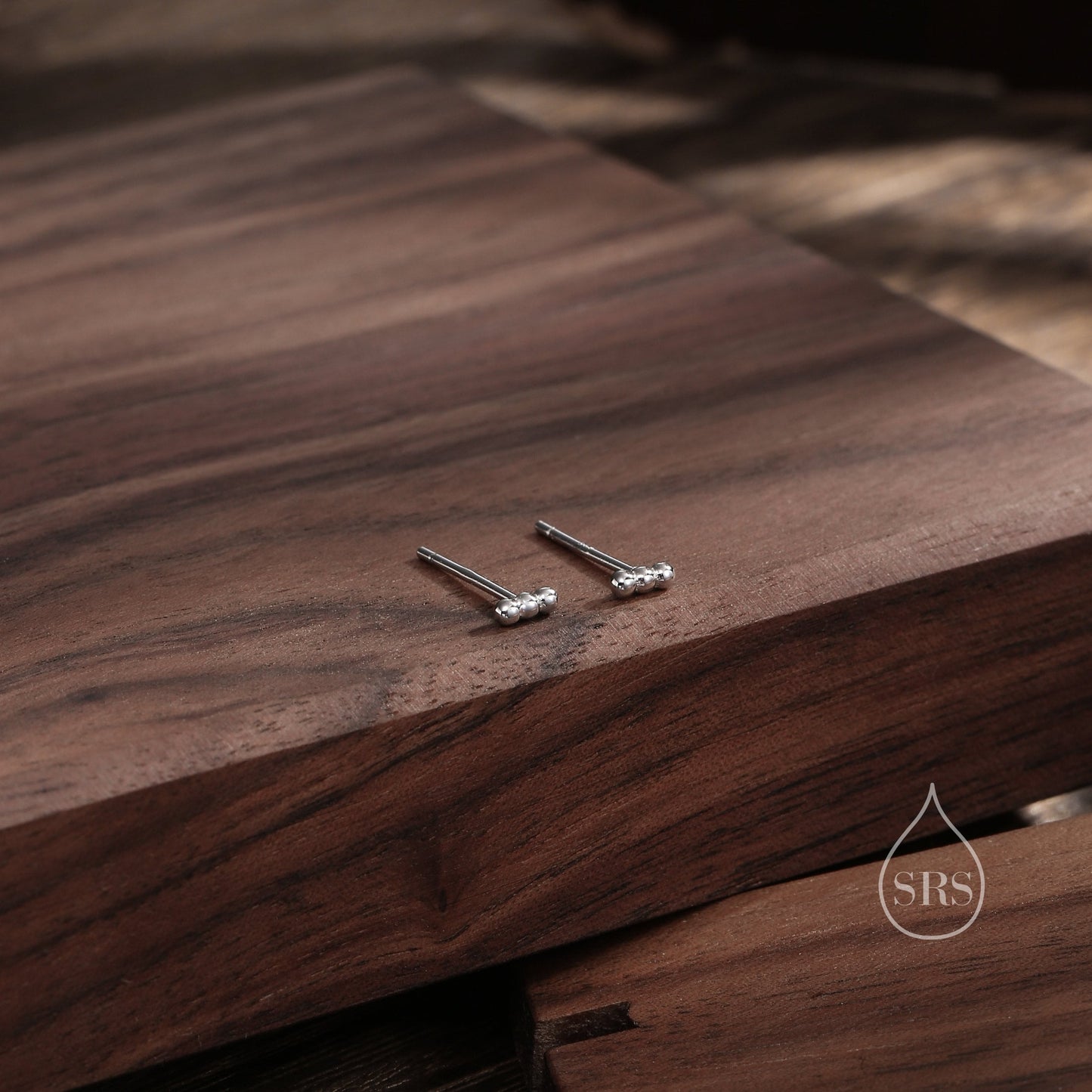 Extra Tiny Three Dot Stud Earrings in Sterling Silver, Tiny Bar Earrings, Beaded Bar, Bauble Earrings, Silver or Gold, Stacking Earrings
