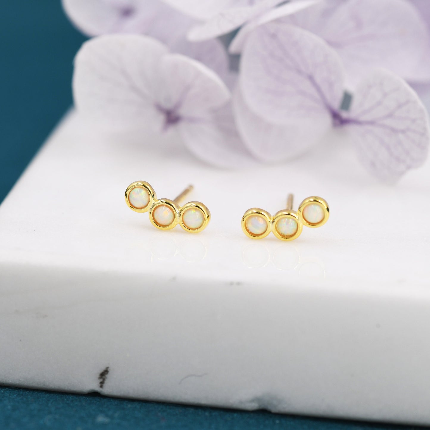 Tiny White Opal Trio Stud Earrings in Sterling Silver, Silver or Gold, Curved Bar Three Opal Earrings, Opal Stud, Small Opal Earrings