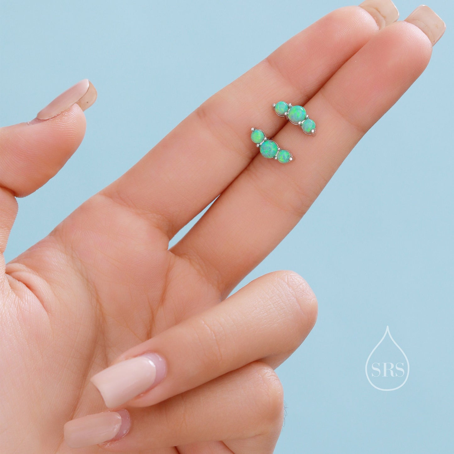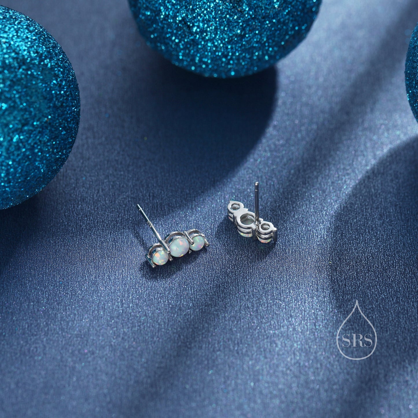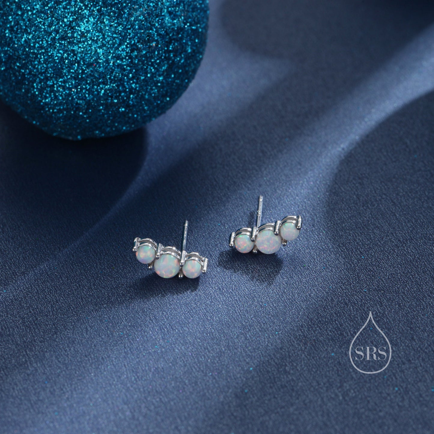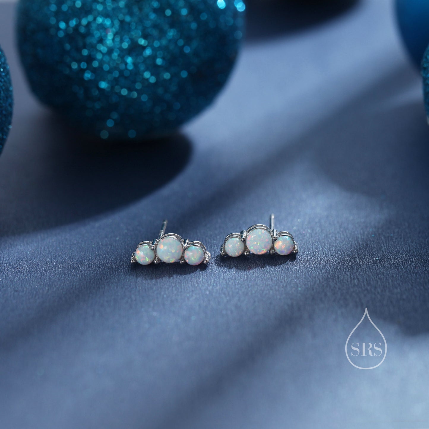 Tiny White Opal Trio Stud Earrings in Sterling Silver, Three Opal Earrings, Opal Stud, Small Opal Earrings