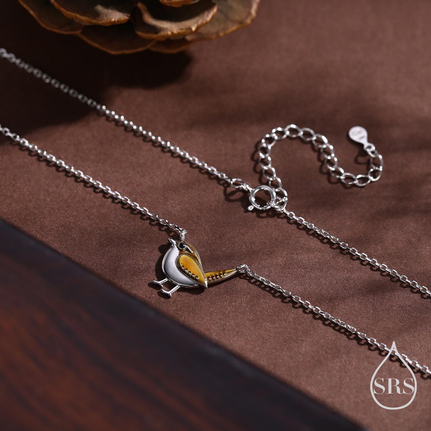 Tiny Wren Bird Pendant Necklace in Sterling Silver, Silver Enamel Wren Bird Necklace, Silver Bird Necklace,