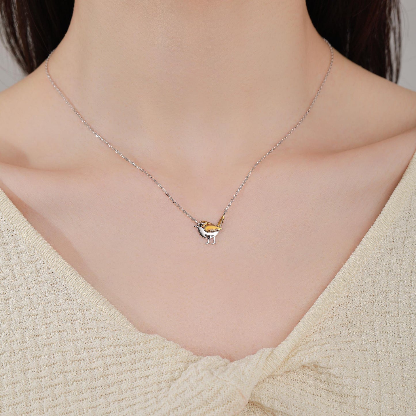 Tiny Wren Bird Pendant Necklace in Sterling Silver, Silver Enamel Wren Bird Necklace, Silver Bird Necklace