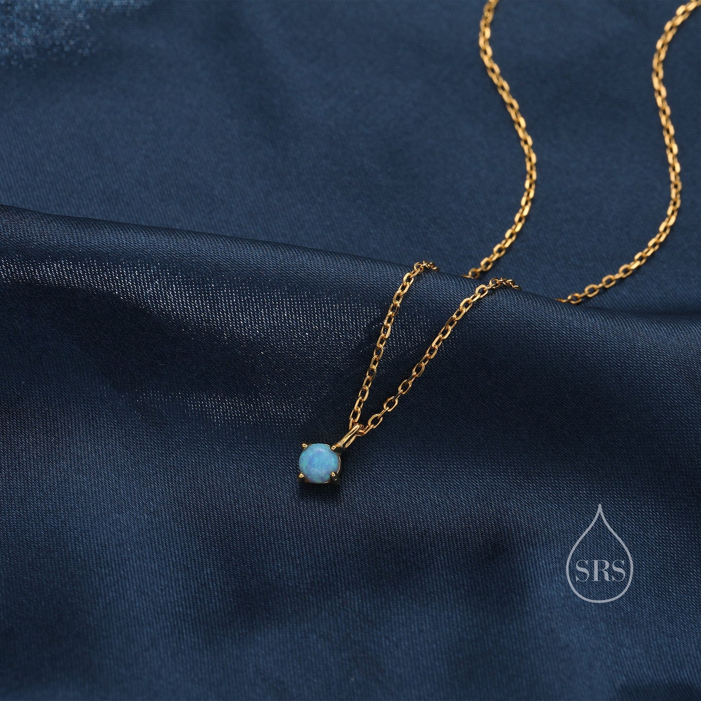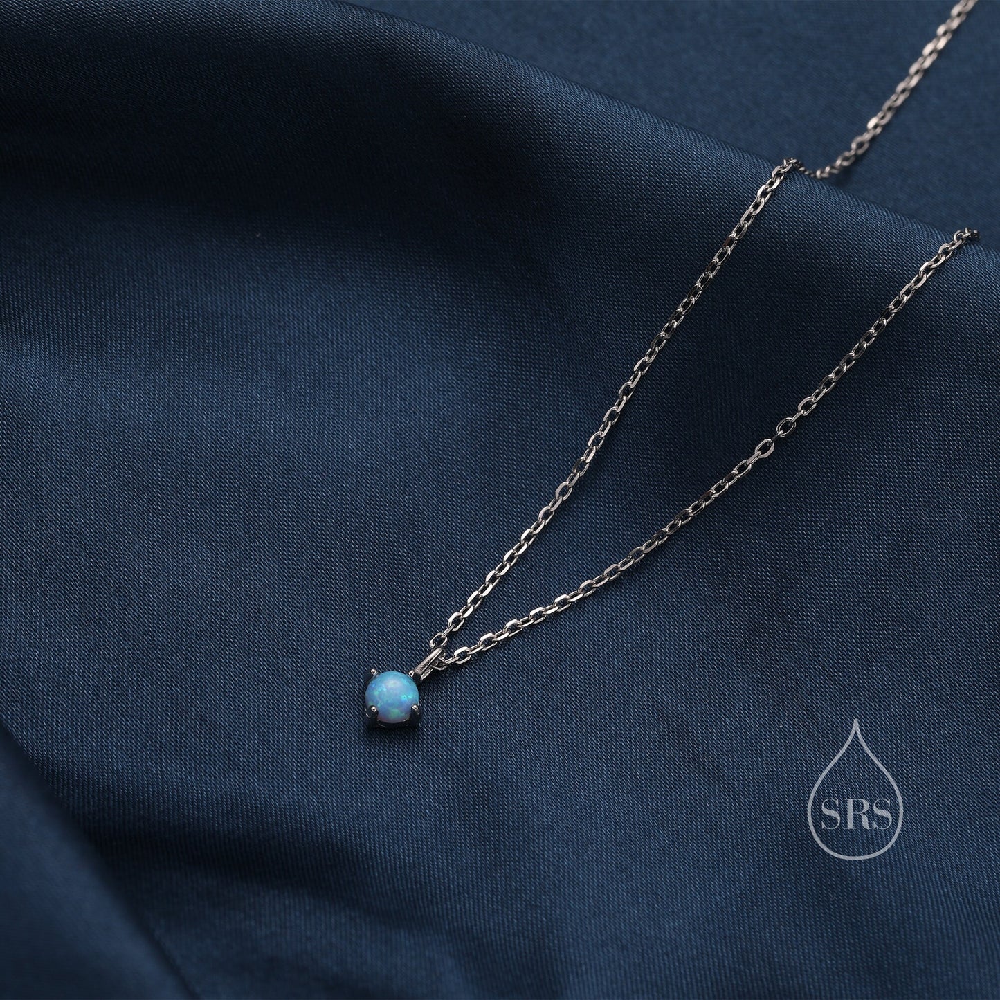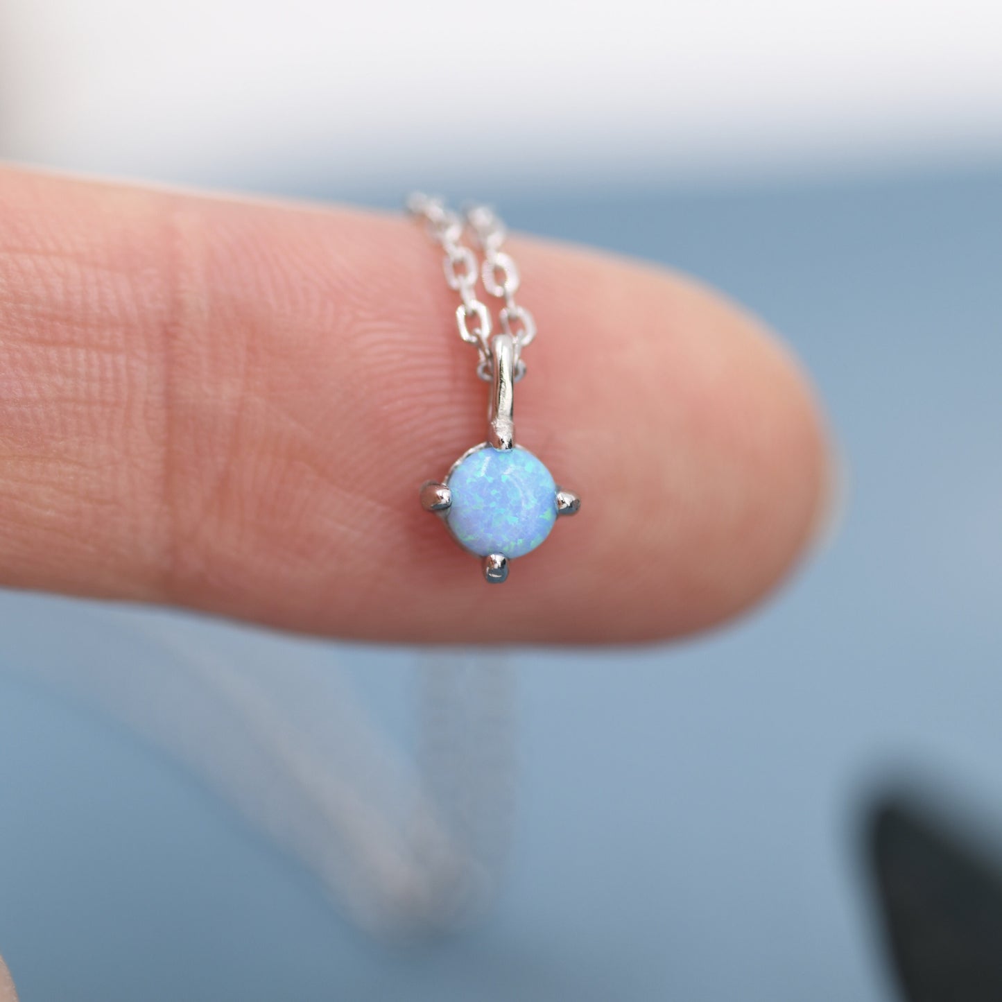 Very Small Blue Opal Pendant Necklace in Sterling Silver, Silver or Gold, 5mm Lab Opal Necklace, Single Opal Necklace, Fire Opal Necklace