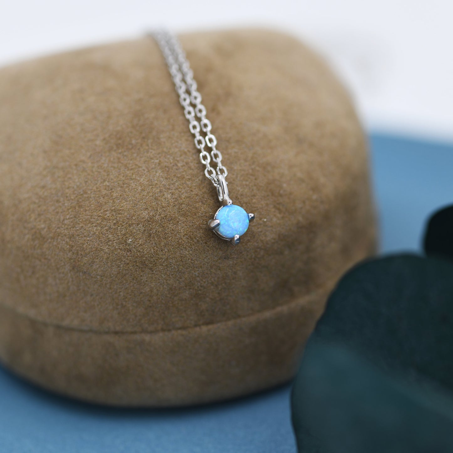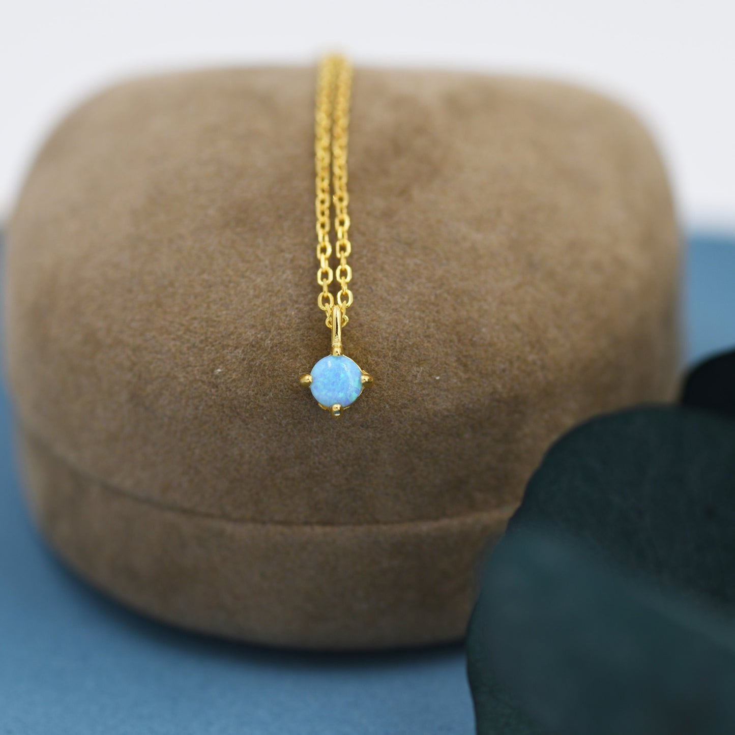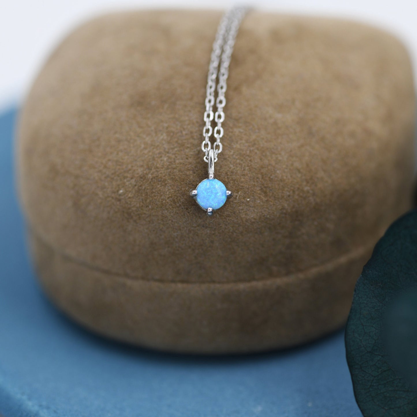 Very Small Blue Opal Pendant Necklace in Sterling Silver, Silver or Gold, 5mm Lab Opal Necklace, Single Opal Necklace, Fire Opal Necklace