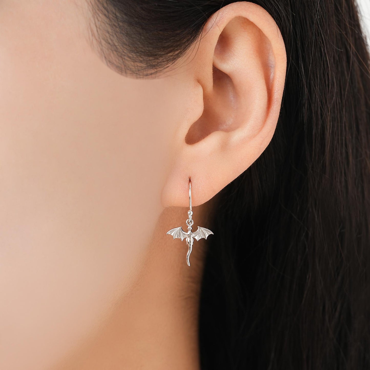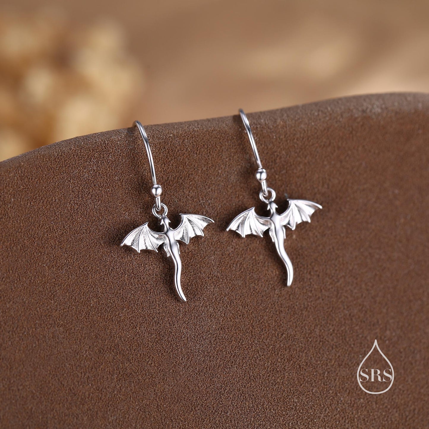Very Tiny Dragon Drop Hook Earrings in Sterling Silver, Silver or Gold or Rose Gold, Sterling Silver Dragon Dangle Earrings