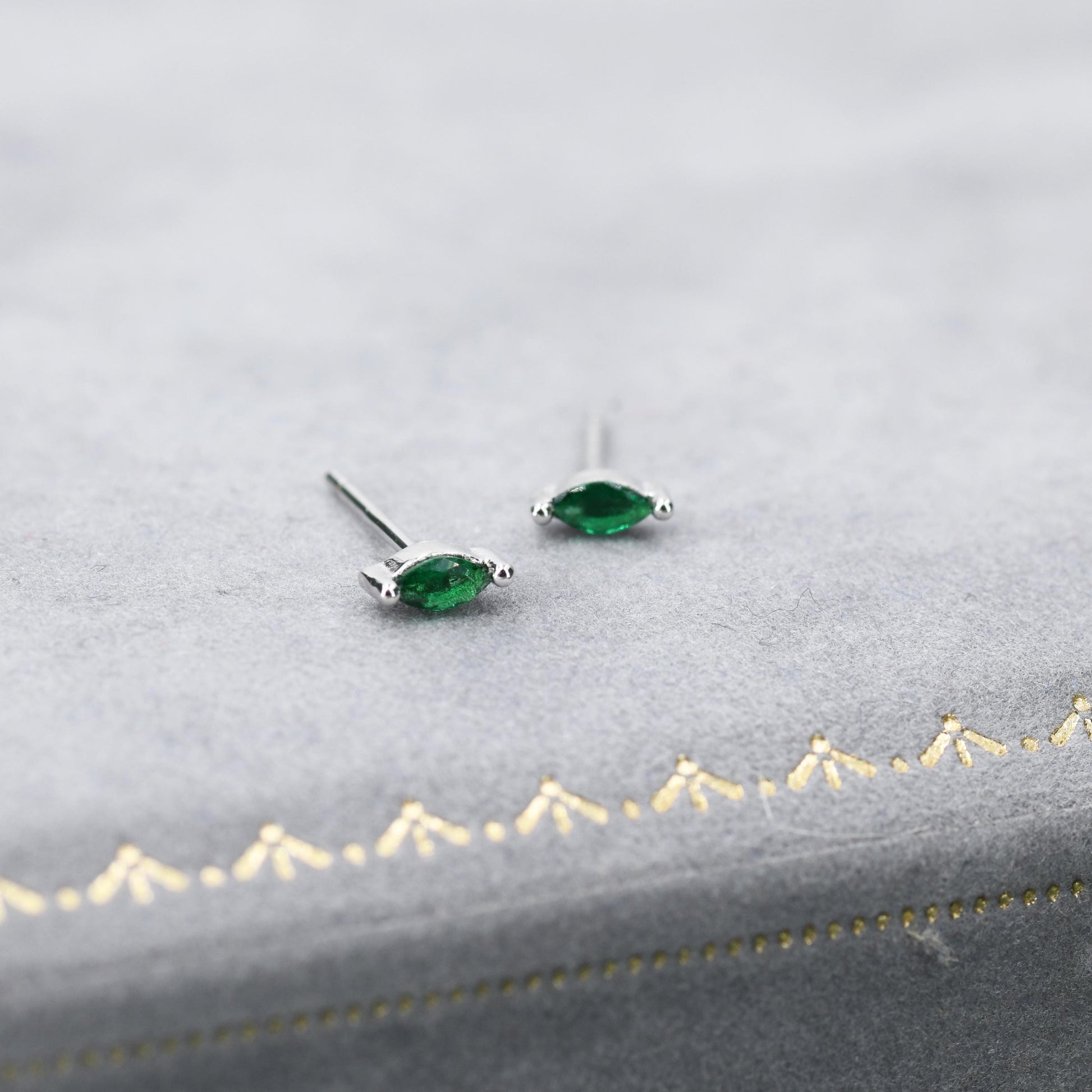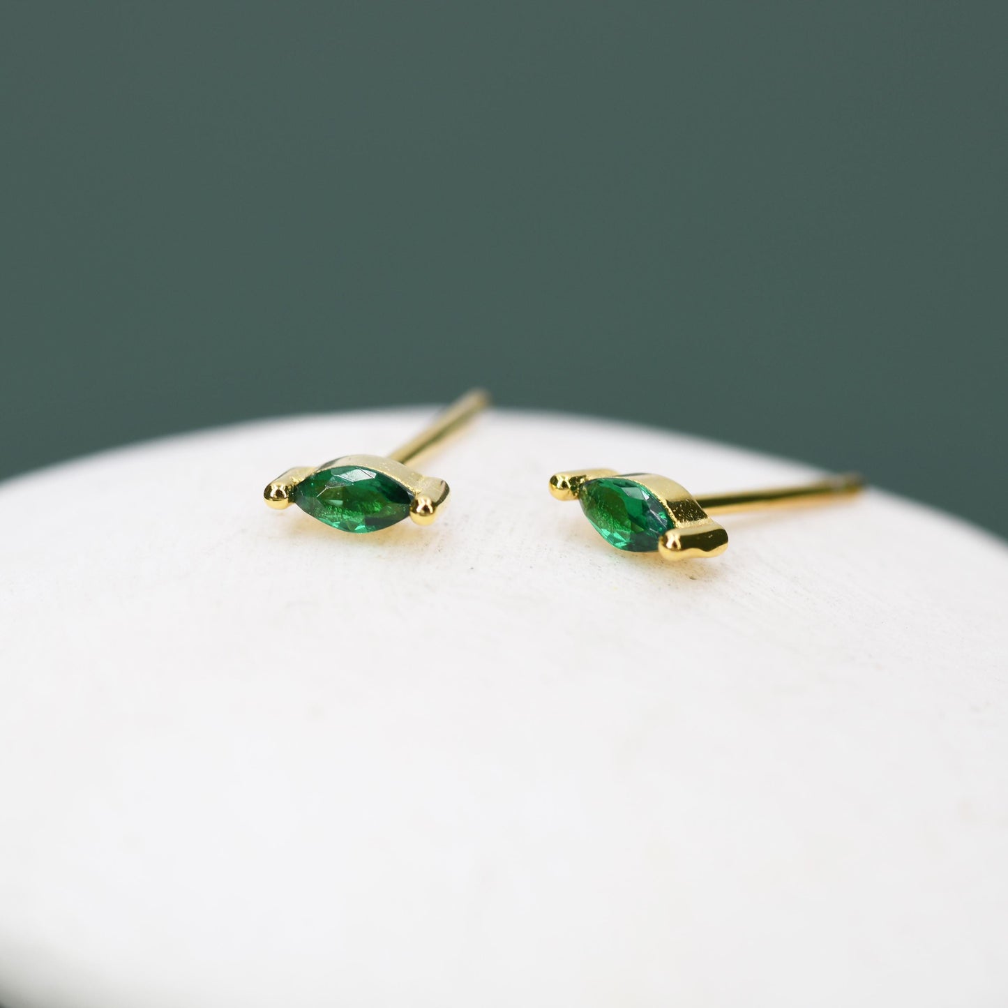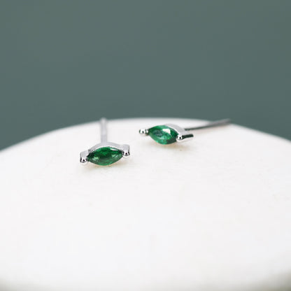 Very Tiny Emerald Green CZ Marquise Screw Back / Stud Earrings in Sterling Silver, Silver or Gold, Stacking Earrings, CZ Barbell Earrings