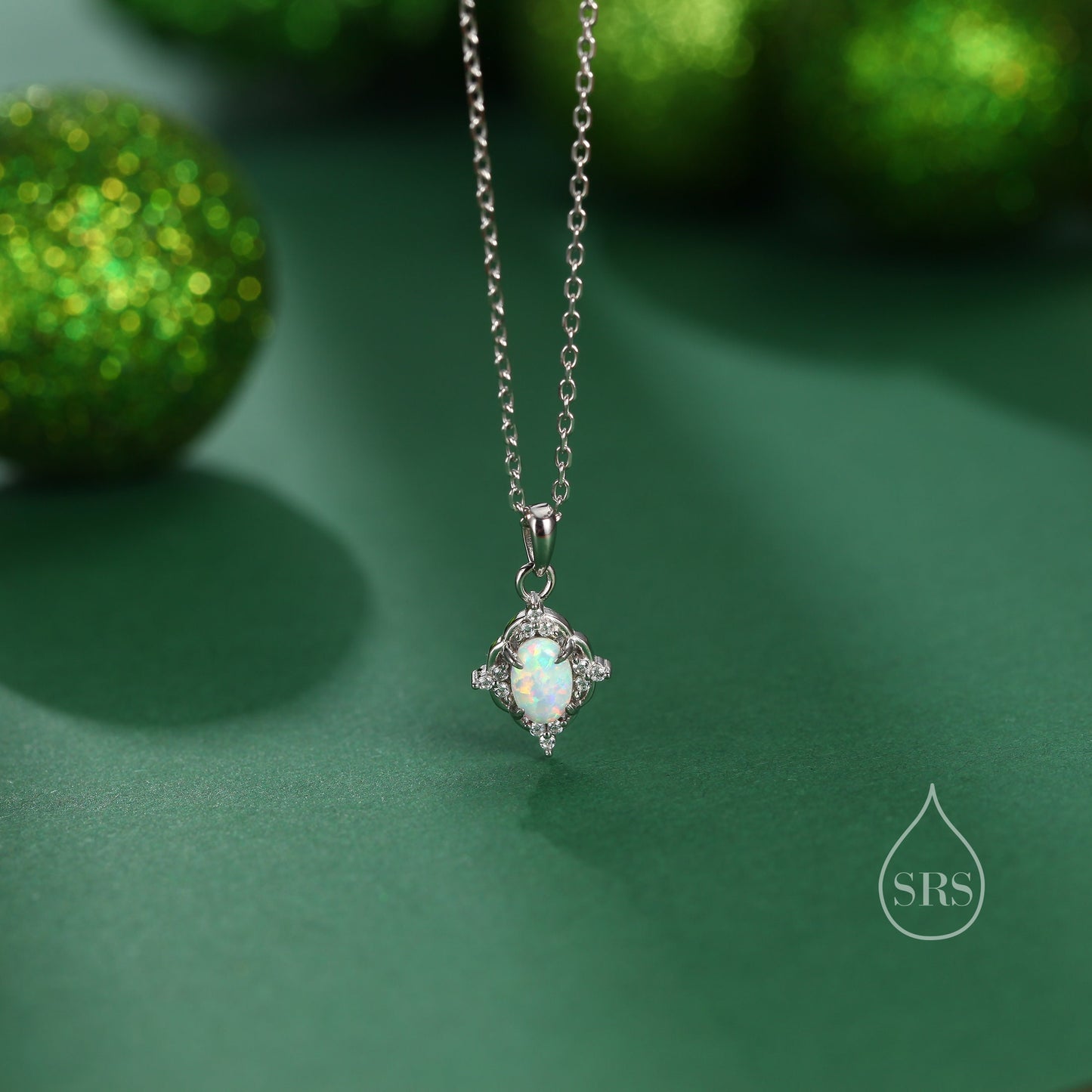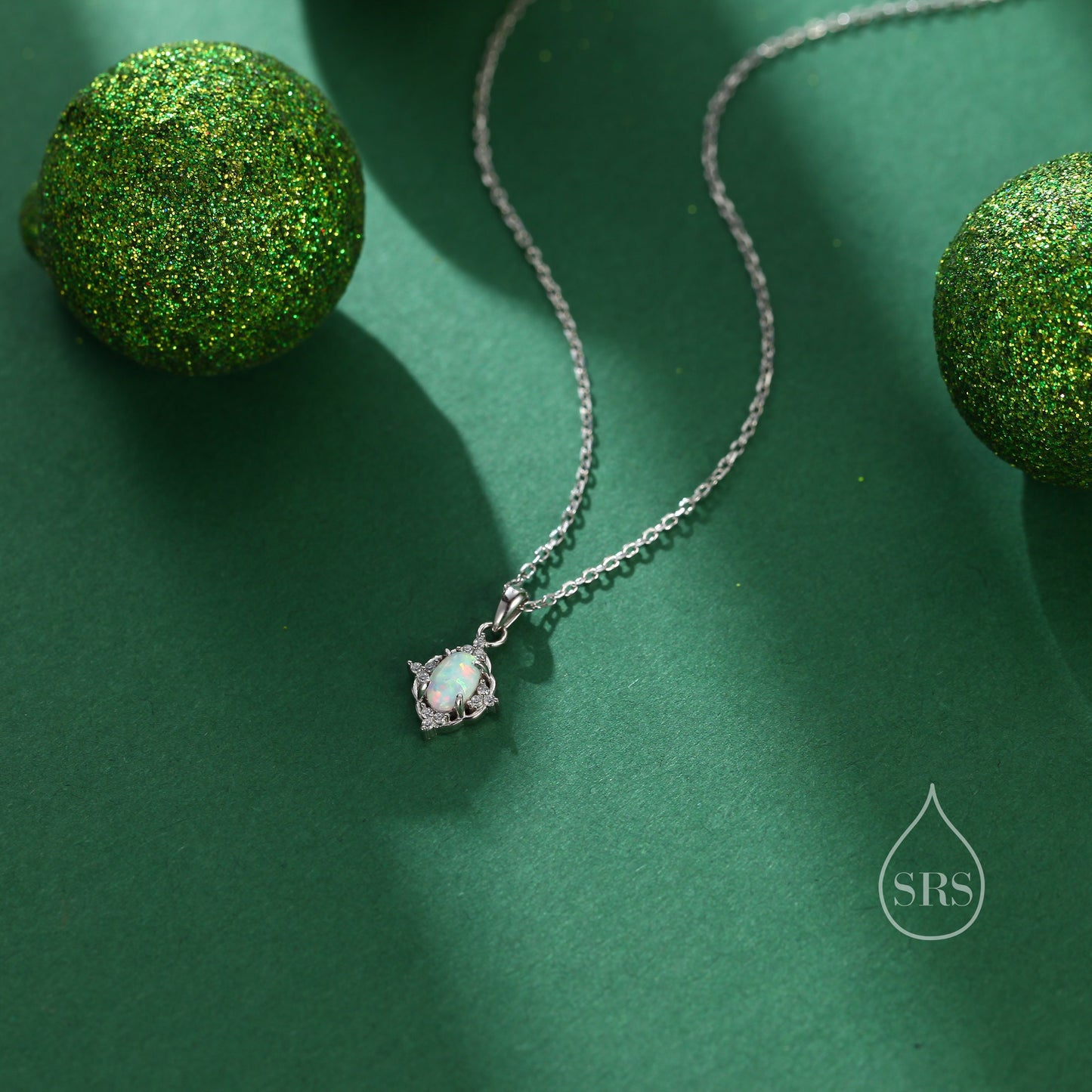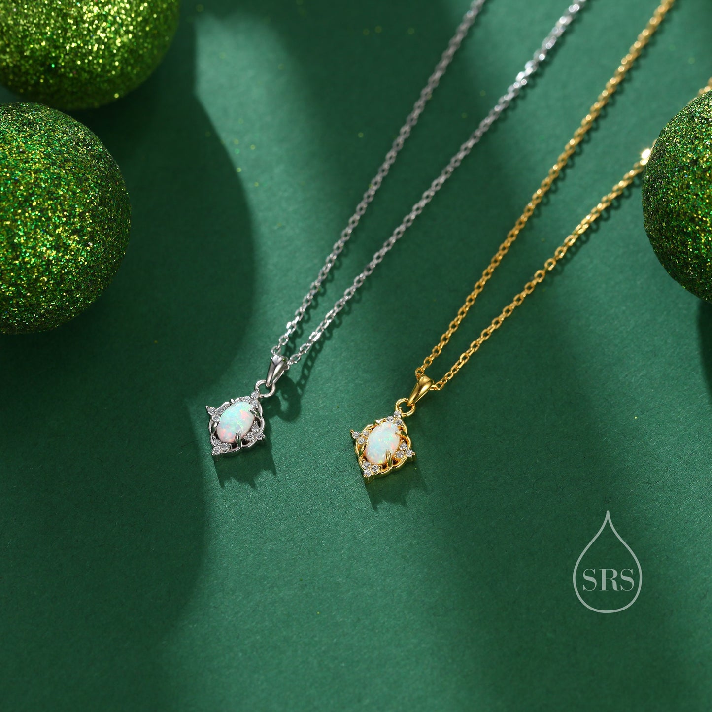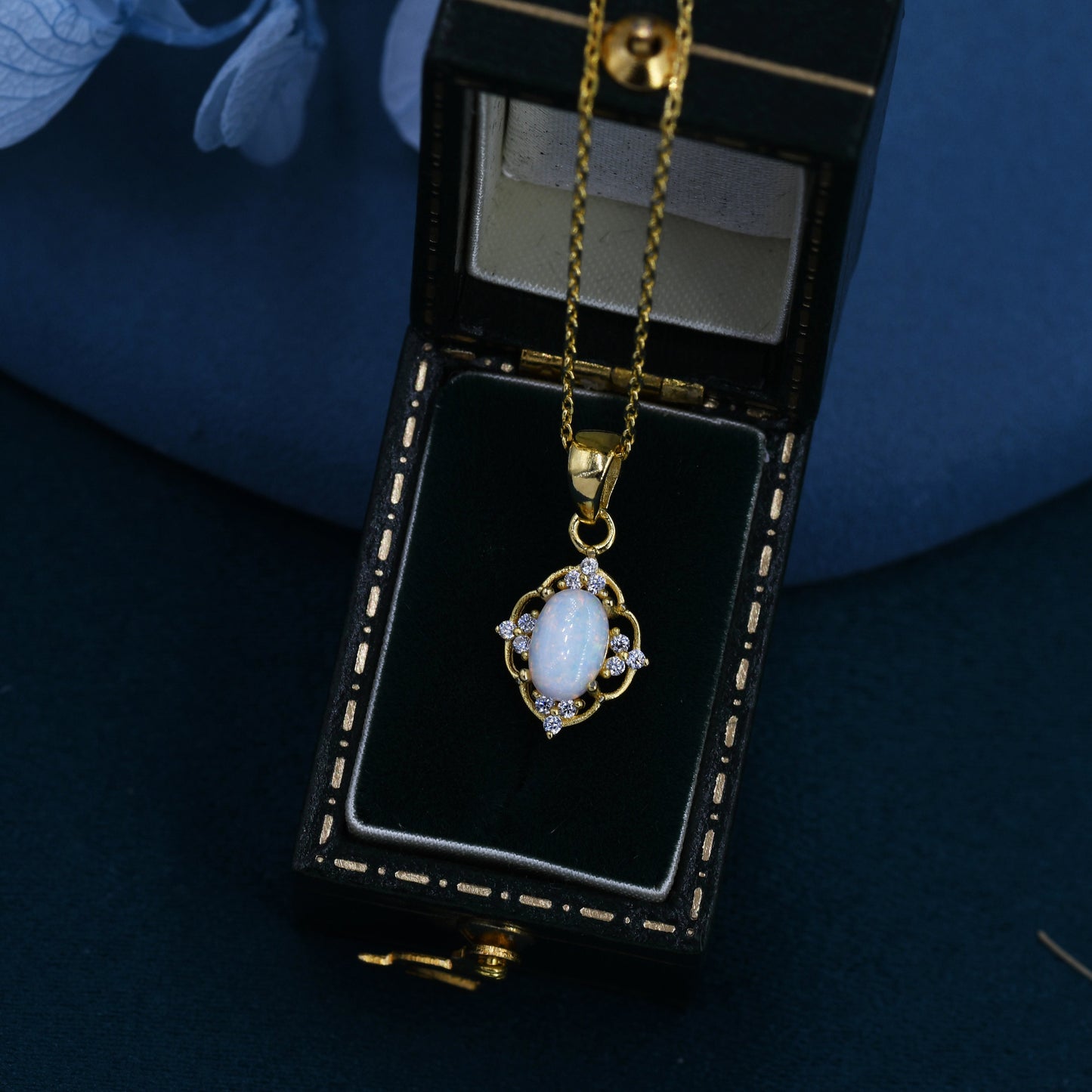 Vintage Style Tiny Opal Pendant Necklace in Sterling Silver, Gold over Sterling Silver, Opal Necklace