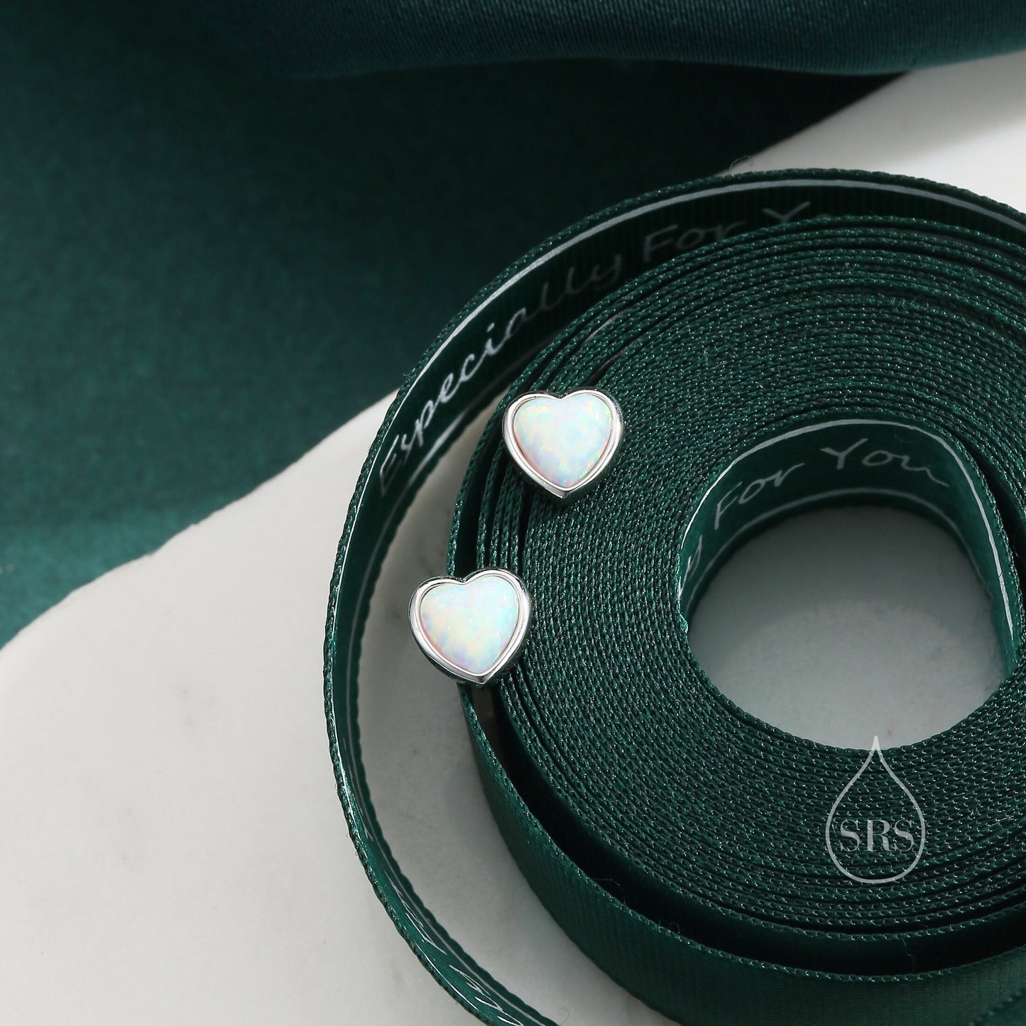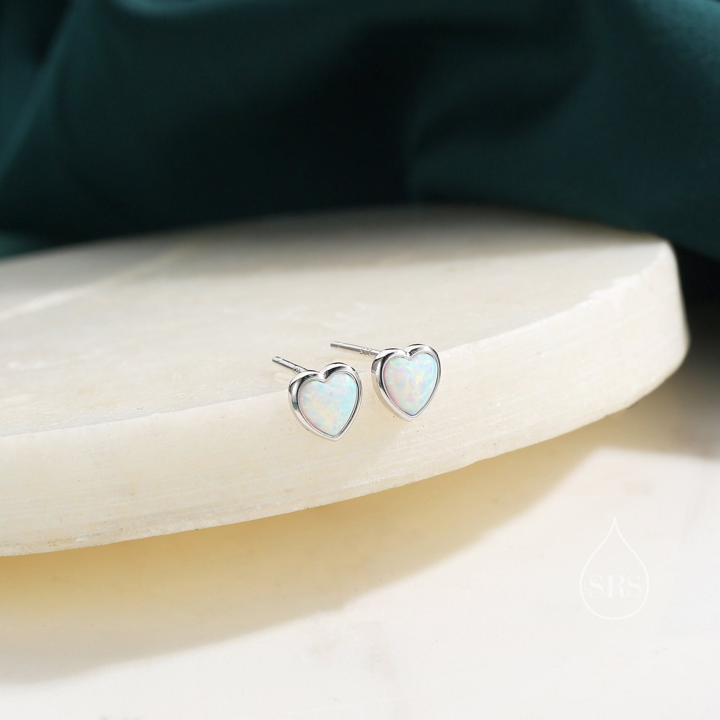 White Opal Heart Stud Earrings in Sterling Silver, Opal Heart Earrings, Silver or Gold, Heart Earrings, Fire Opal Earrings
