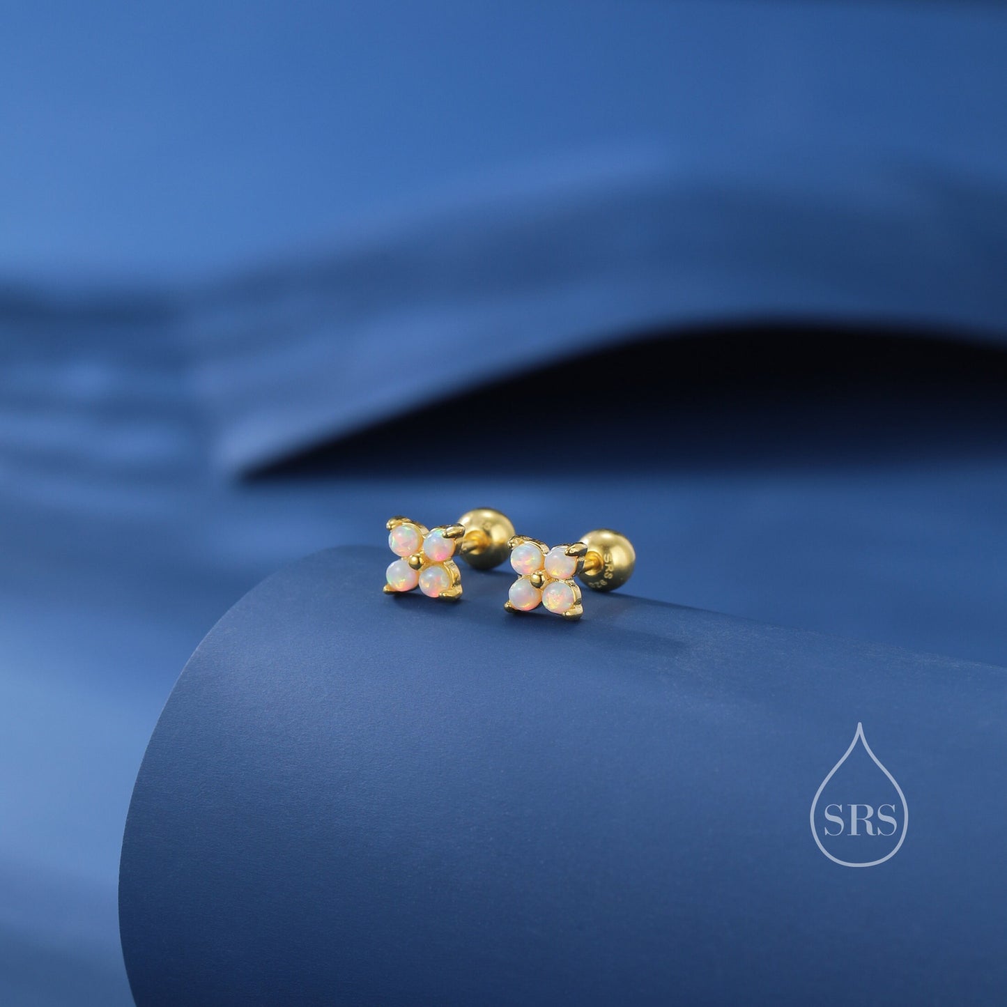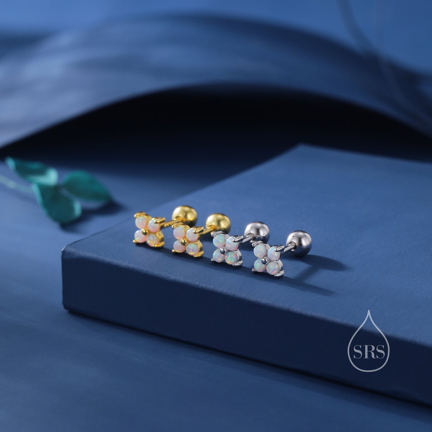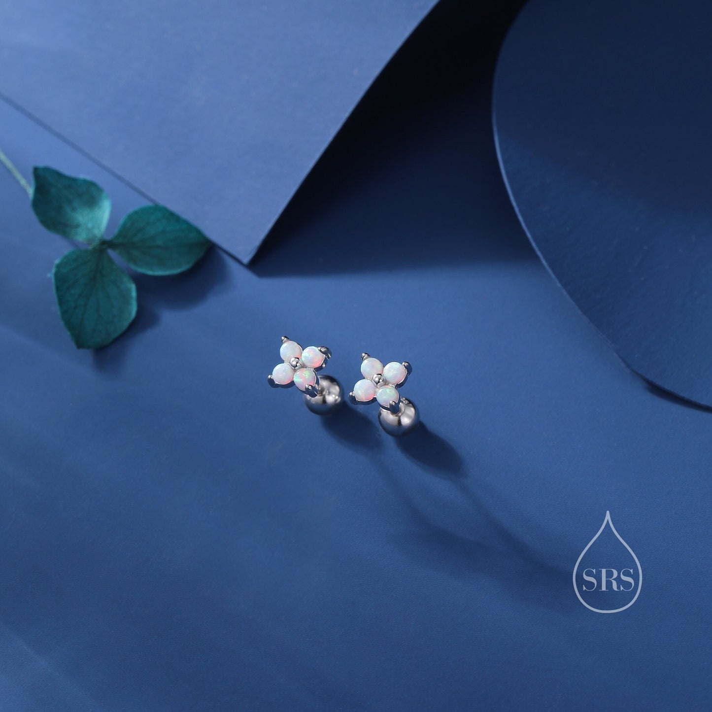 White Opal Hydrangea Stud Earrings in Sterling Silver - Gold or Silver - Opal Flower Earrings, Four Fire Opal Stud