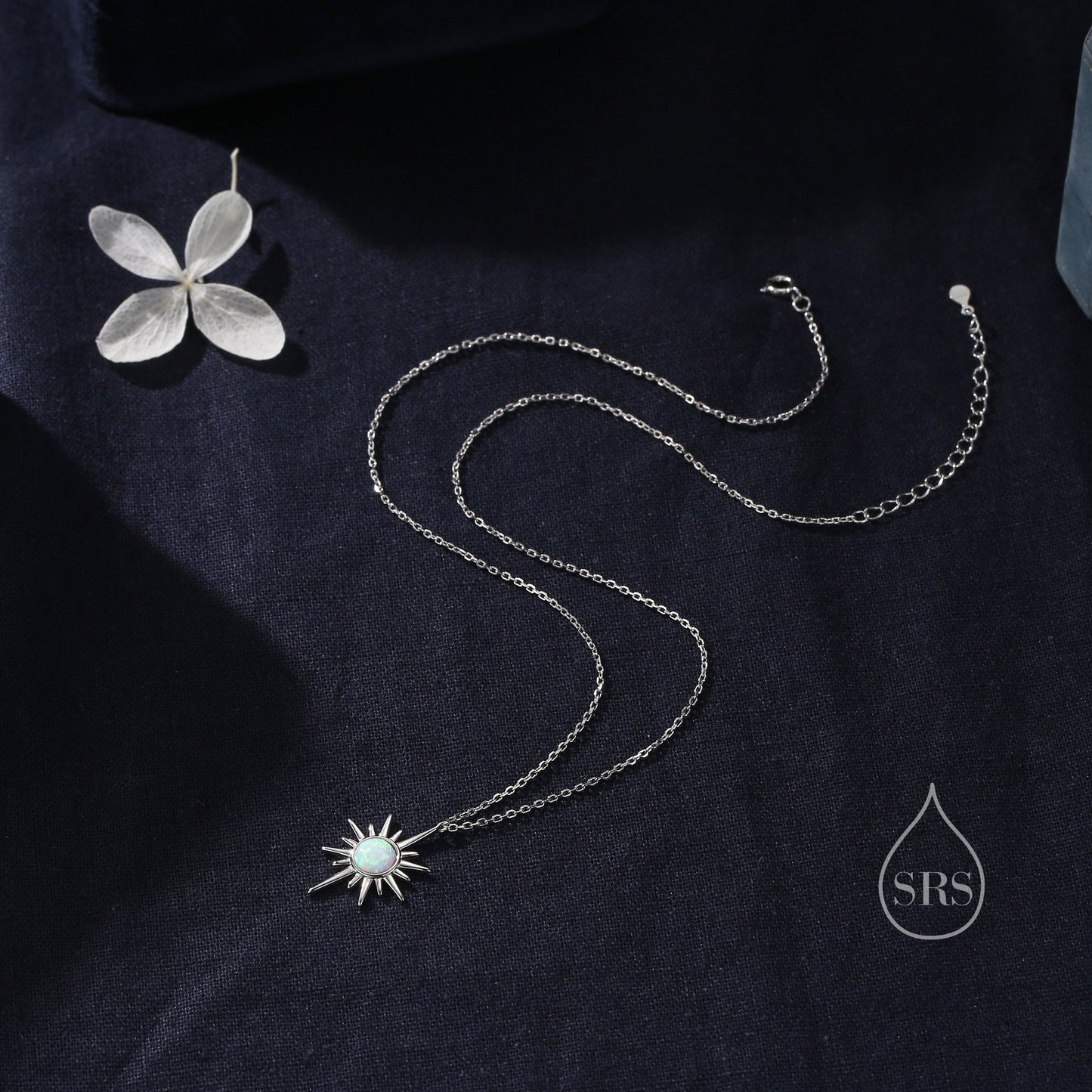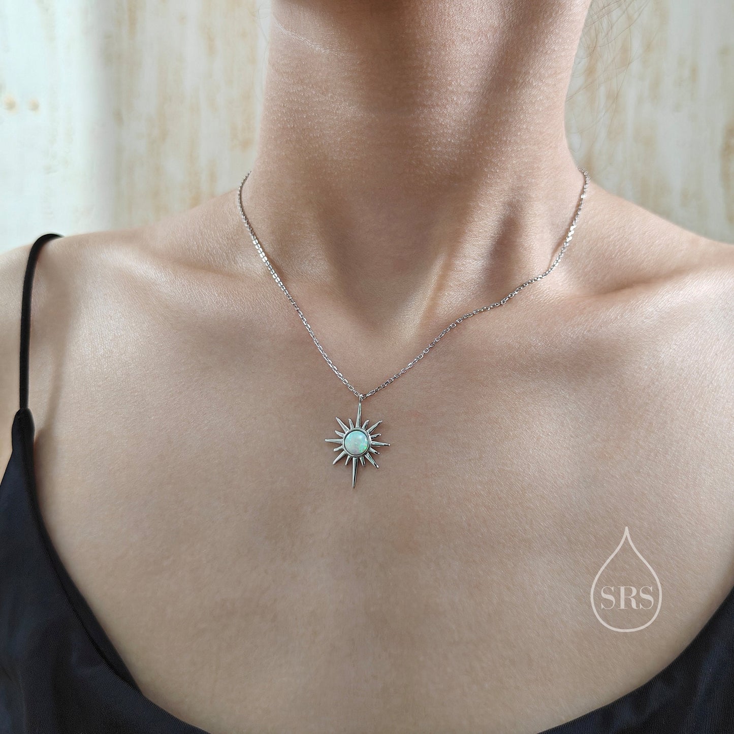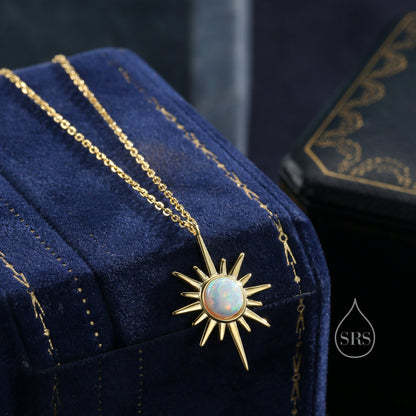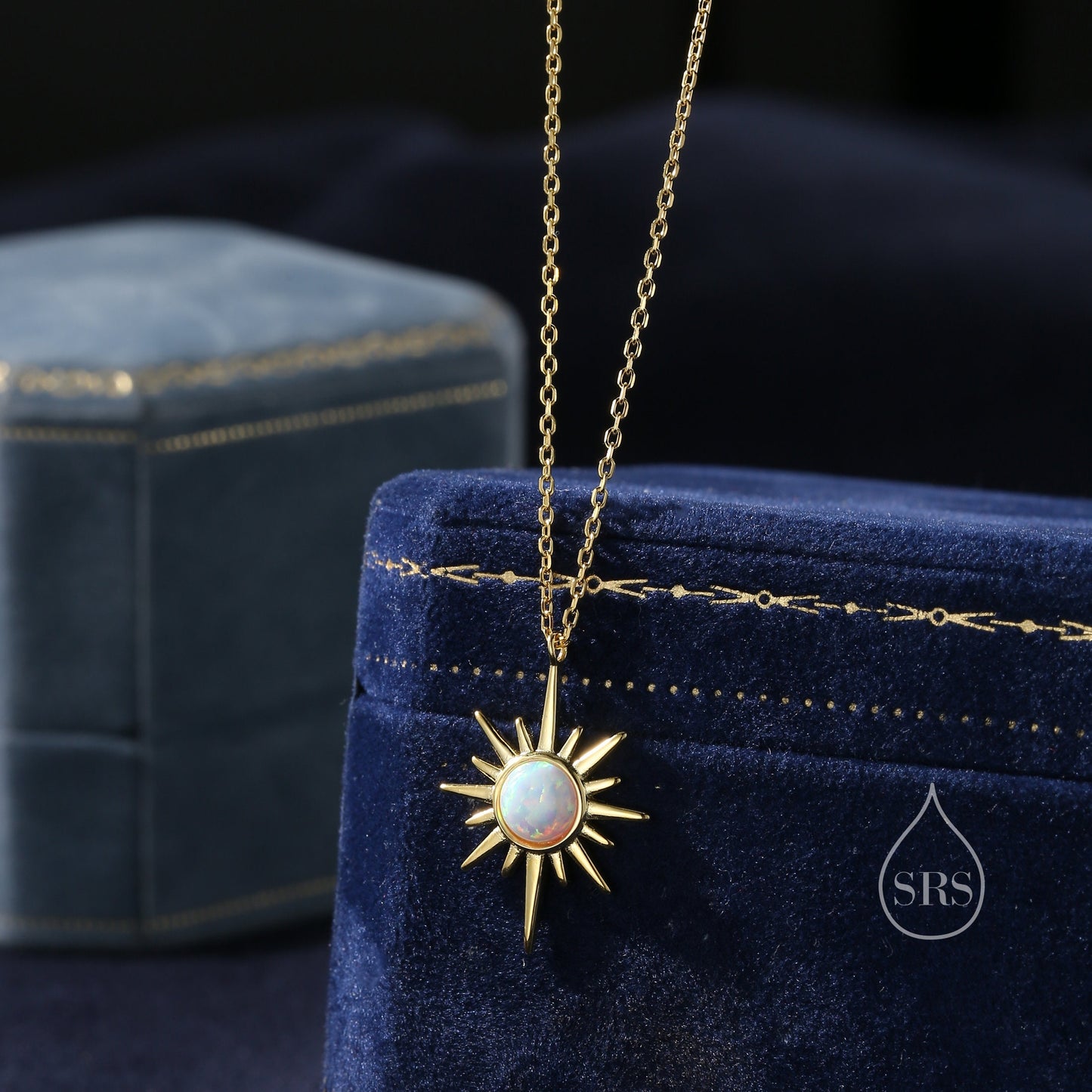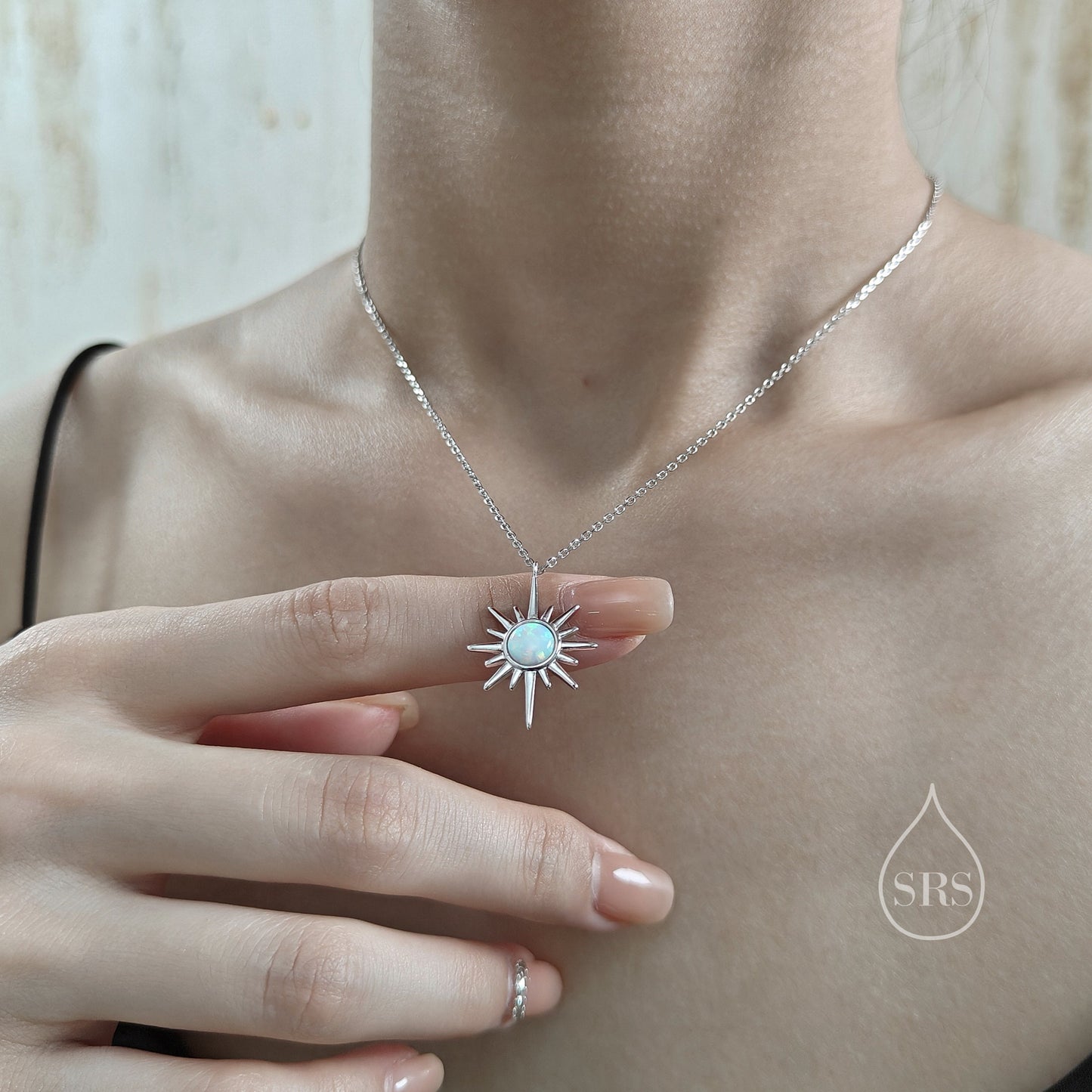 White Opal North Star Pendant Necklace in Sterling Silver, Silver or Gold, Lab Opal Starburst Necklace, Opal Star Necklace, Opal Sunburst