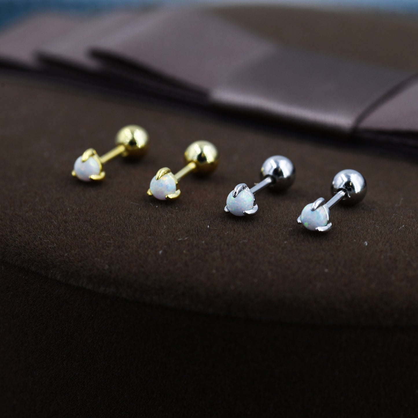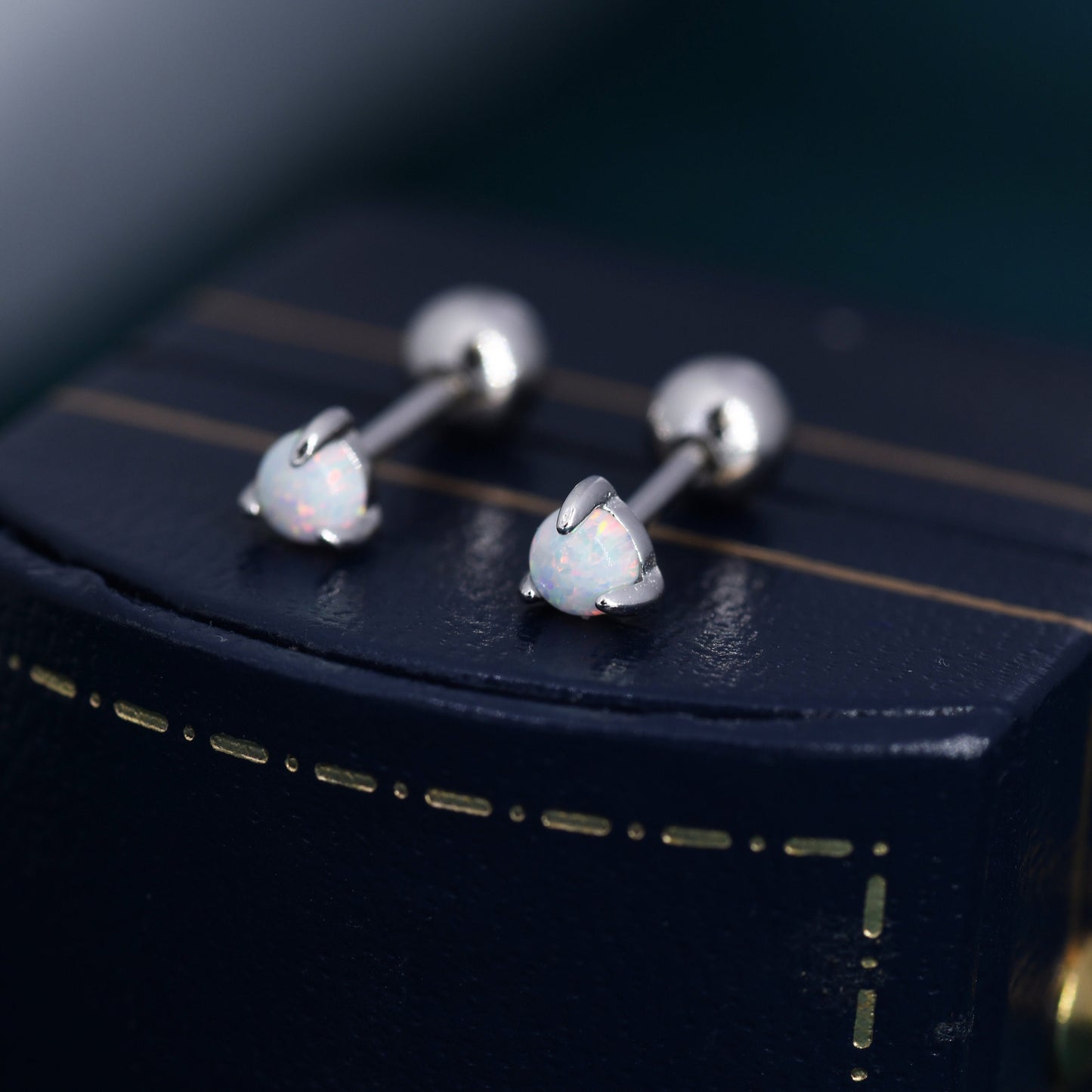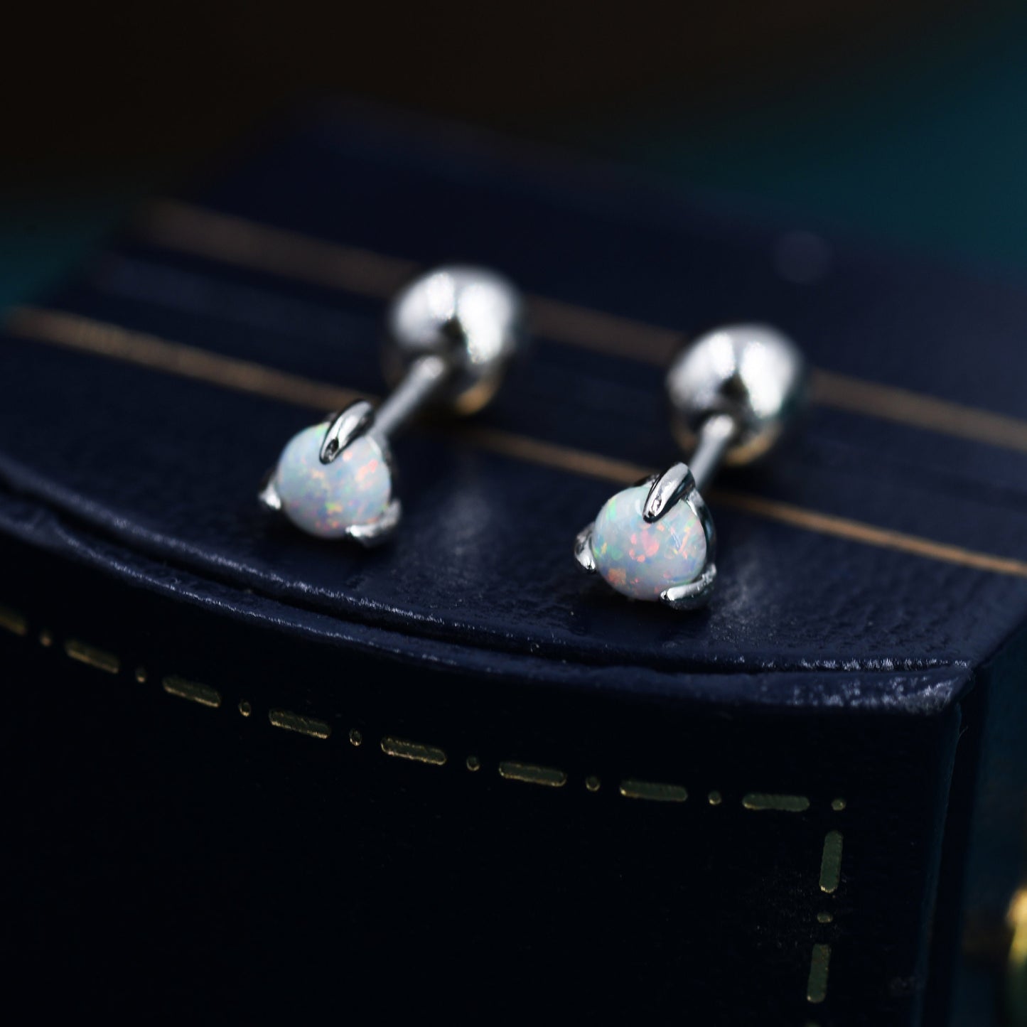 White Opal Screw back Earrings in Sterling Silver, Silver or Gold, Opal Three Prong Earrings, Screwback Earrings, Opal Barbell Earrings