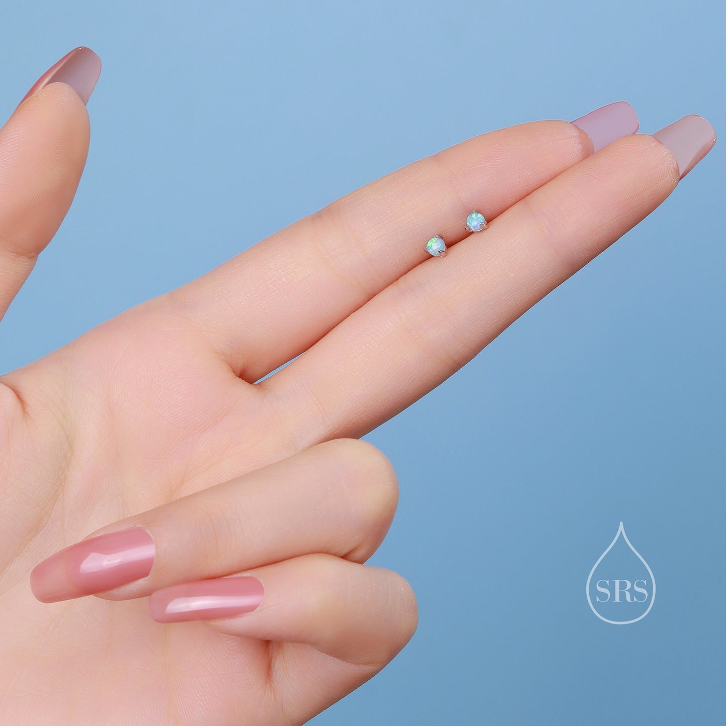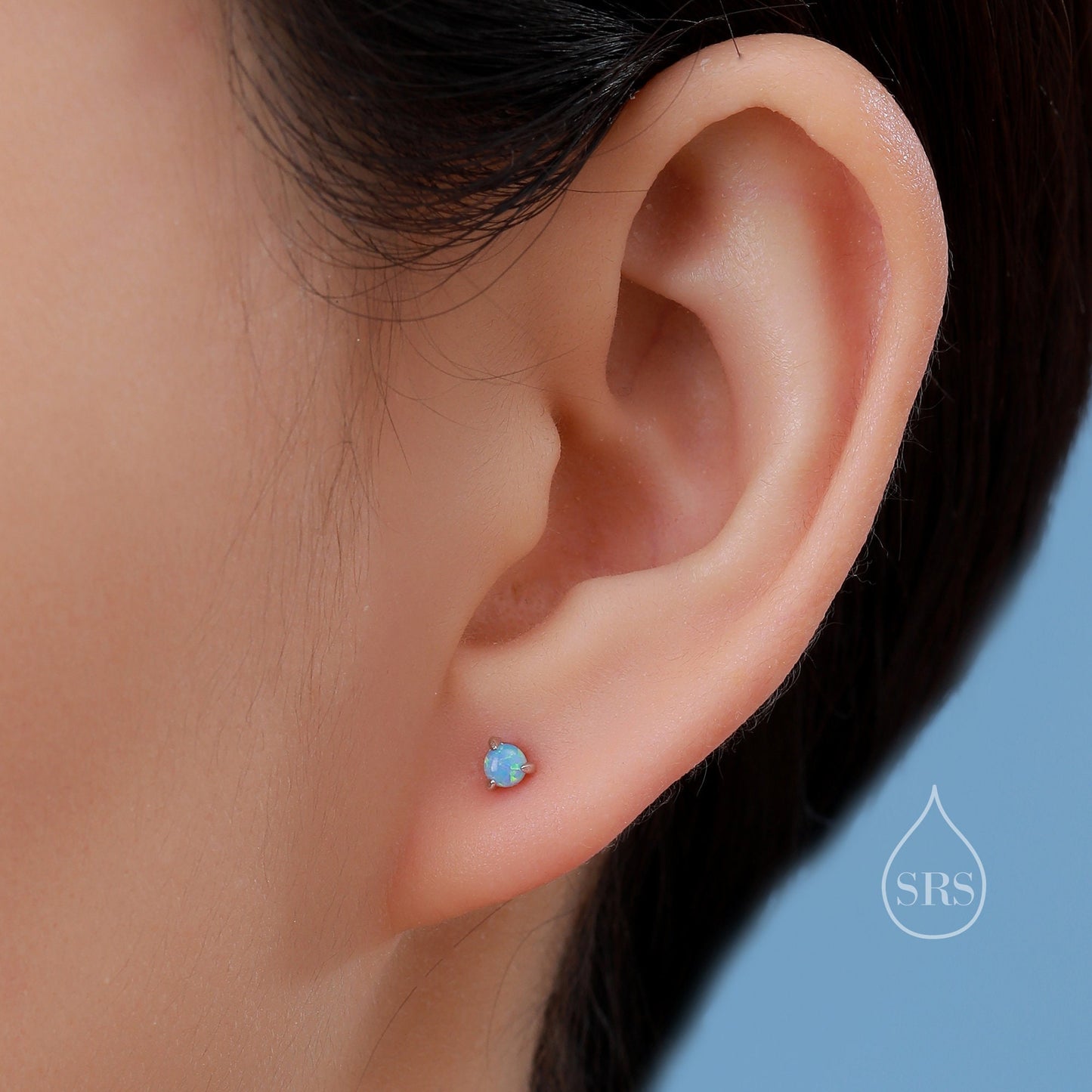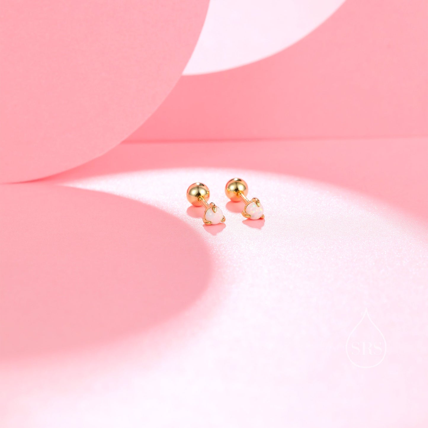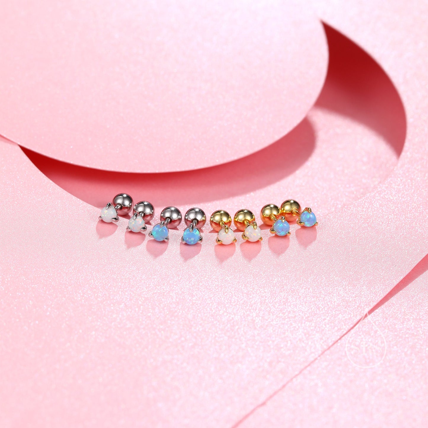 White Opal Screw back Earrings in Sterling Silver, Silver or Gold, Opal Three Prong Earrings, Screwback Earrings, Opal Barbell Earrings